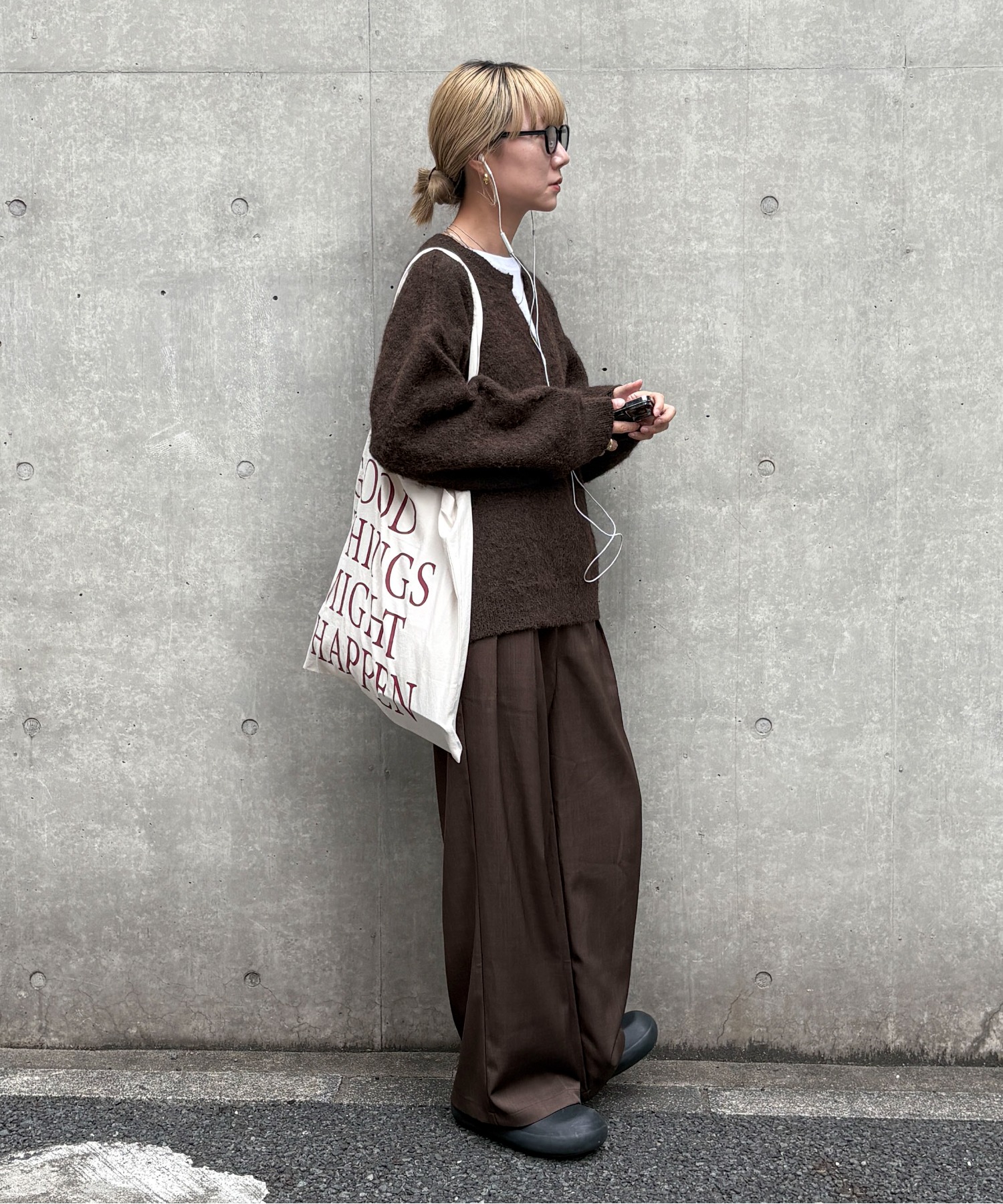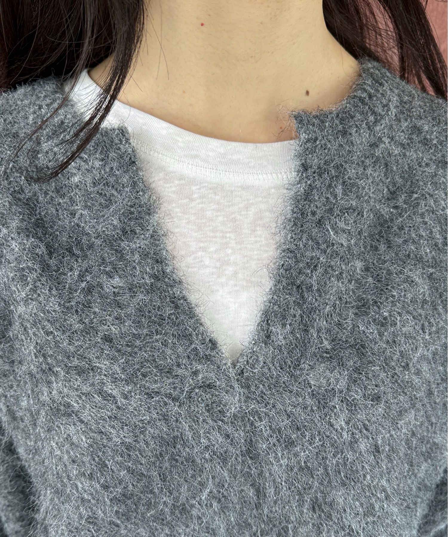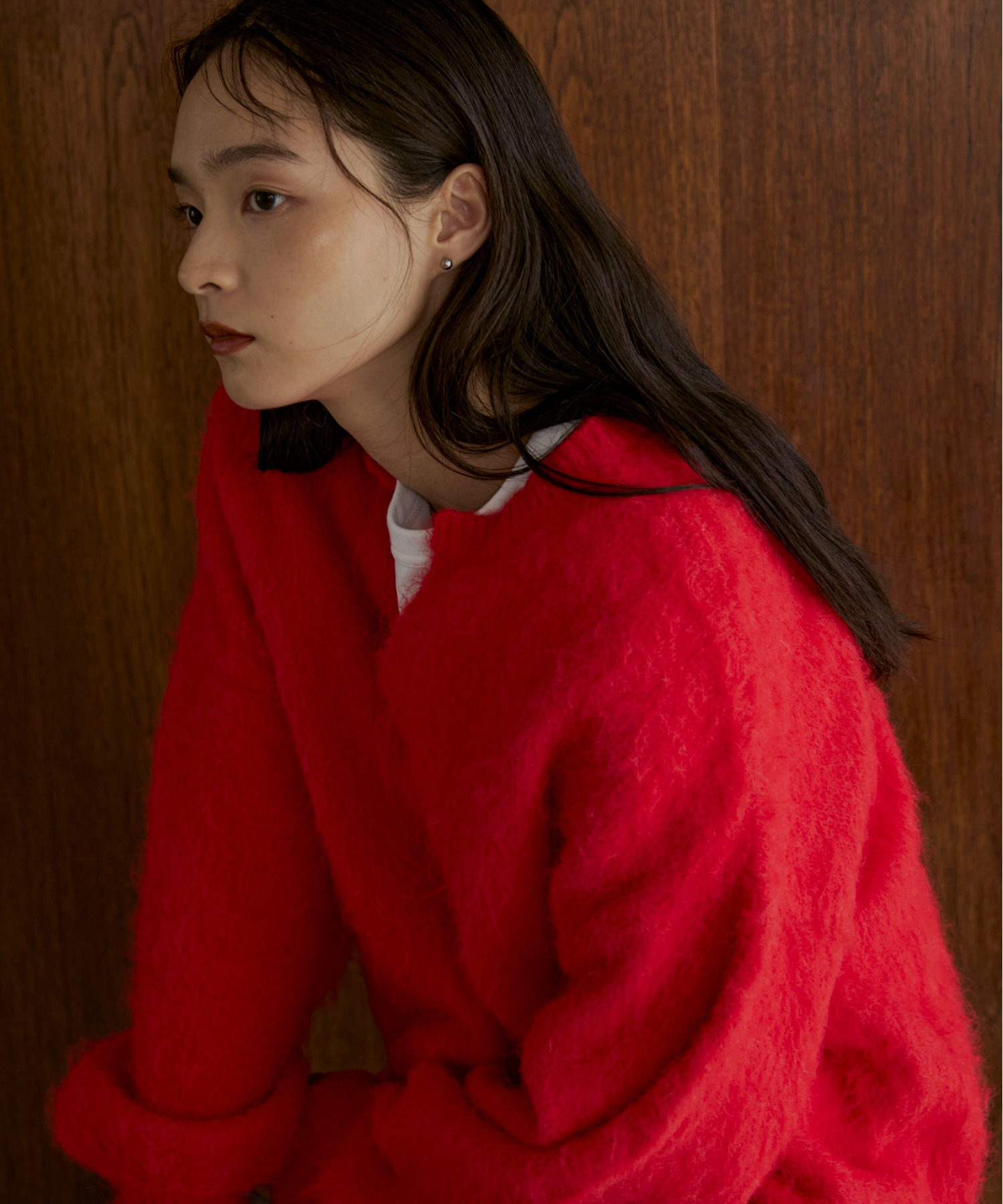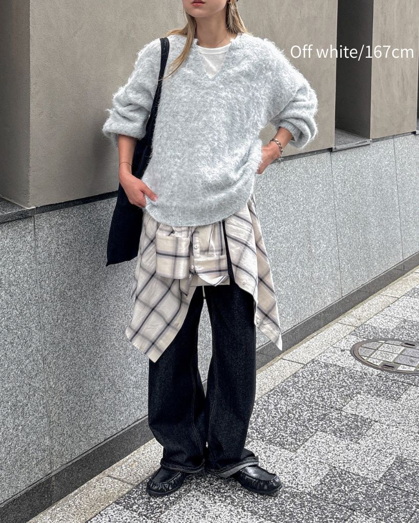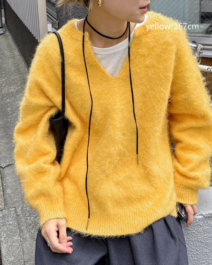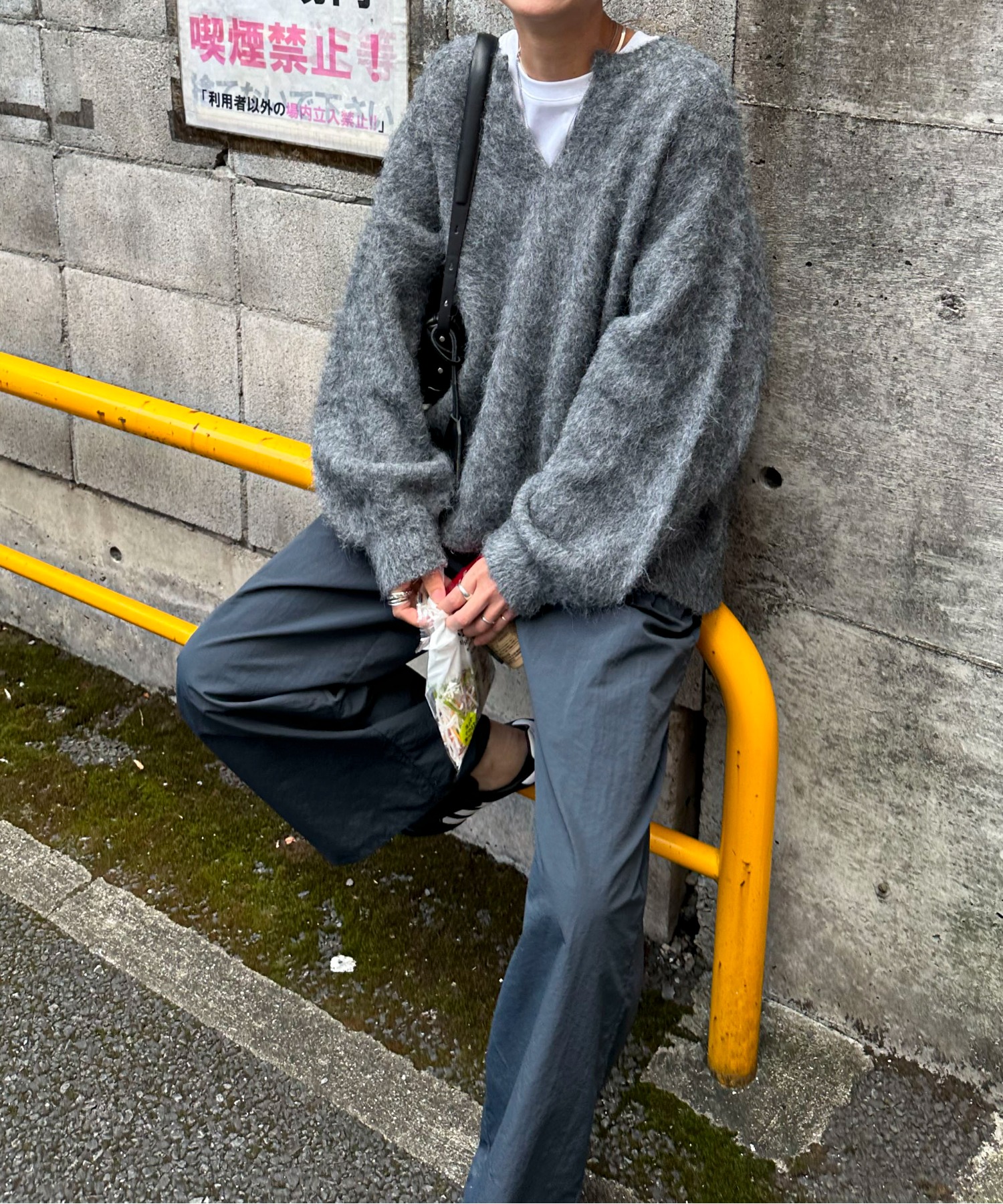 表面の起毛感が魅力の着回しやすいシンプルニット。