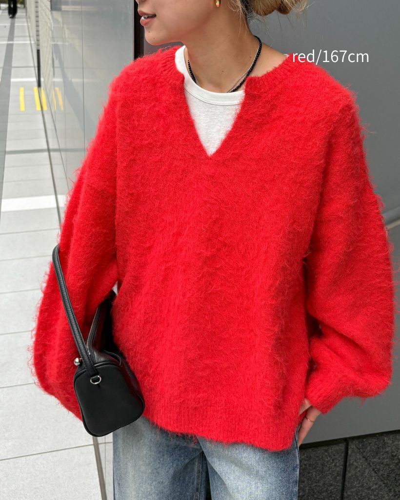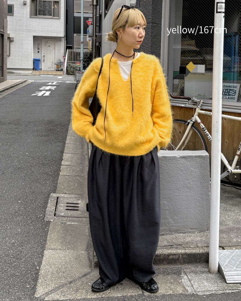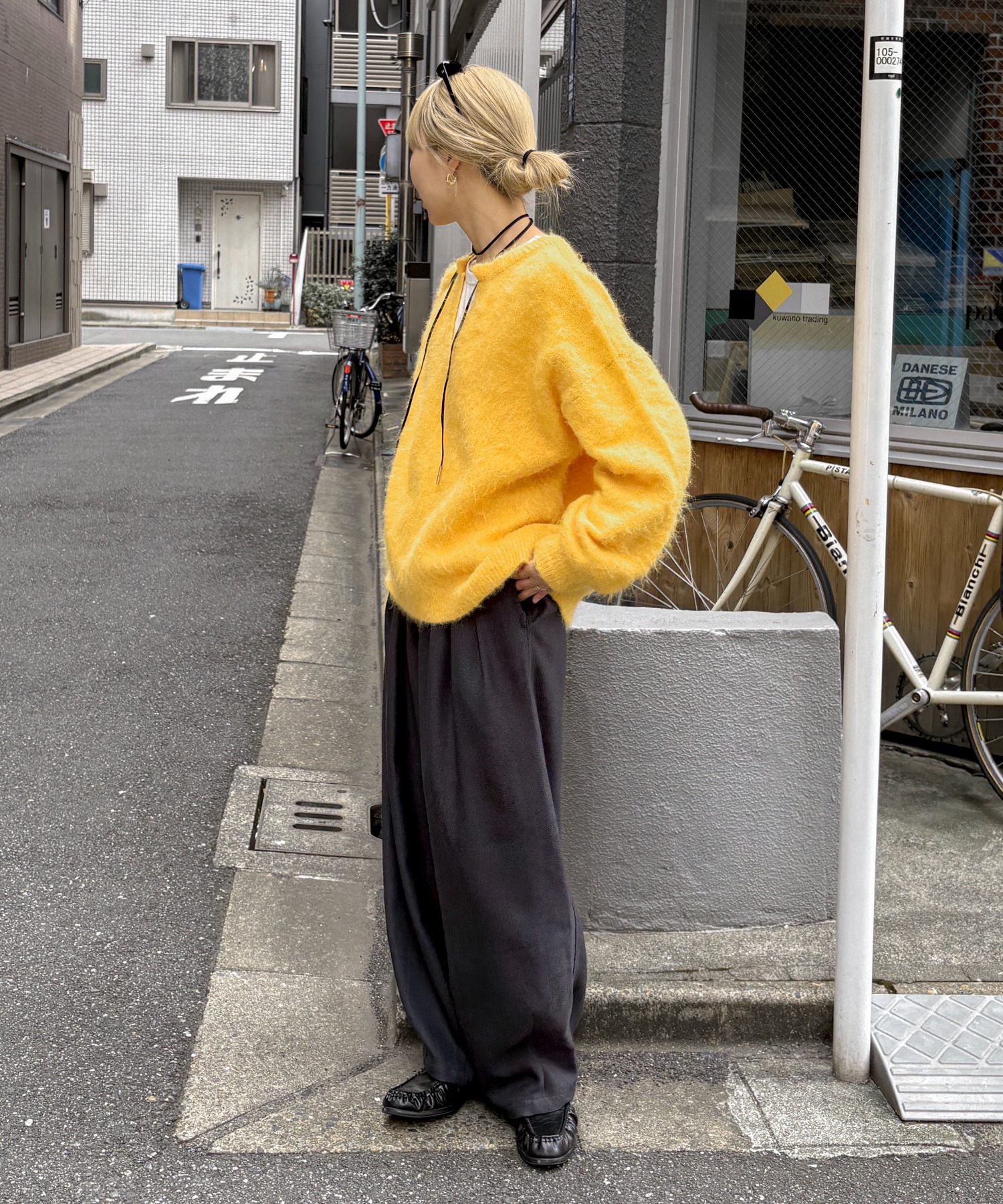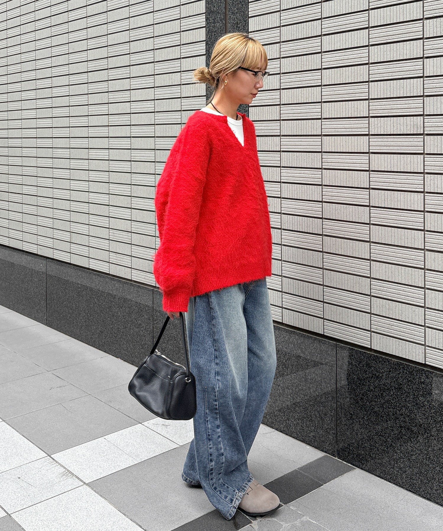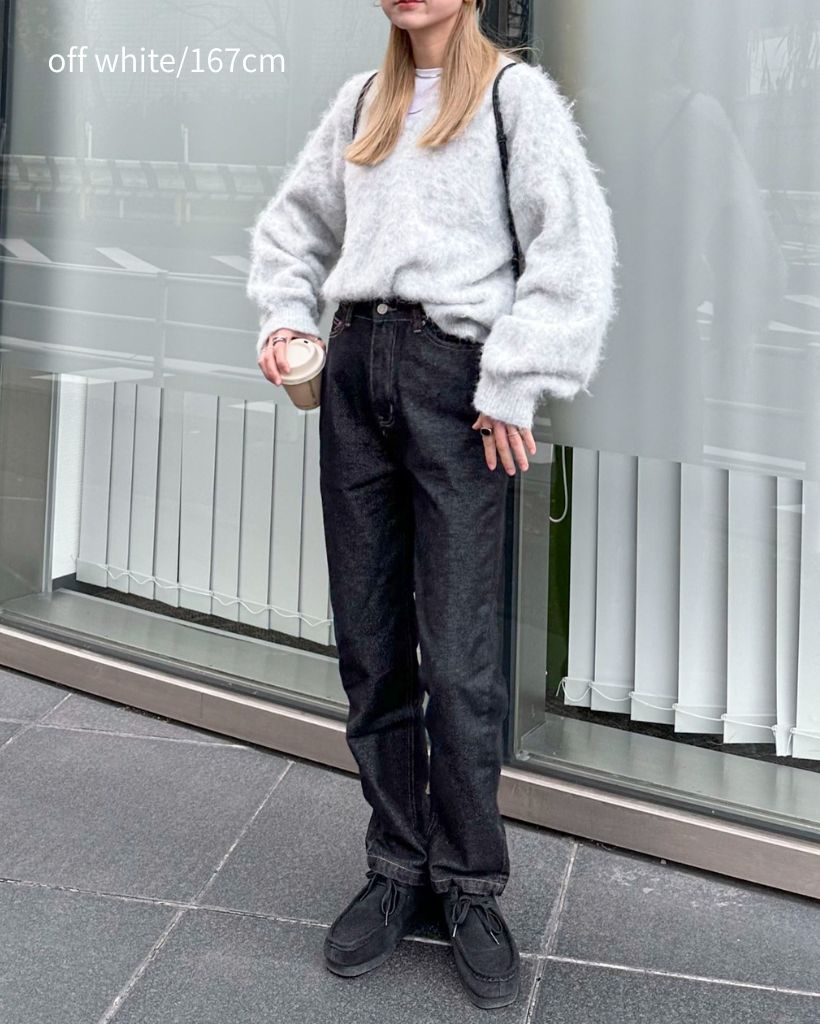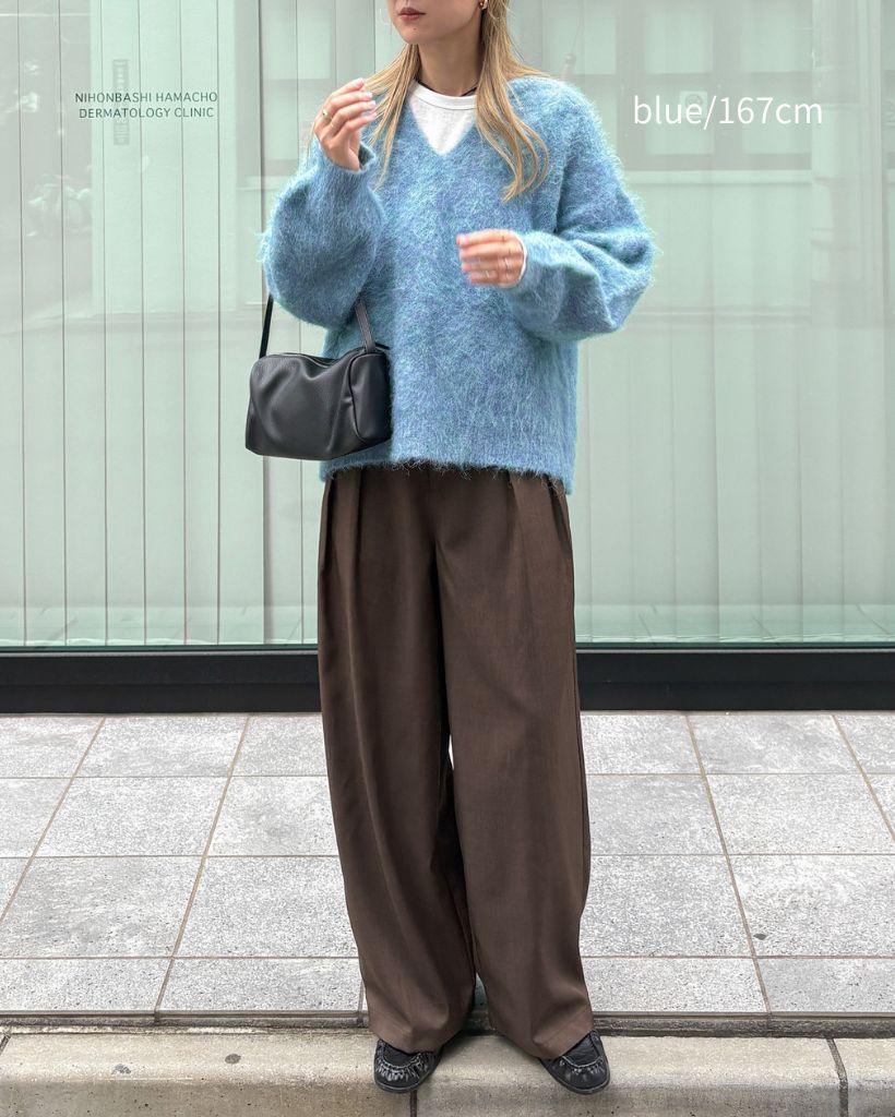 表面の起毛感が魅力の着回しやすいシンプルニット。