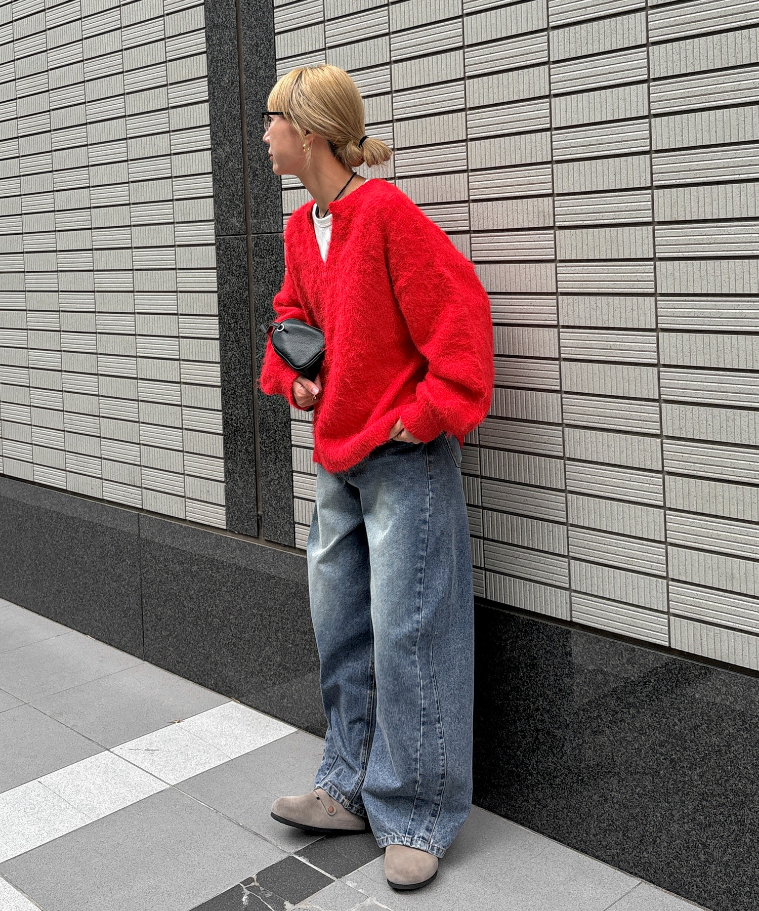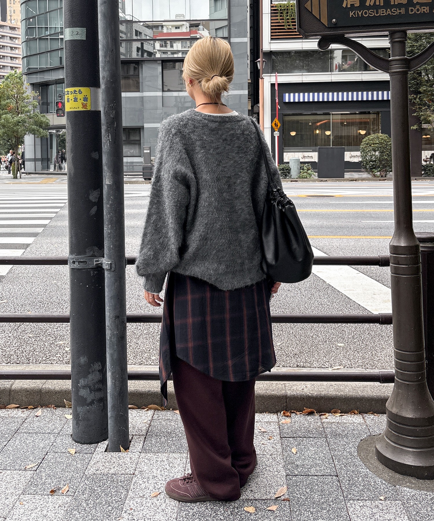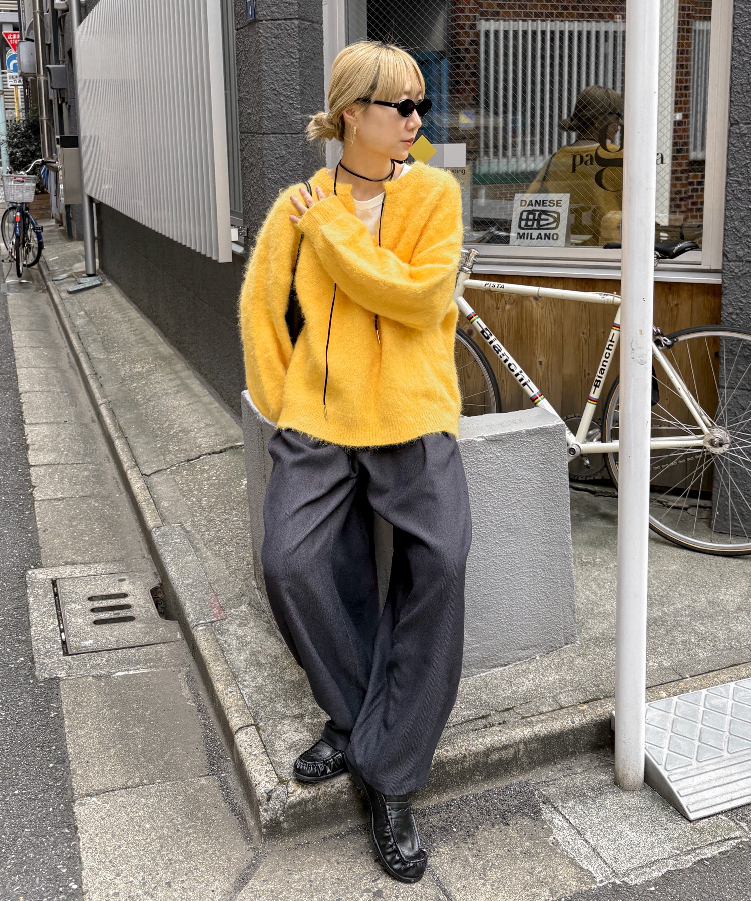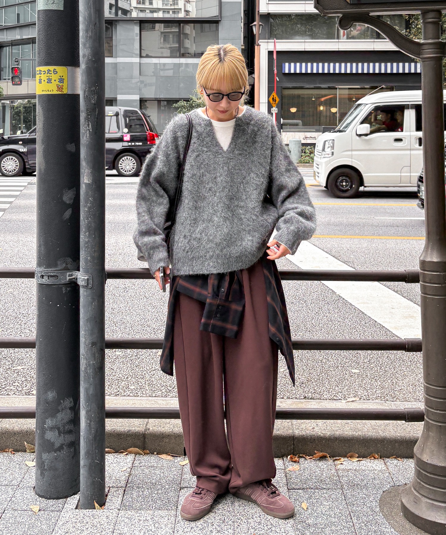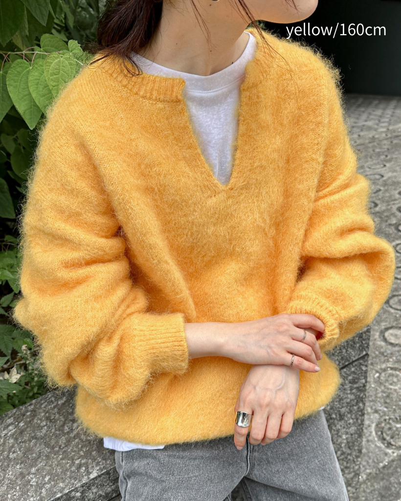 表面の起毛感が魅力の着回しやすいシンプルニット。