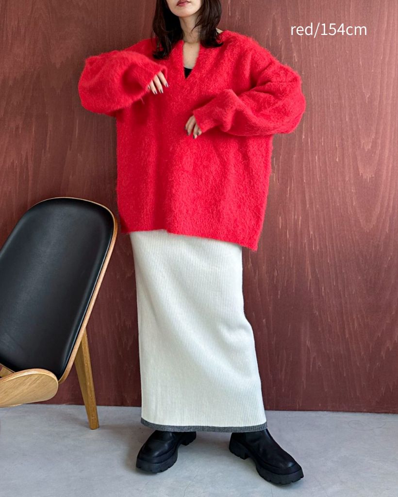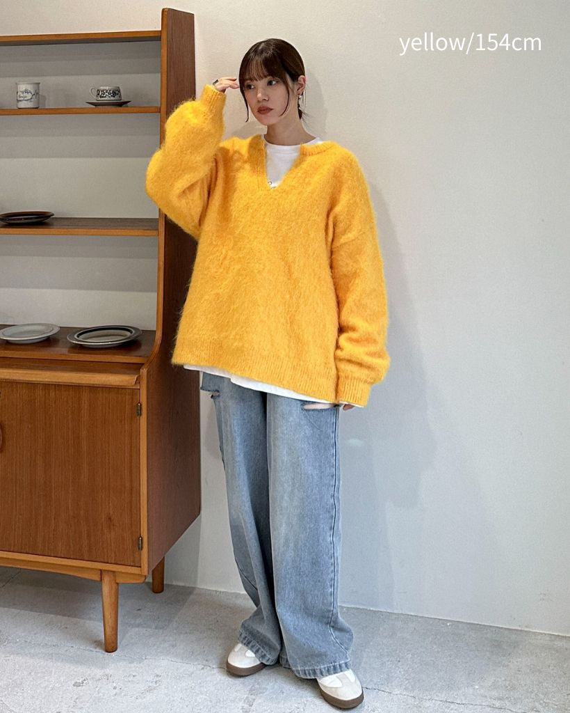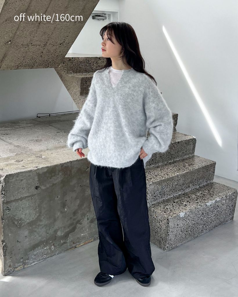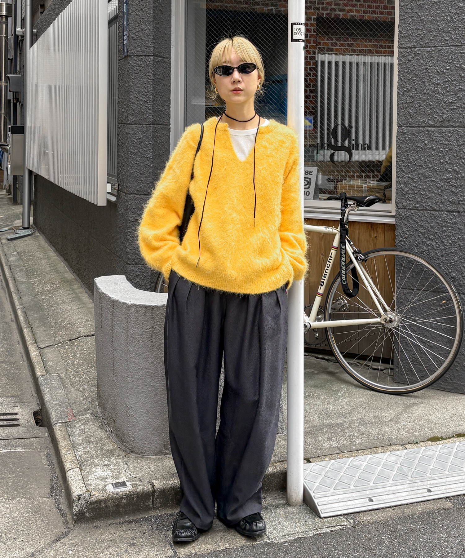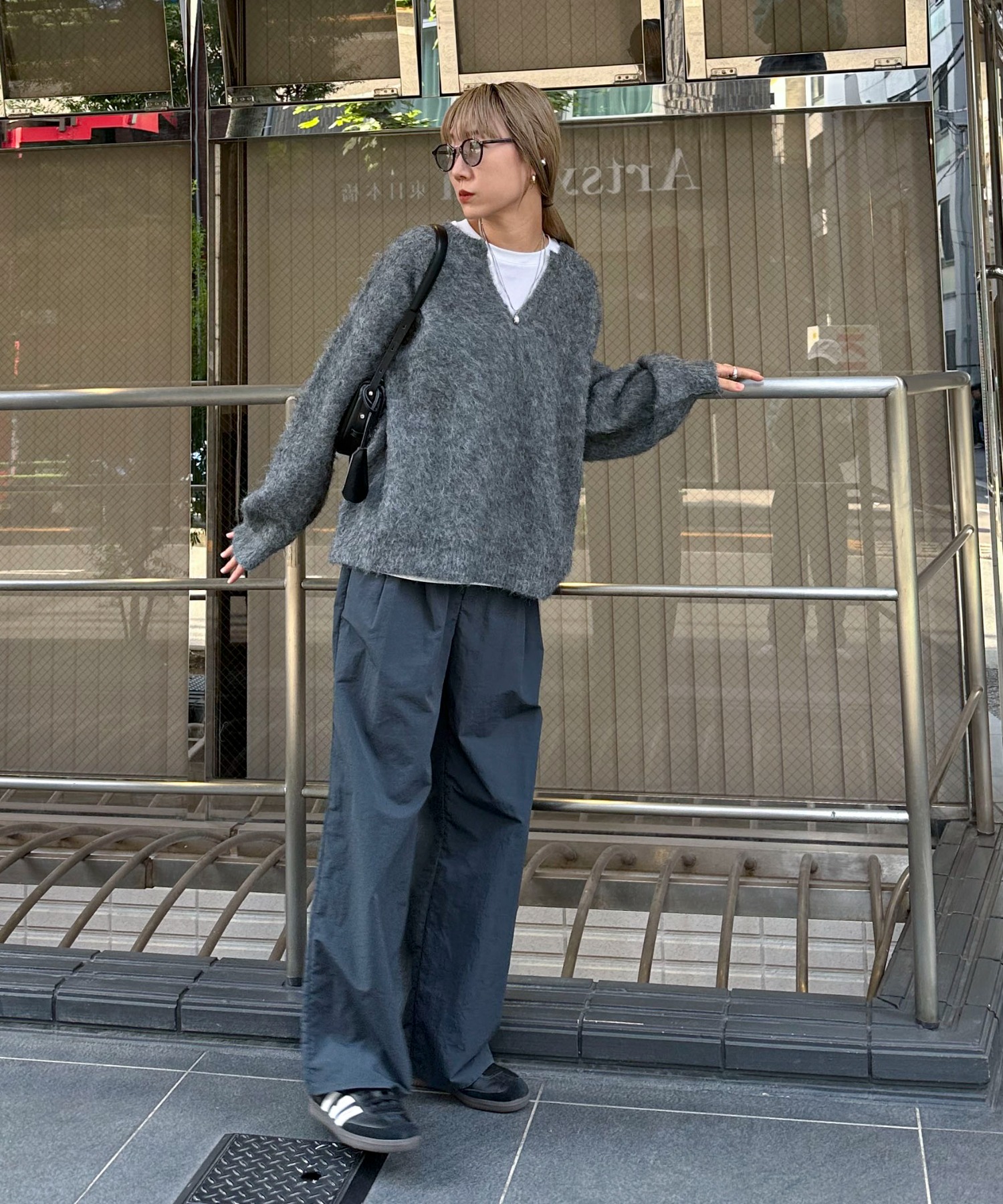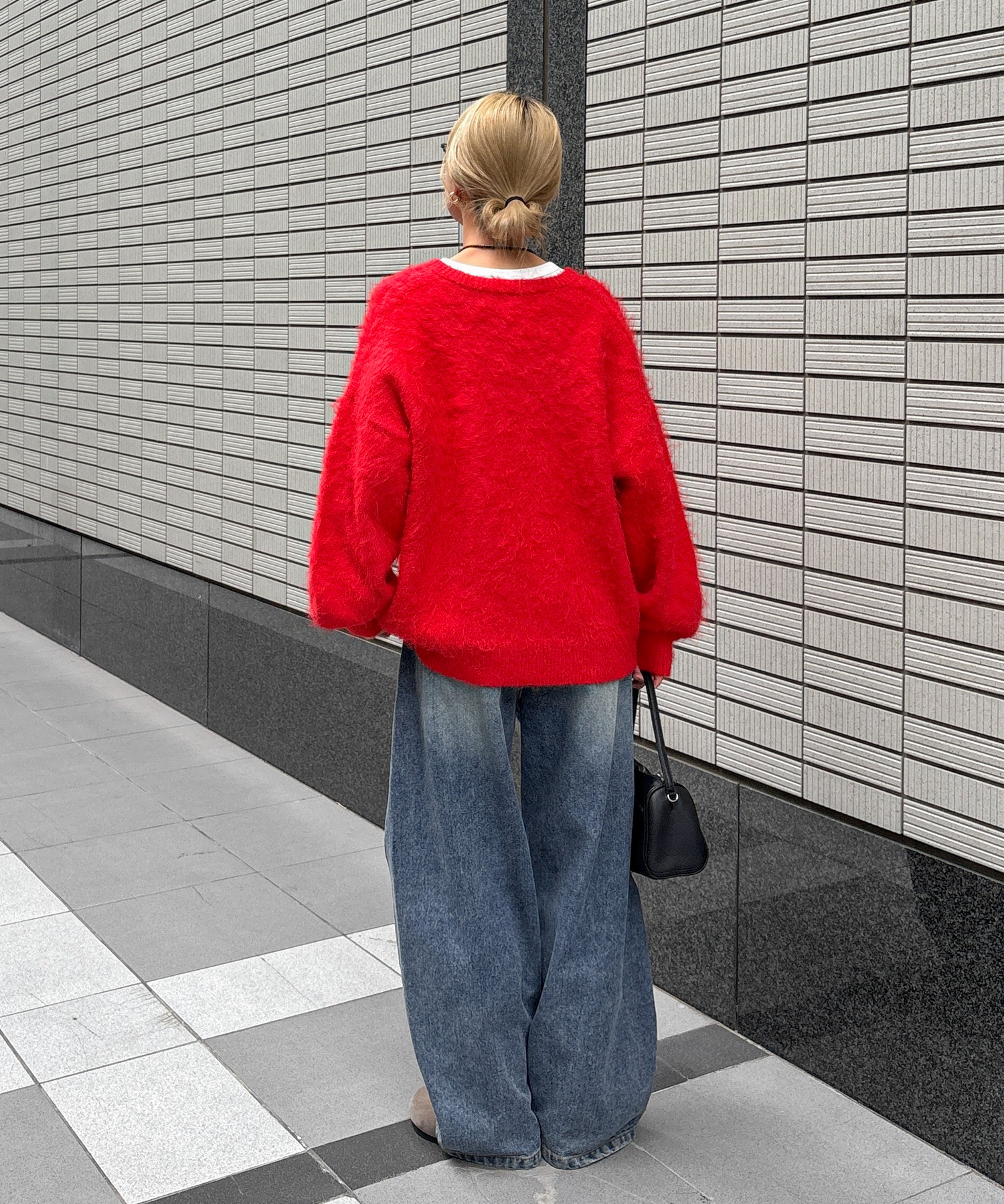 表面の起毛感が魅力の着回しやすいシンプルニット。