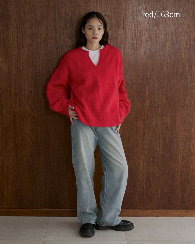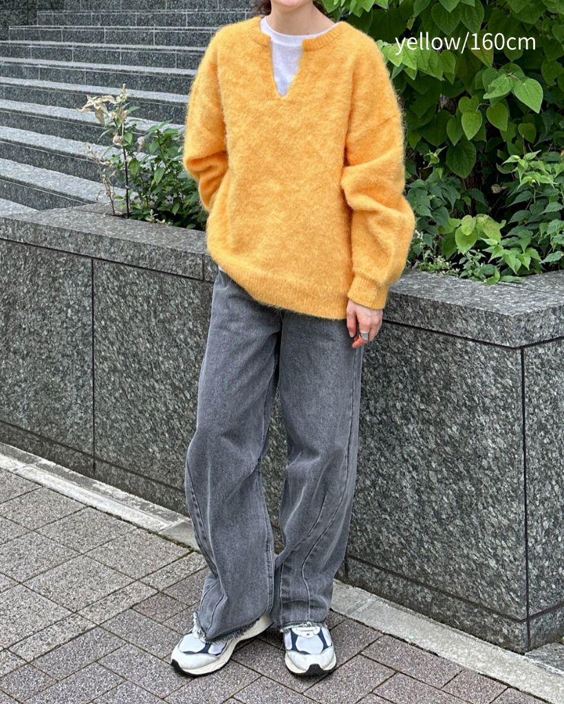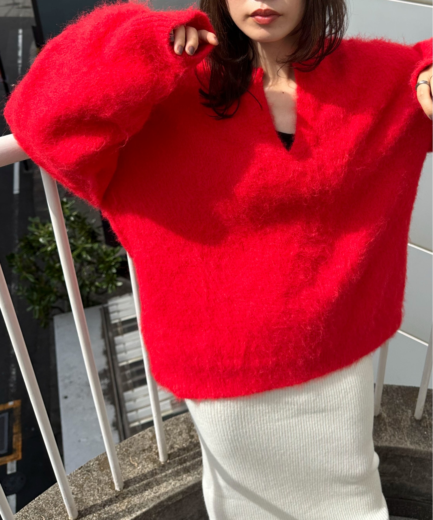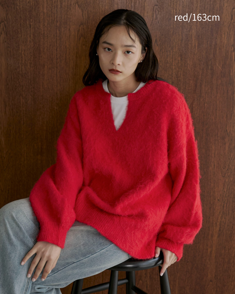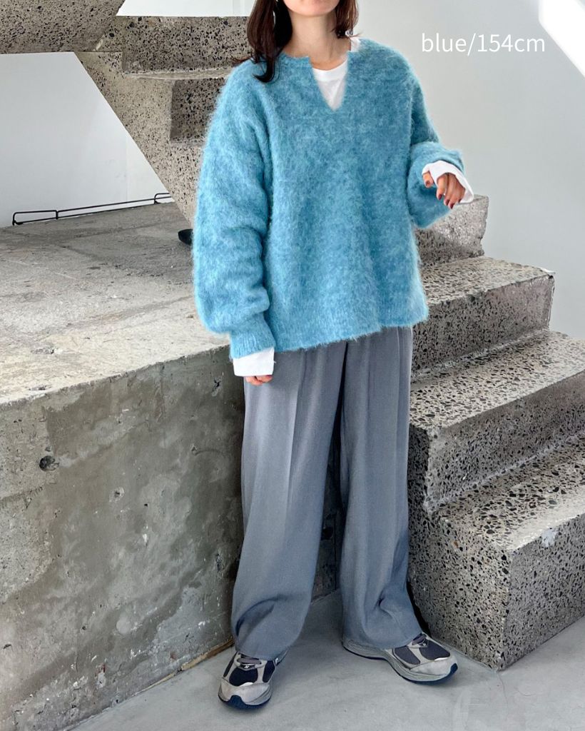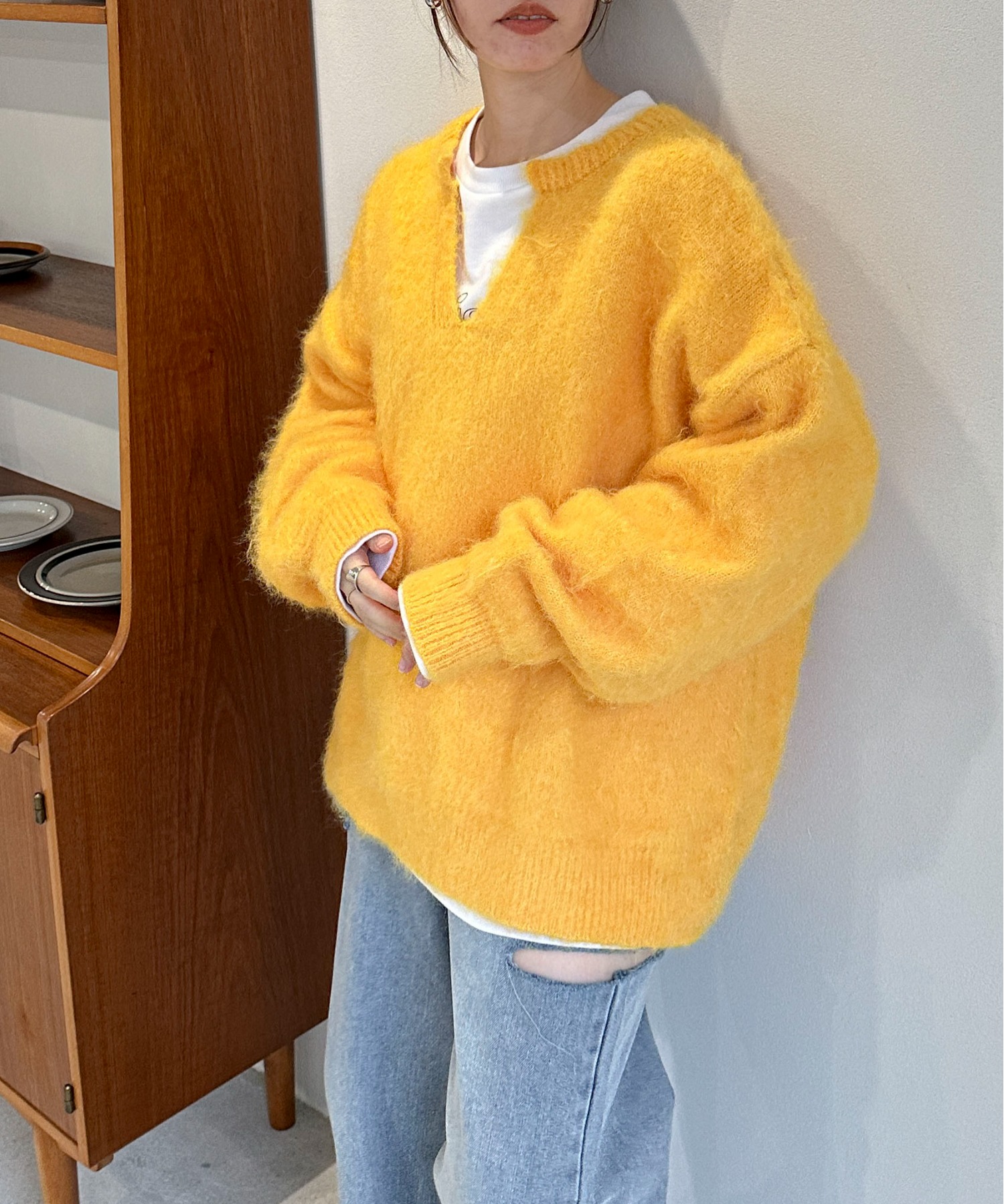 【ハンドウォッシャブル】ウール混起毛キーネックニット