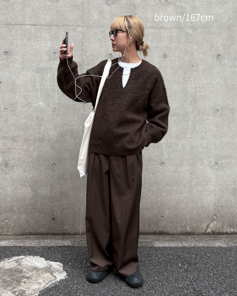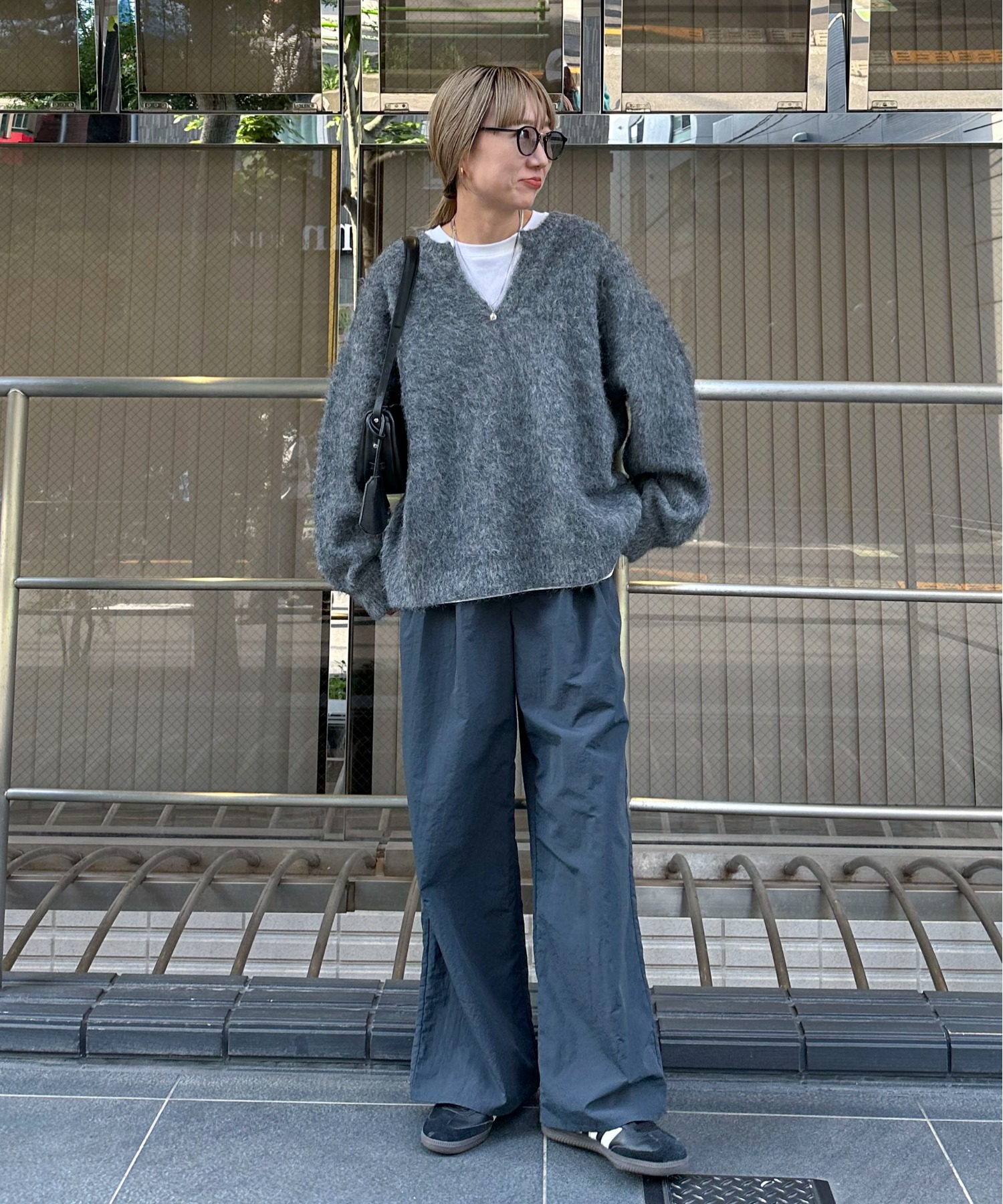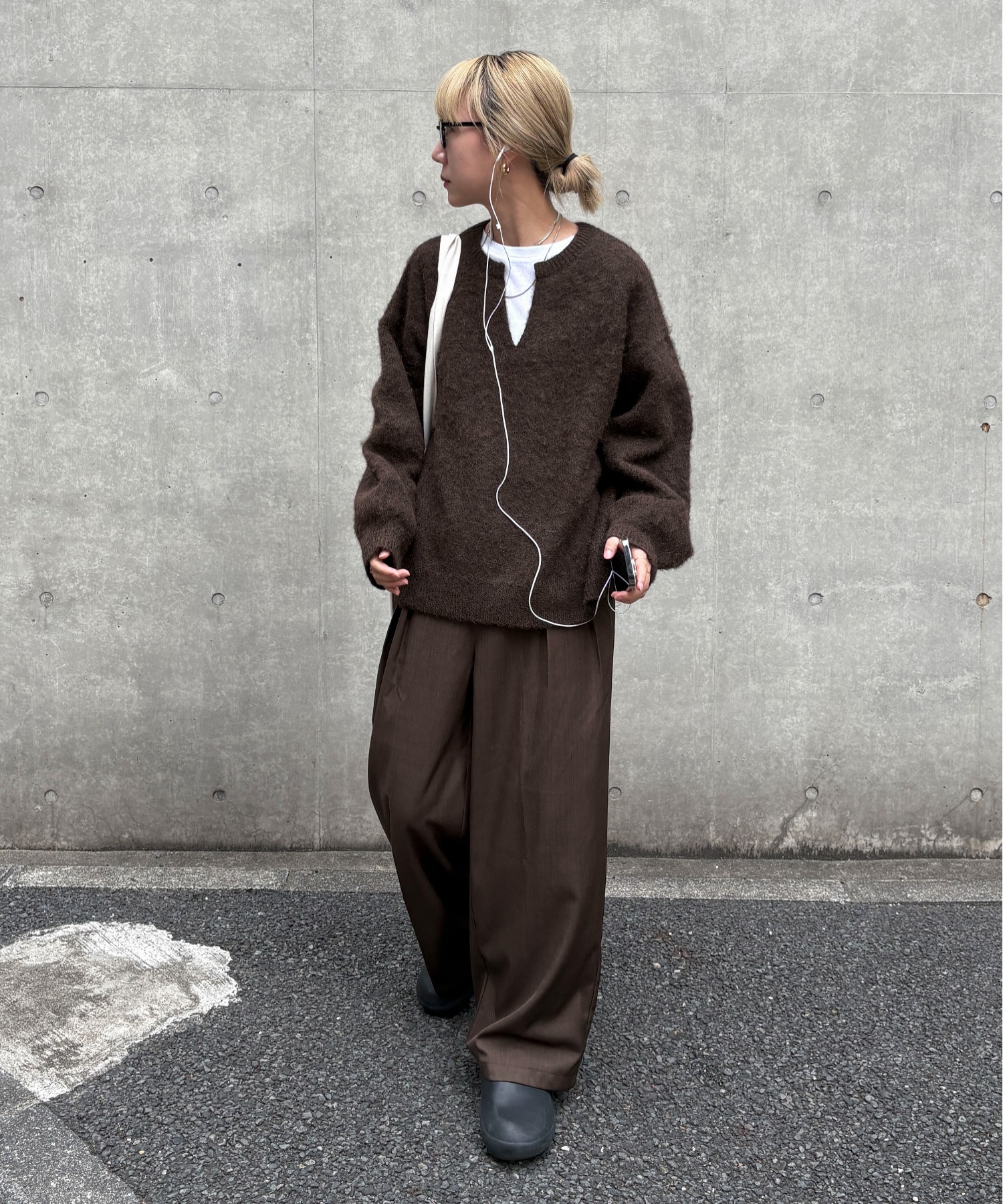 キーネックのデザインなので程よく抜け感が出てこなれ感のあるお洒落な印象に◎