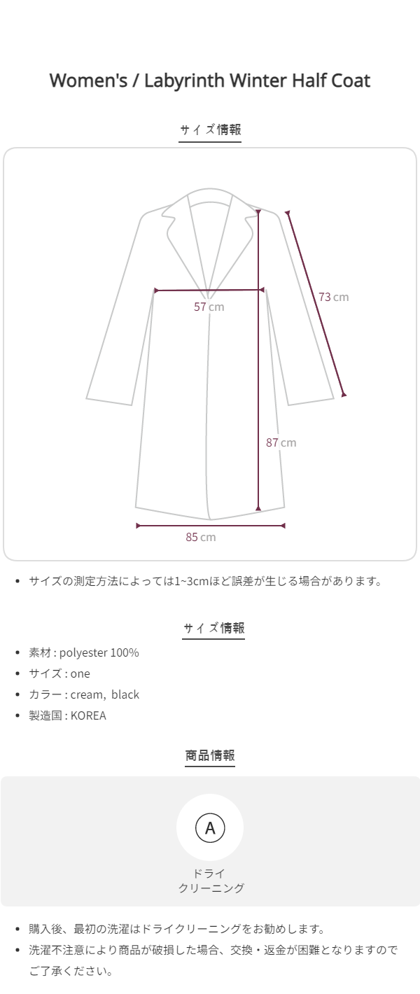 Labyrinth Winter Half Coat (Cream)