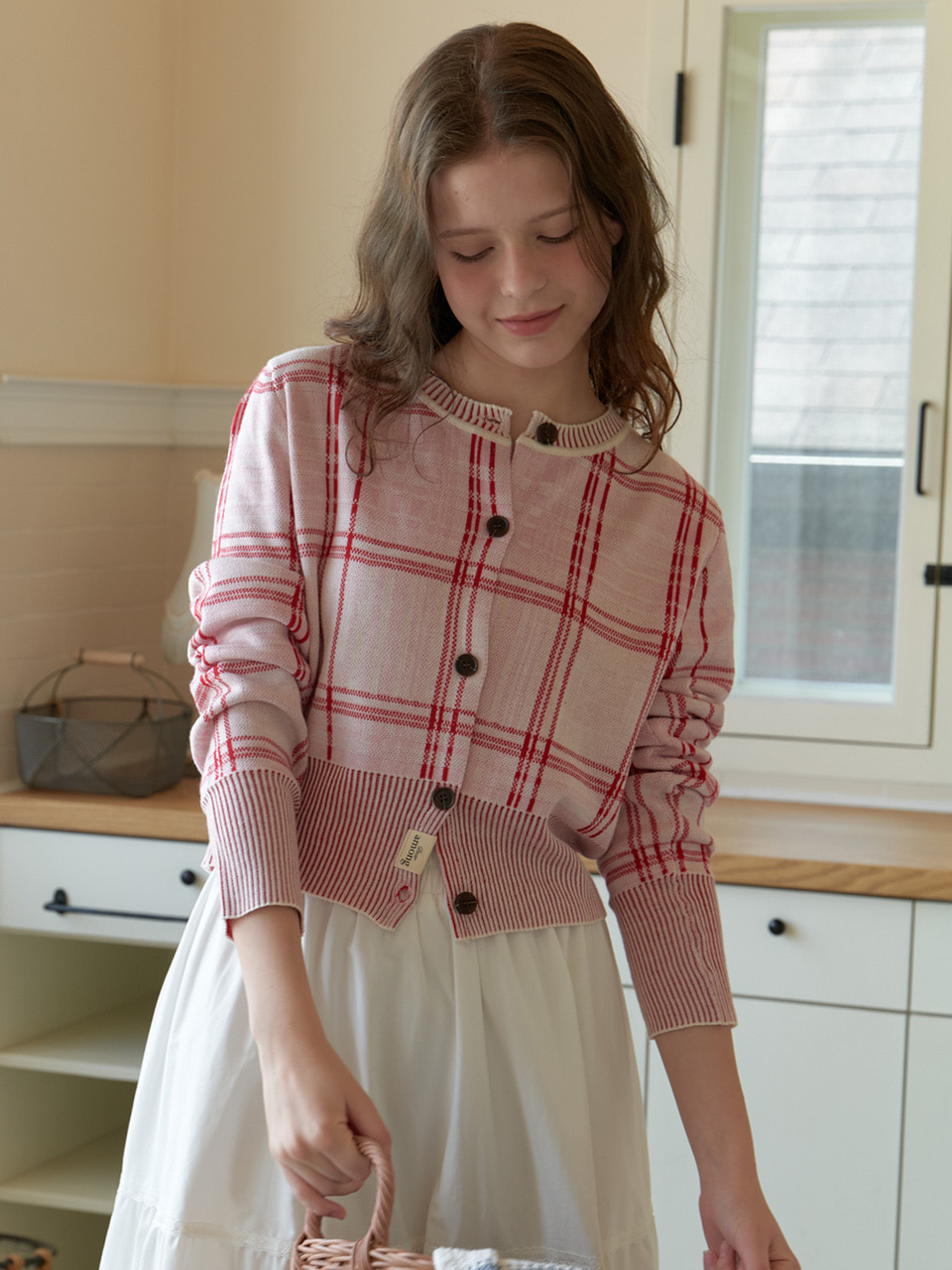 A MIXED COLOR CHECK CARDIGAN_PINK