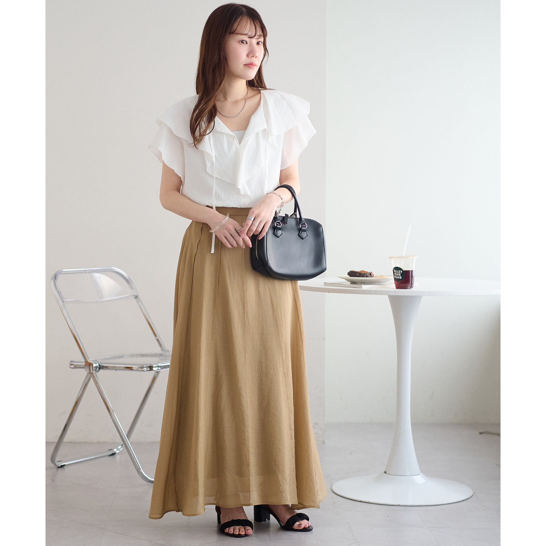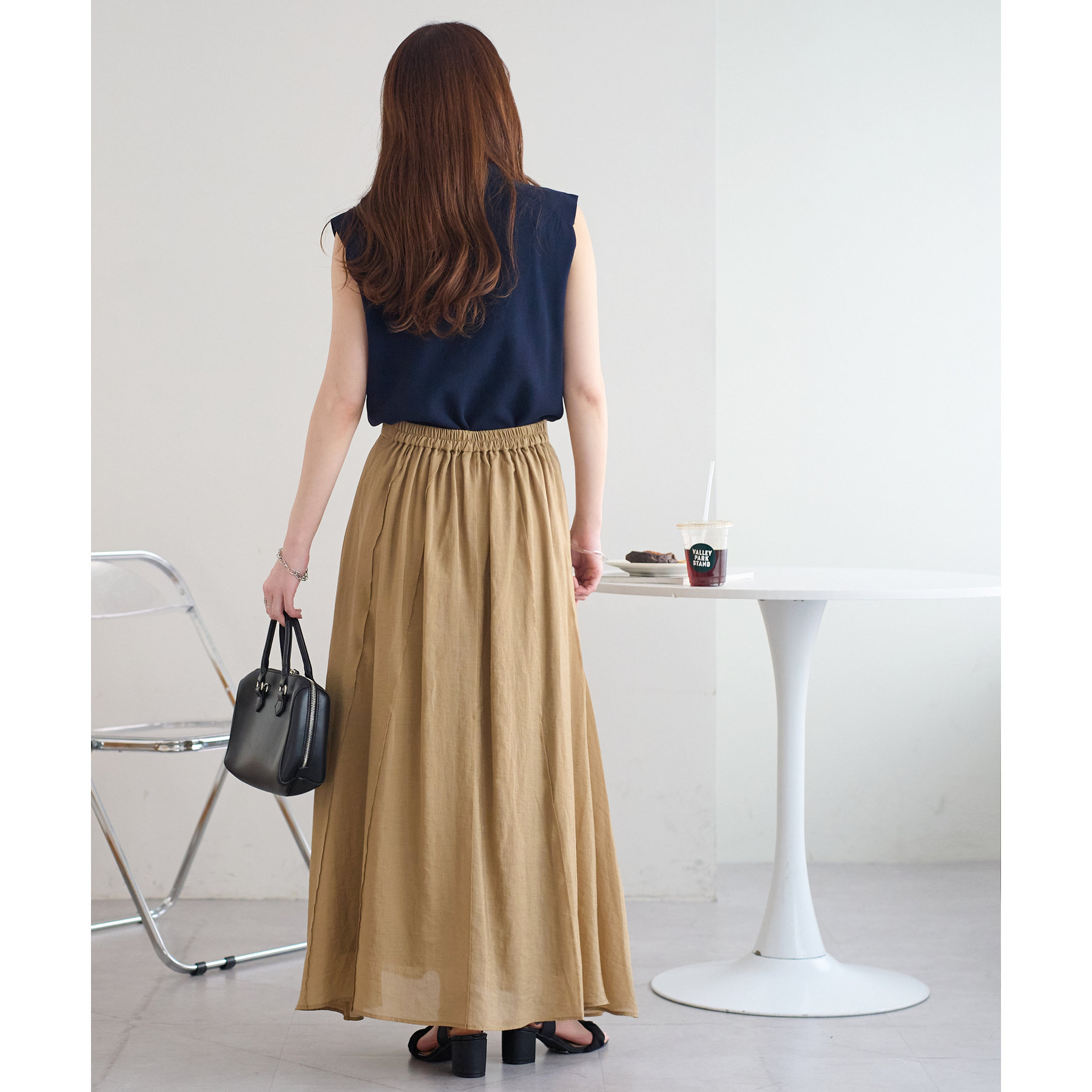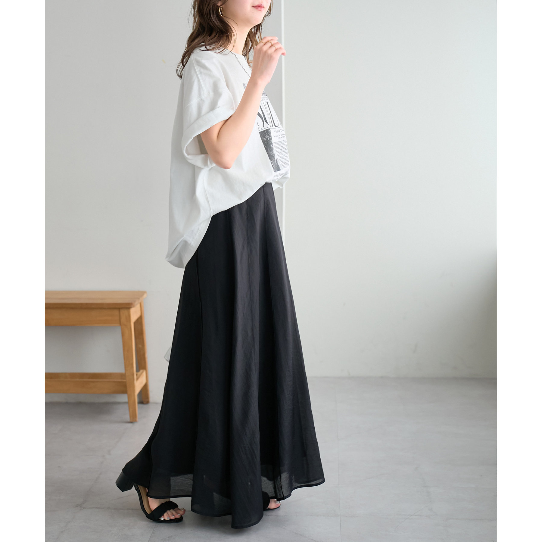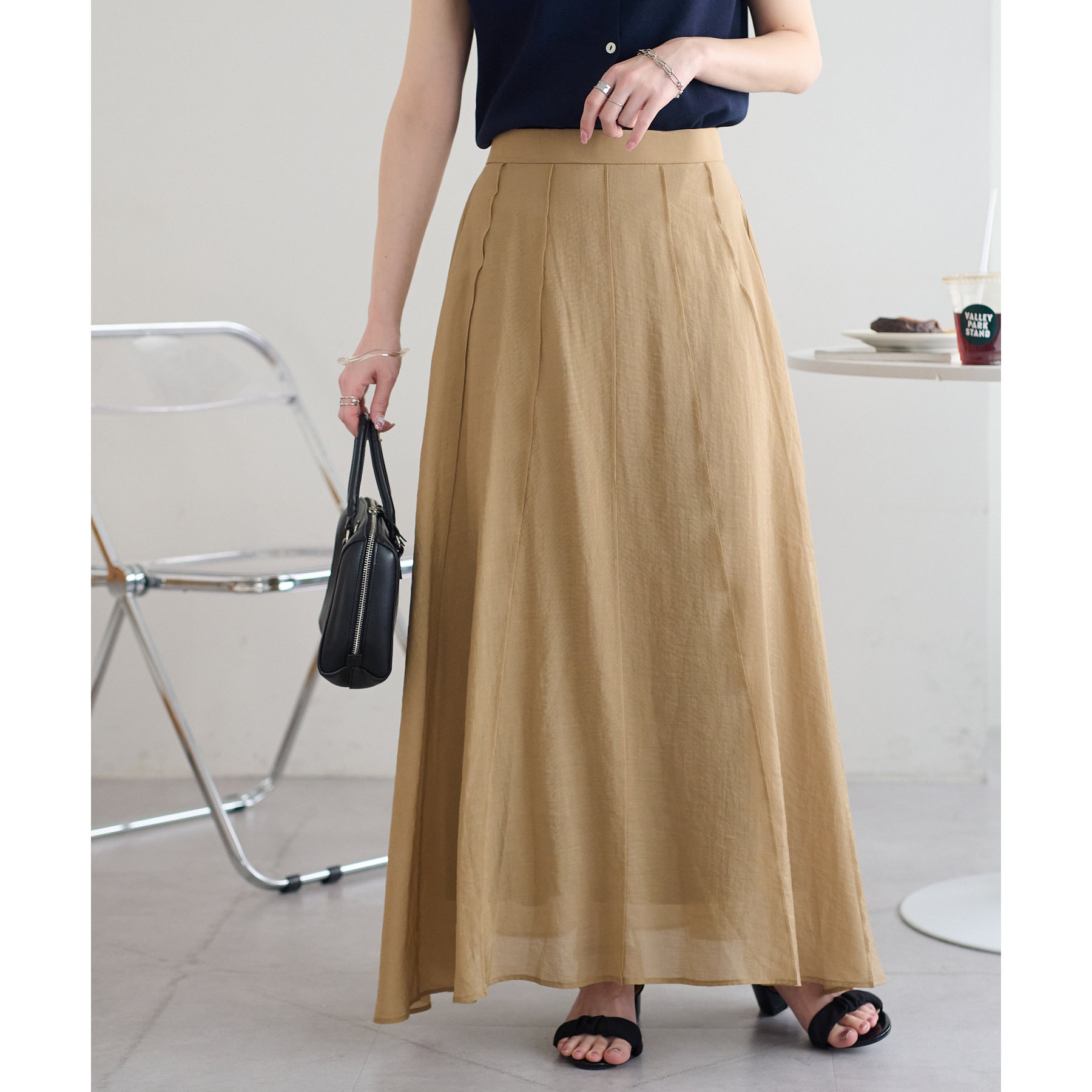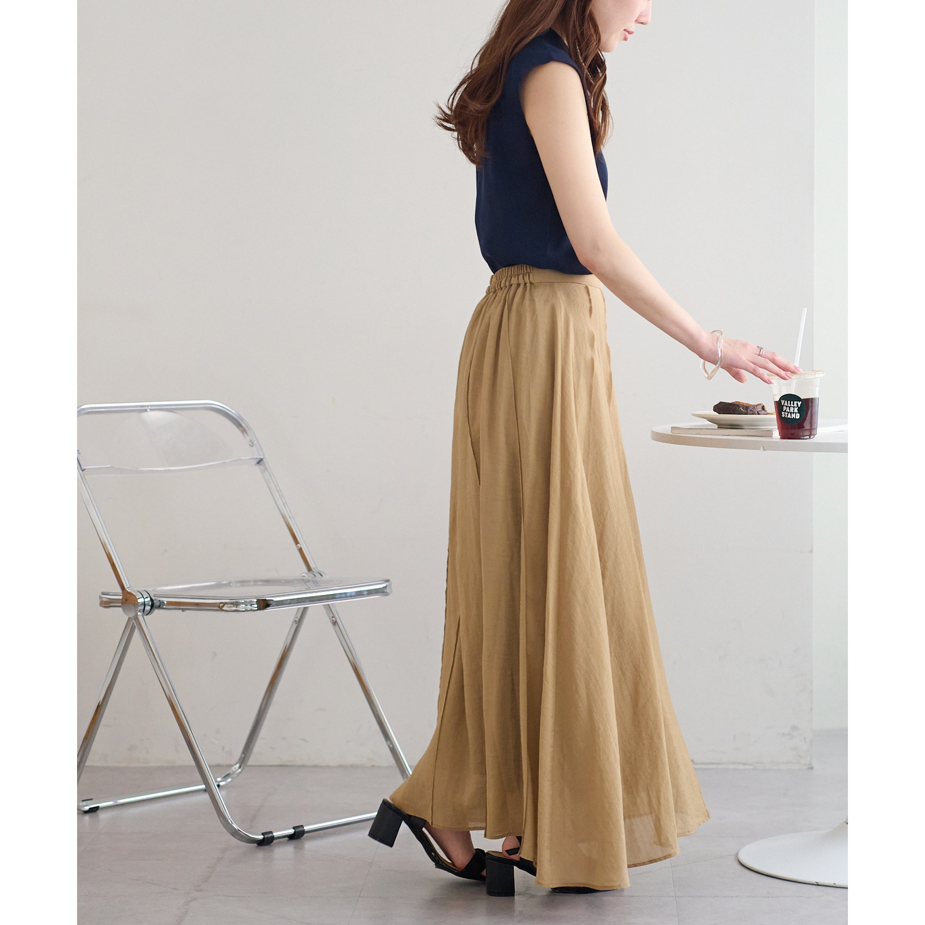 ややボリュームのあるふんわりとしたシルエットが女性らしさを演出。腰回りの広がりを抑えたフレアスカートはAラインが綺麗に見え、美シルエットを作り上げてくれます!また、縦スリットがスタイルをより良く見せてくれます。