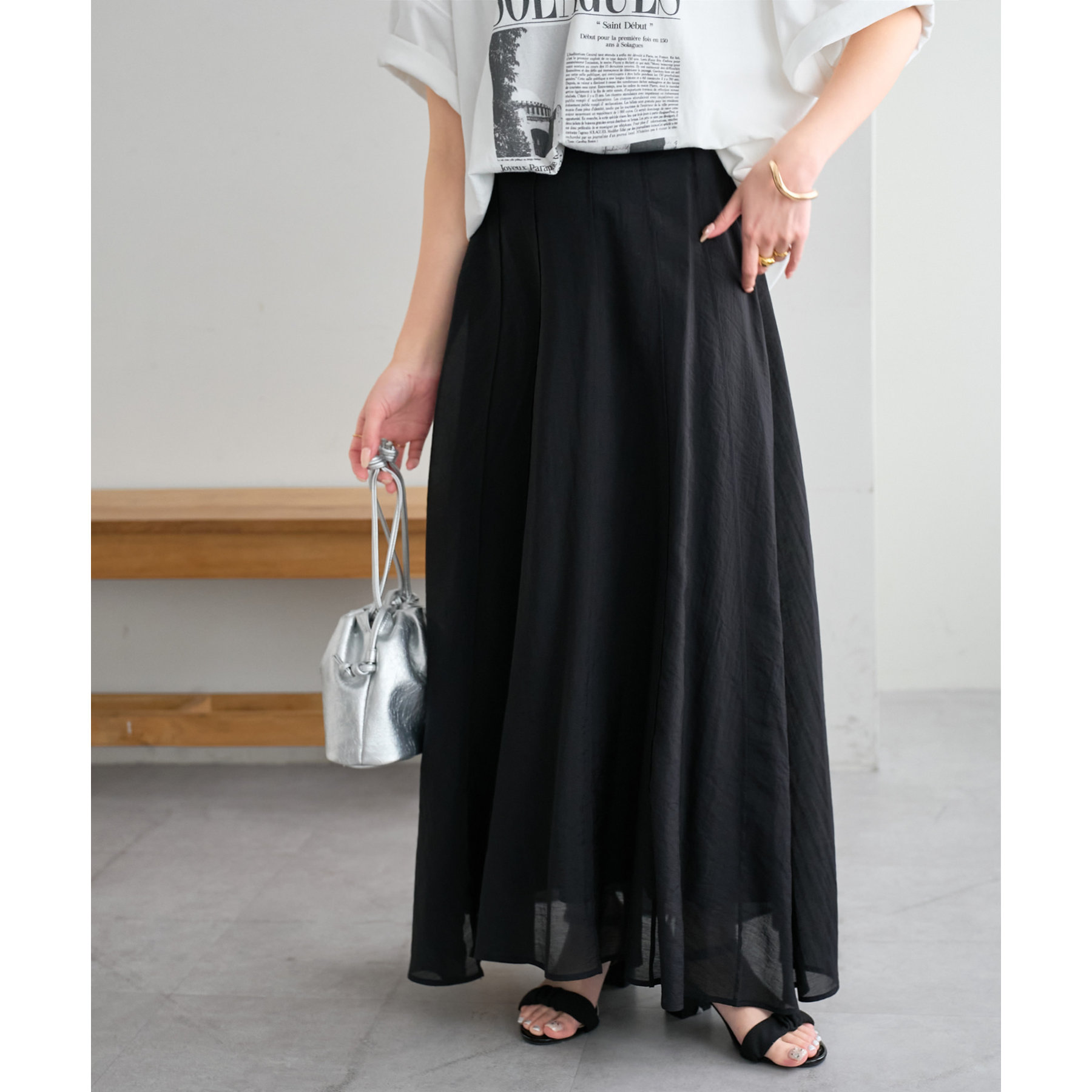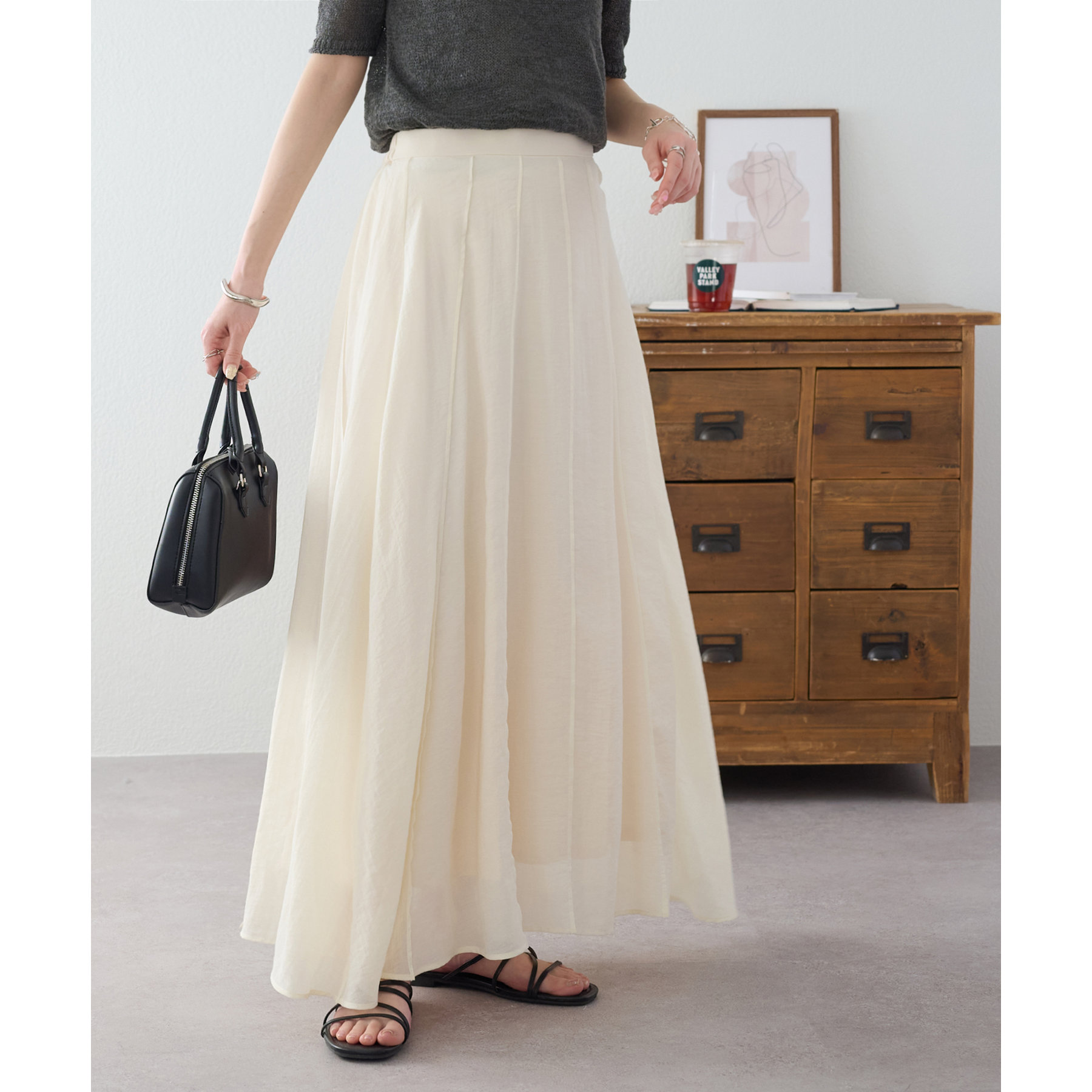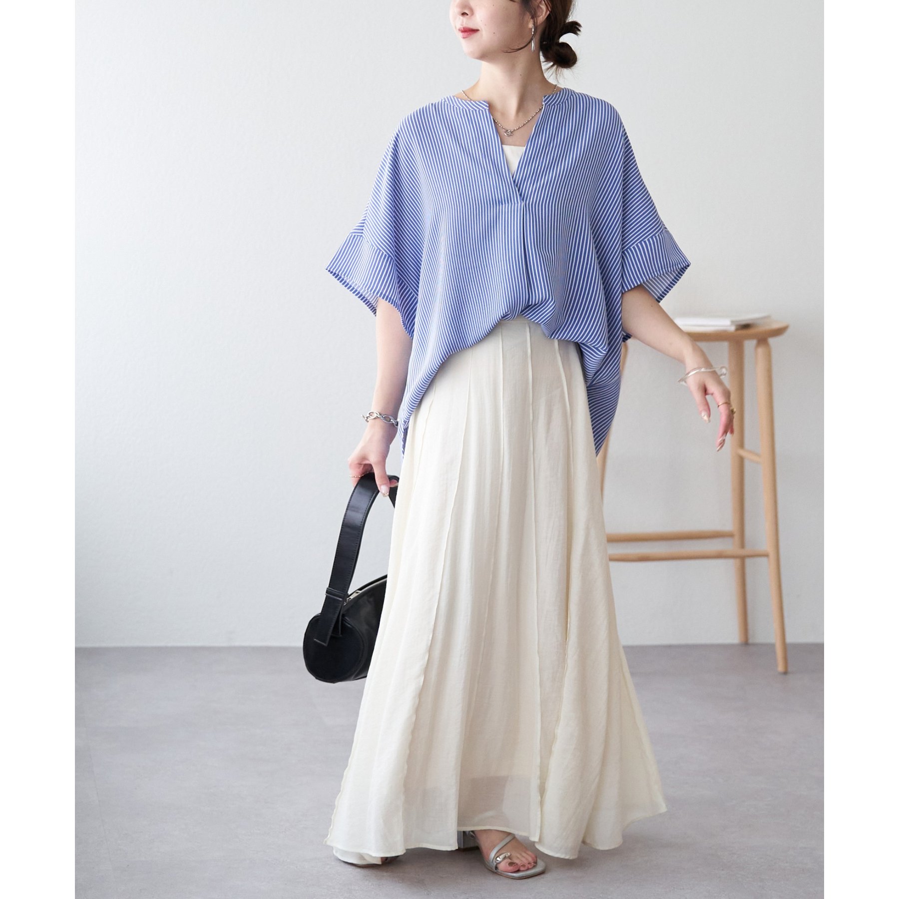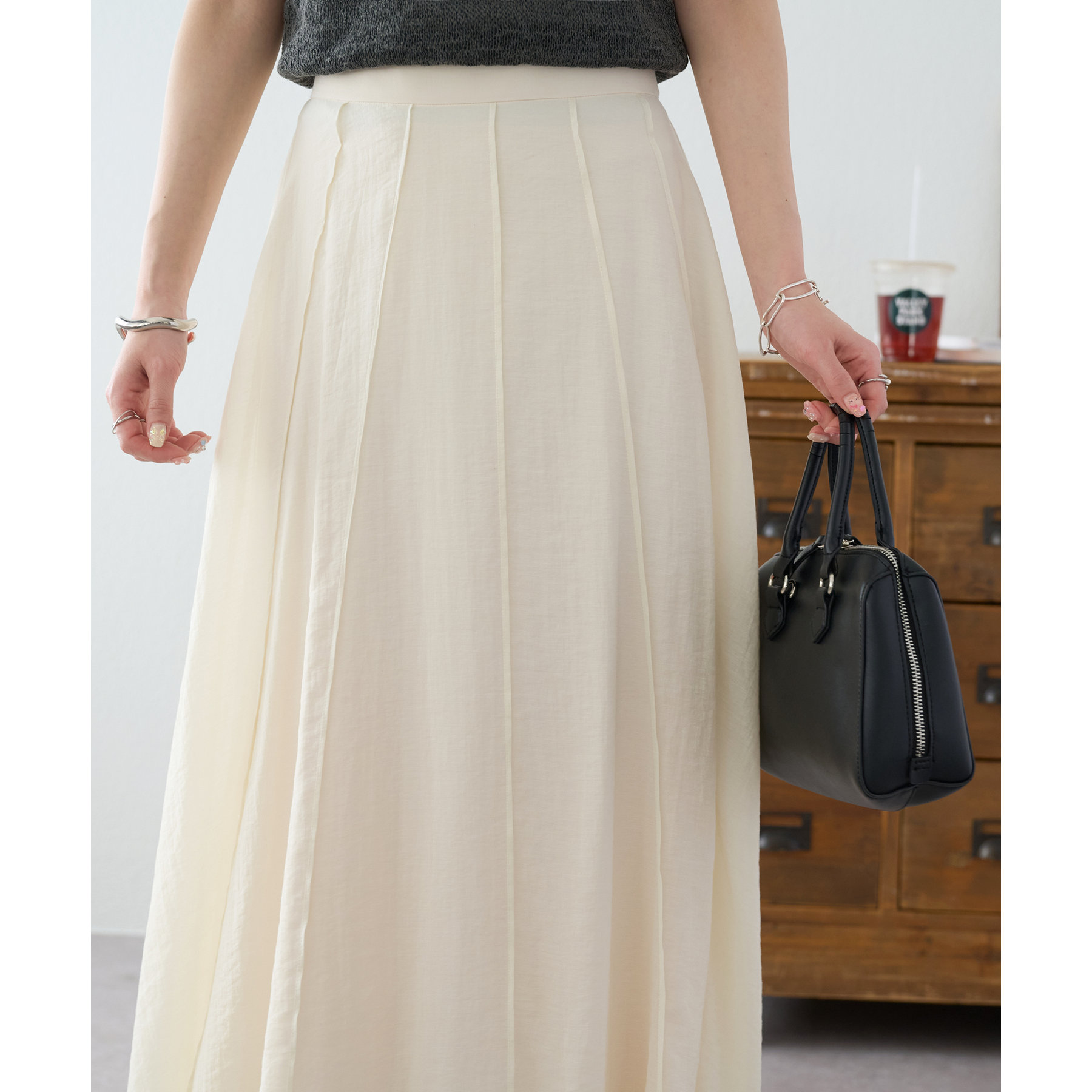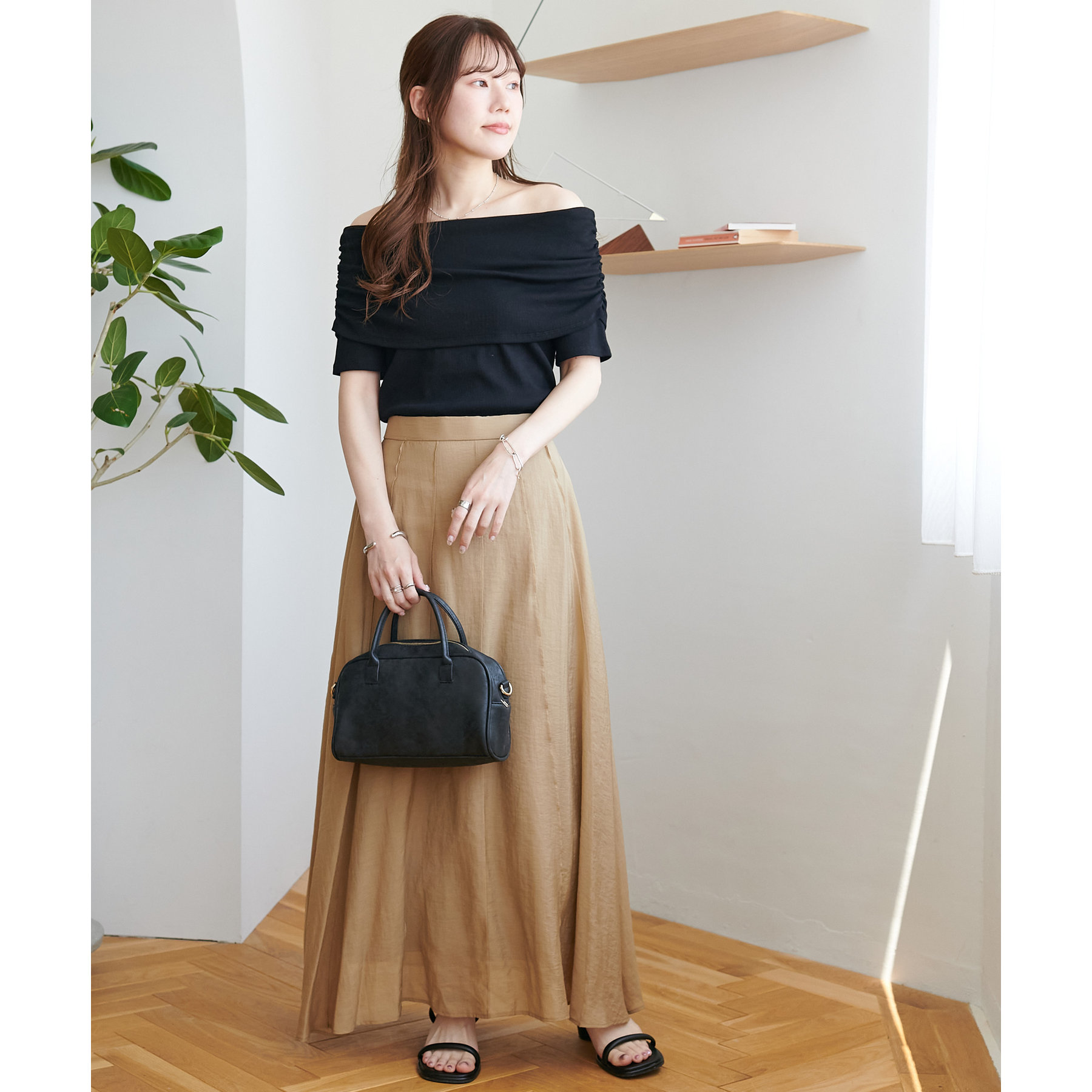 ややボリュームのあるふんわりとしたシルエットが女性らしさを演出。腰回りの広がりを抑えたフレアスカートはAラインが綺麗に見え、美シルエットを作り上げてくれます!また、縦スリットがスタイルをより良く見せてくれます。