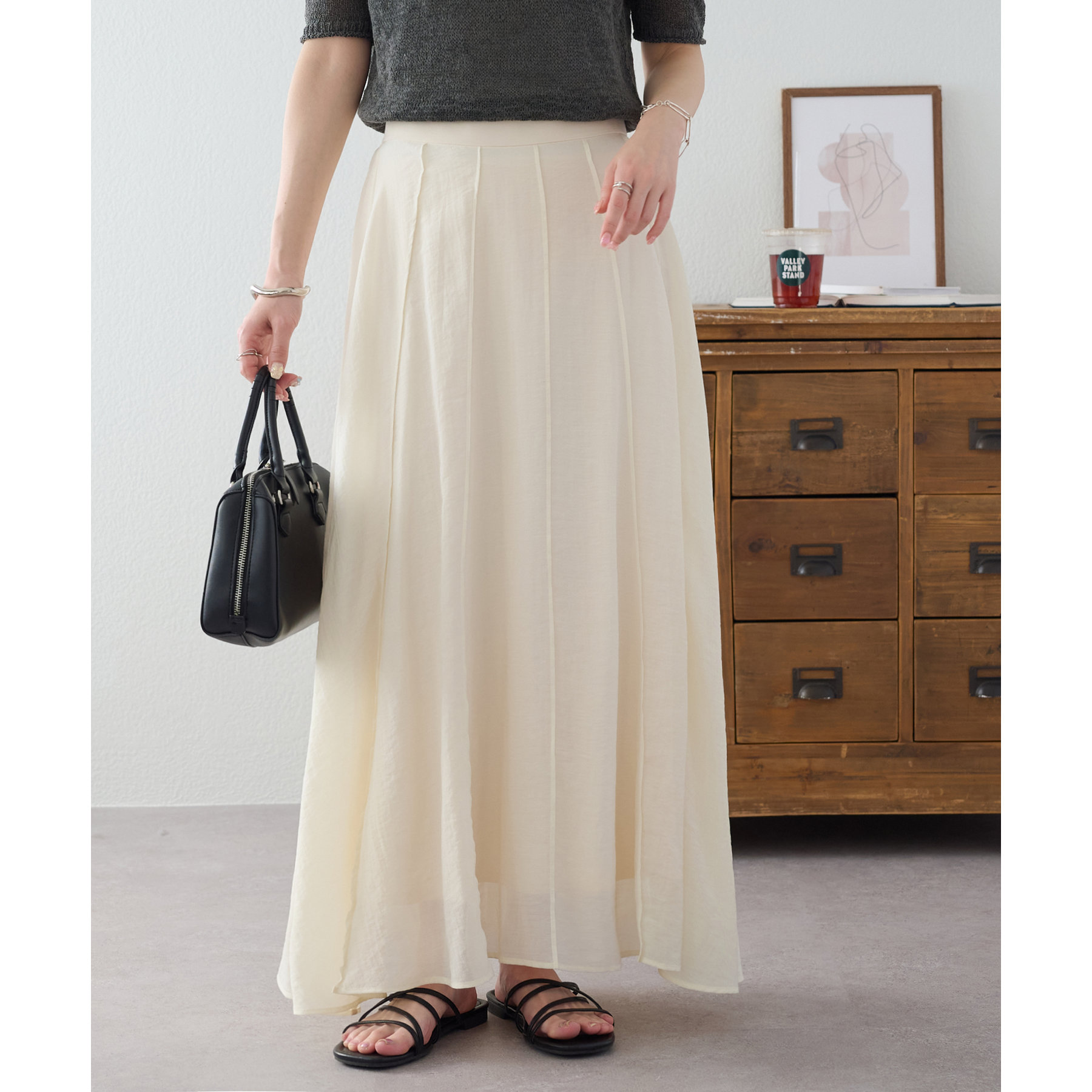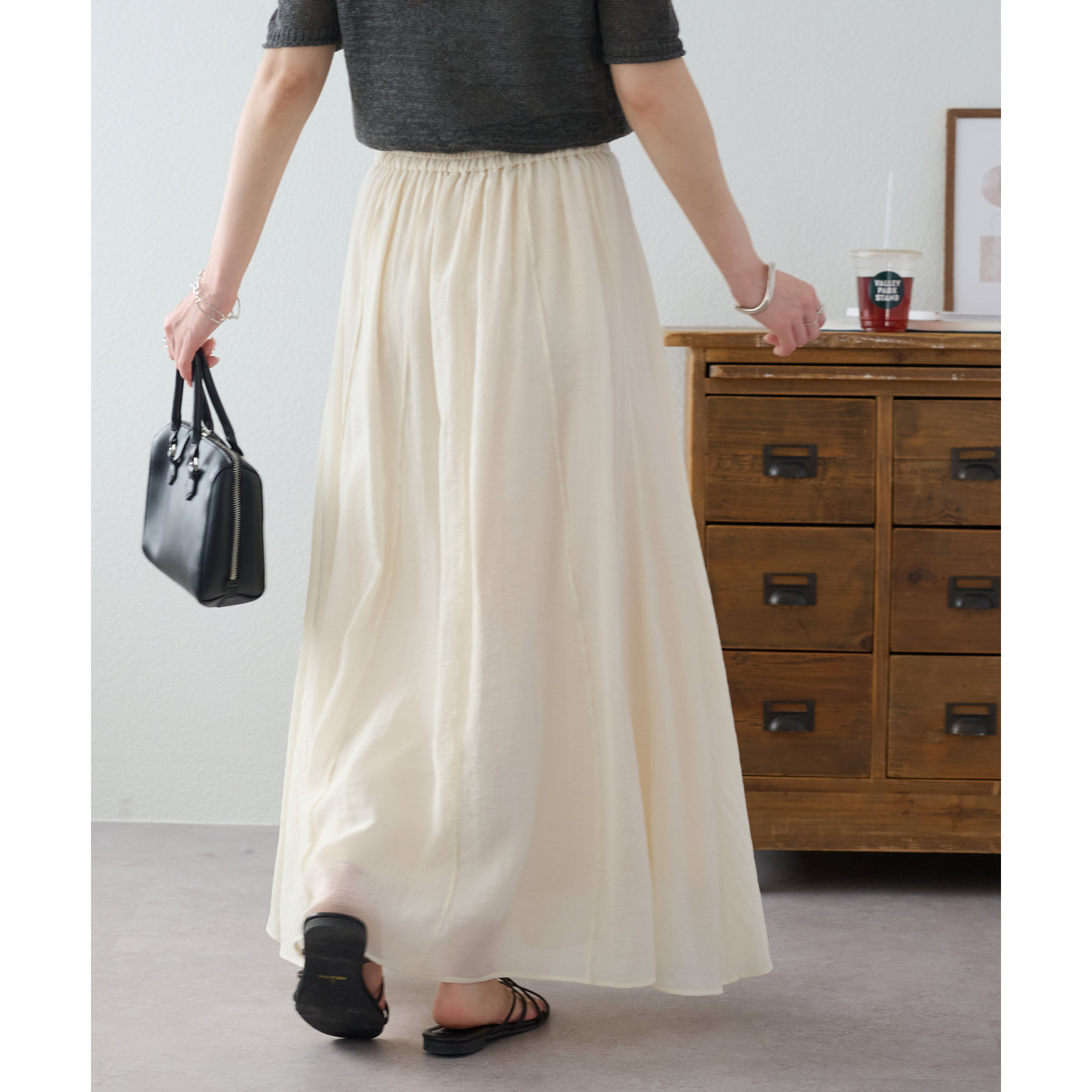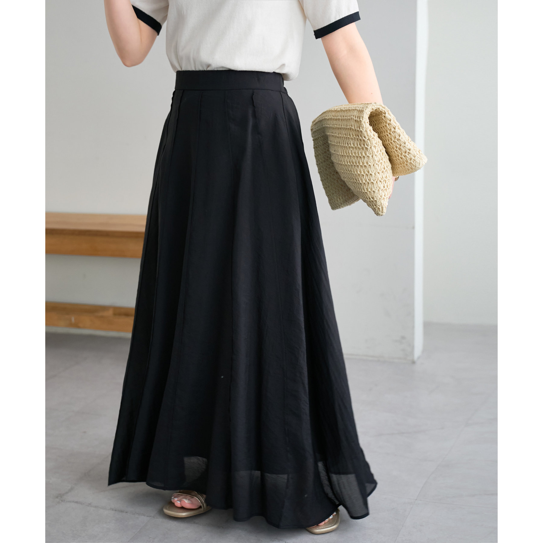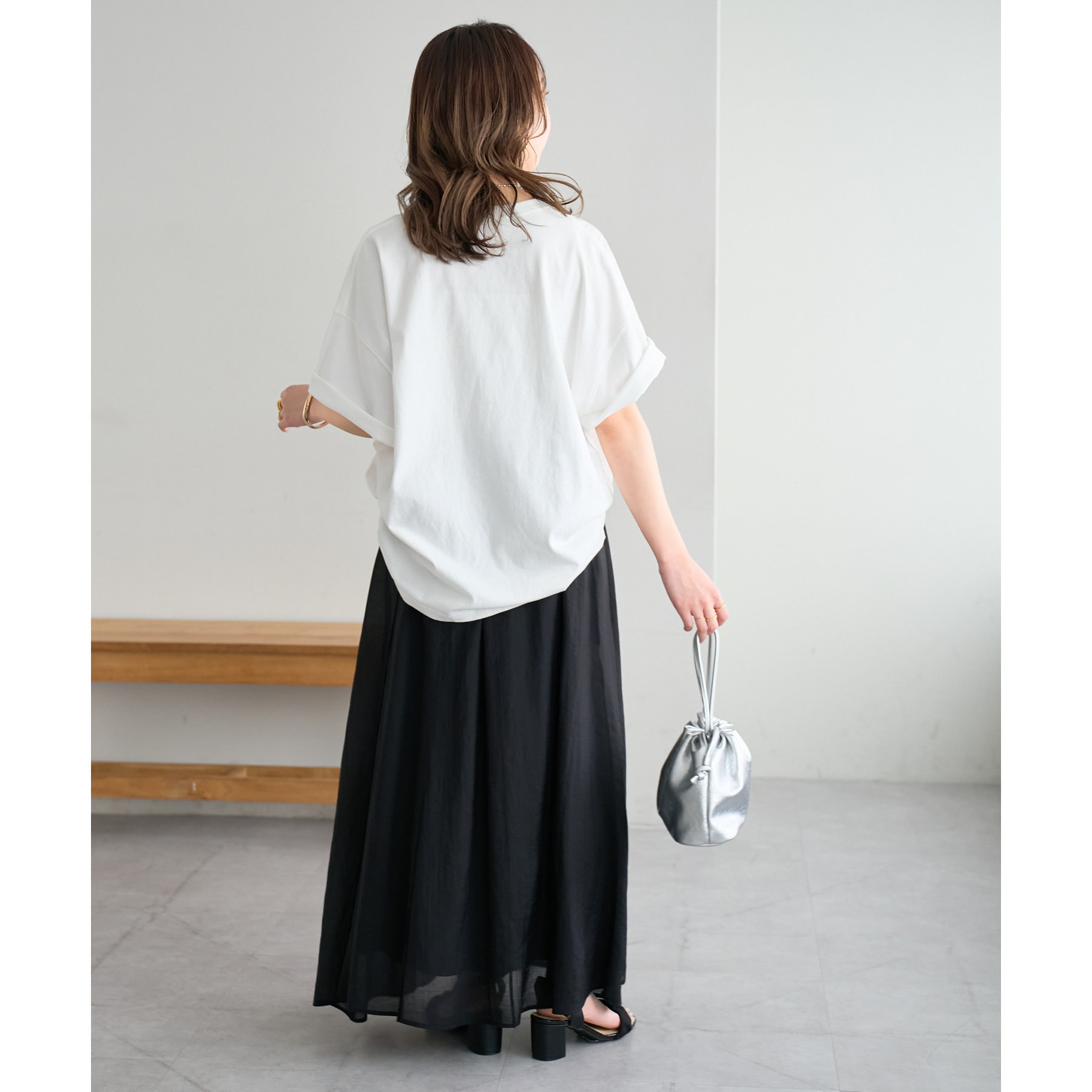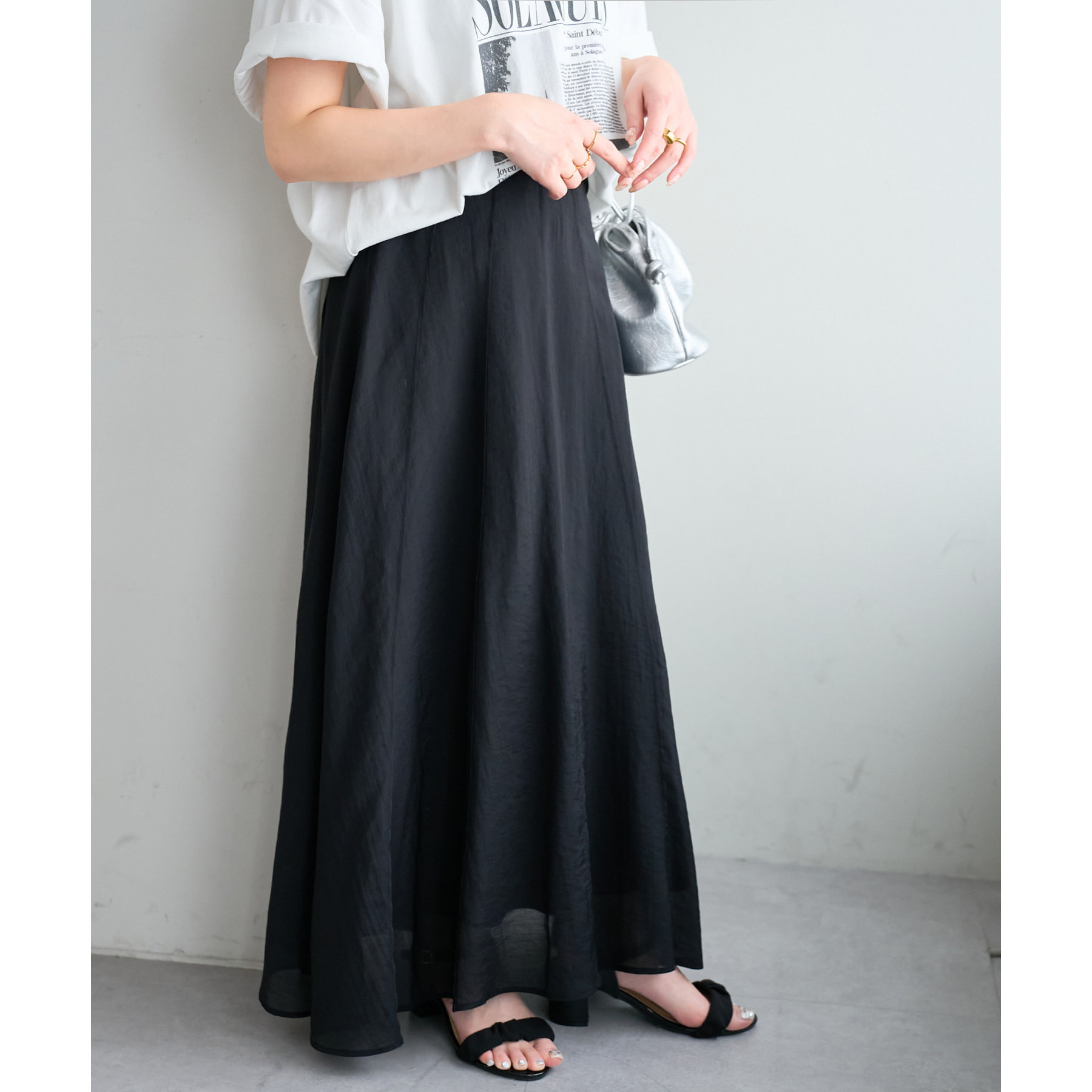 ややボリュームのあるふんわりとしたシルエットが女性らしさを演出。腰回りの広がりを抑えたフレアスカートはAラインが綺麗に見え、美シルエットを作り上げてくれます!また、縦スリットがスタイルをより良く見せてくれます。