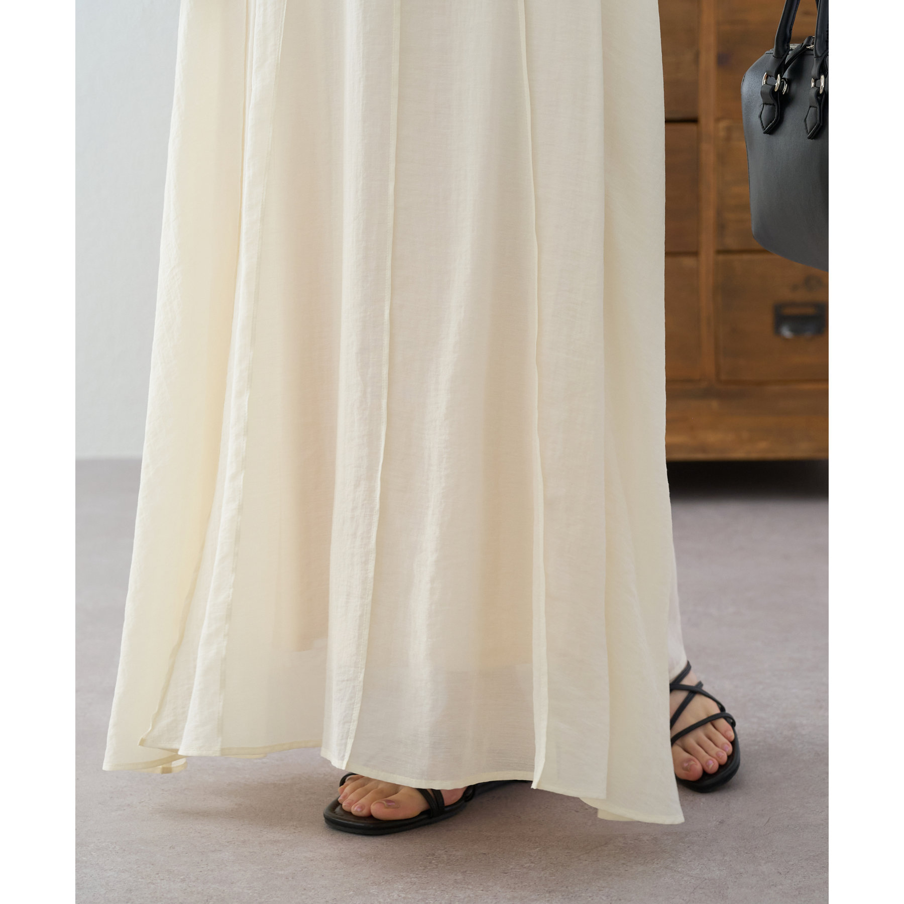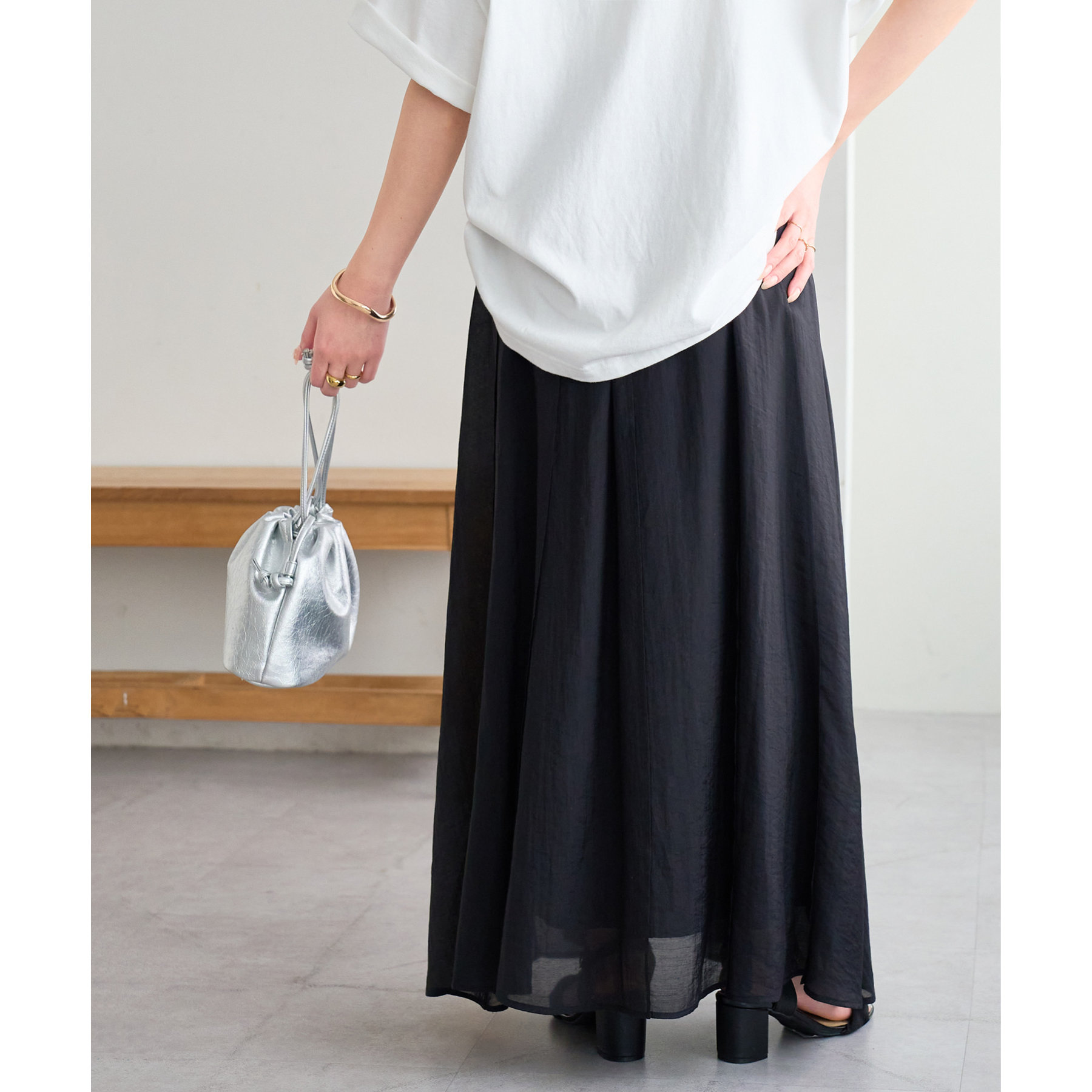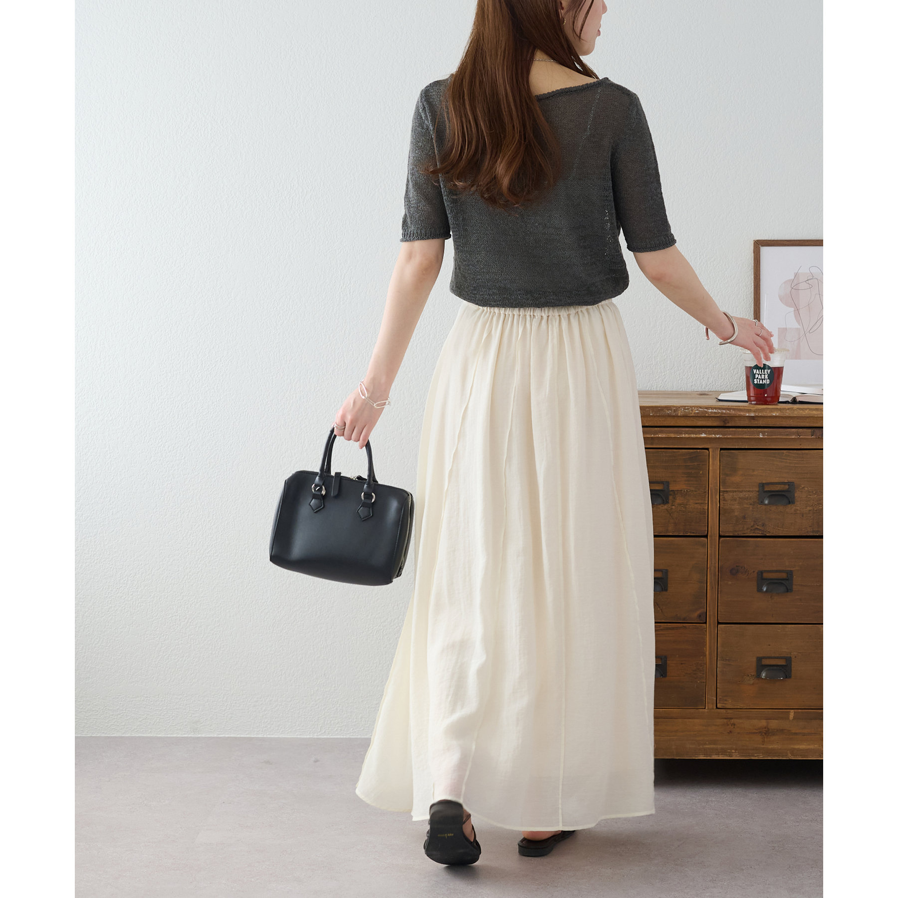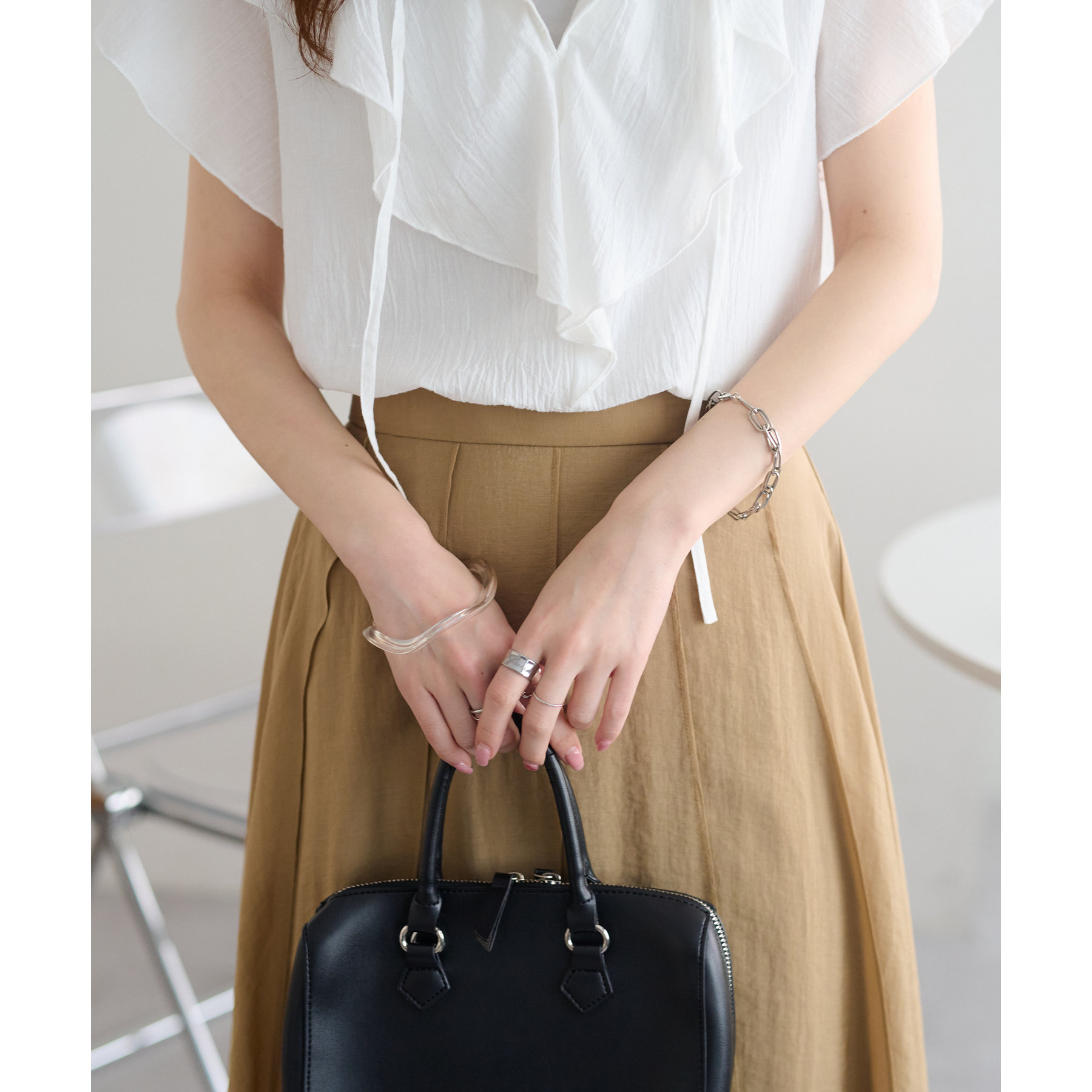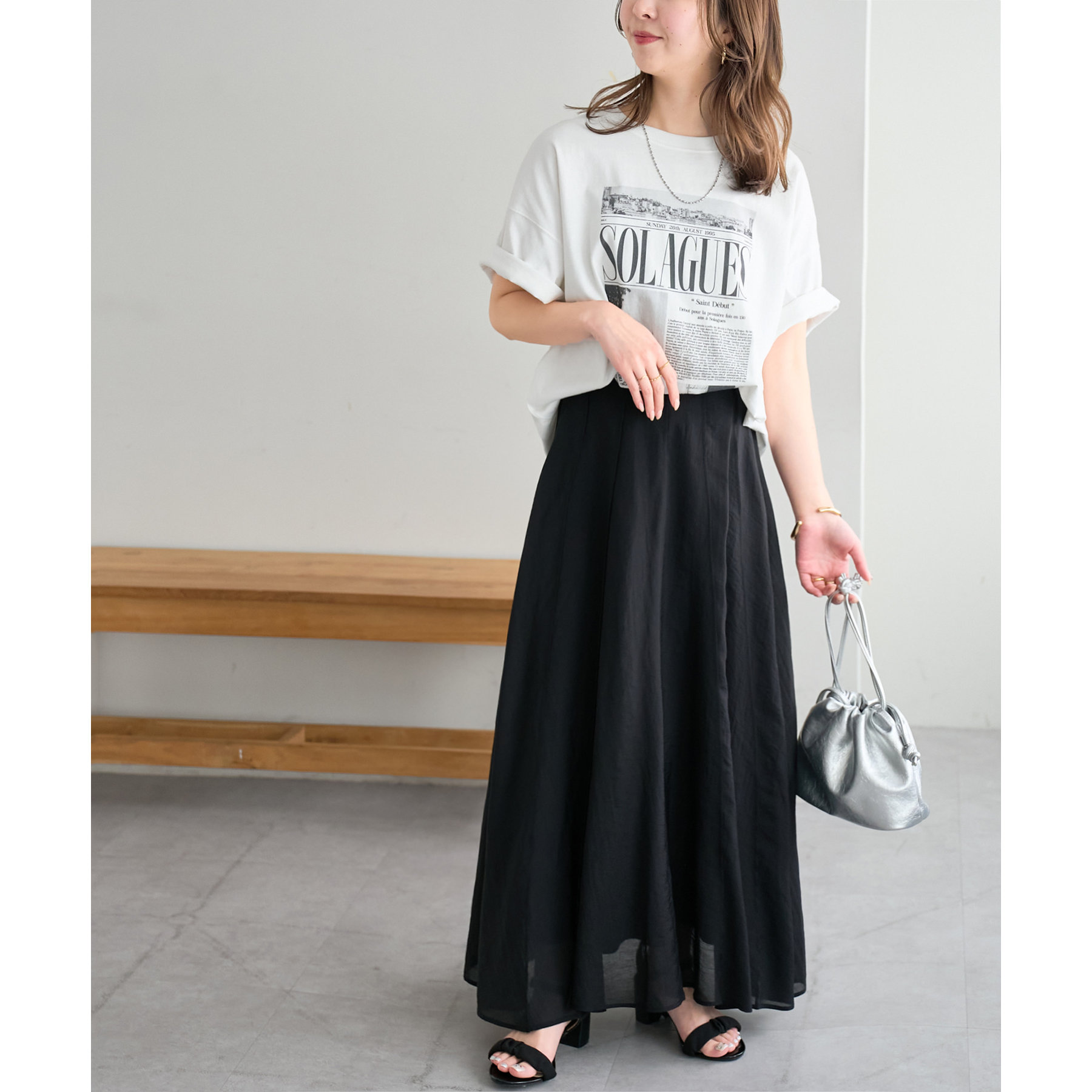 ややボリュームのあるふんわりとしたシルエットが女性らしさを演出。腰回りの広がりを抑えたフレアスカートはAラインが綺麗に見え、美シルエットを作り上げてくれます!また、縦スリットがスタイルをより良く見せてくれます。