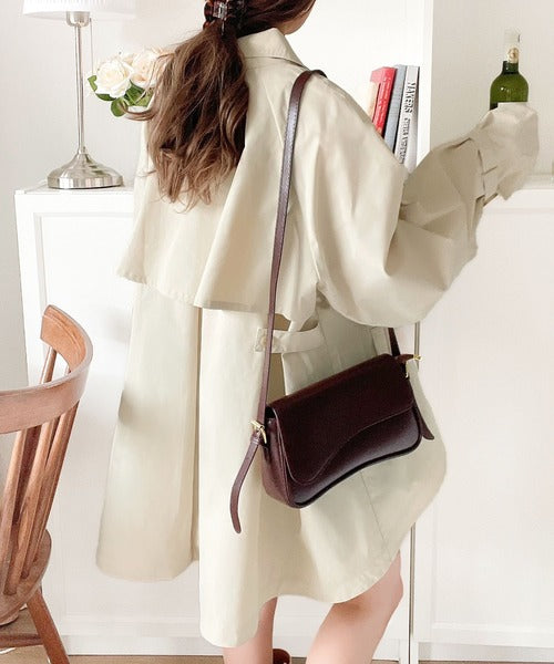 前後差のあるラウンド裾であらゆる丈のお洋服に合わせやすいミドル丈トレンチコートです。
