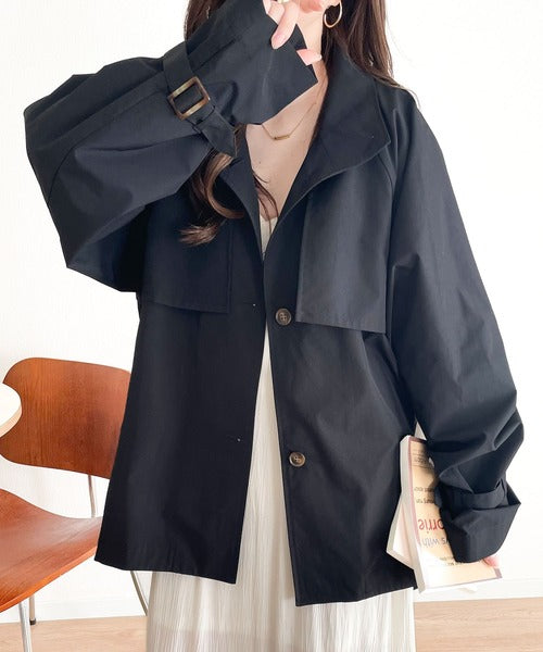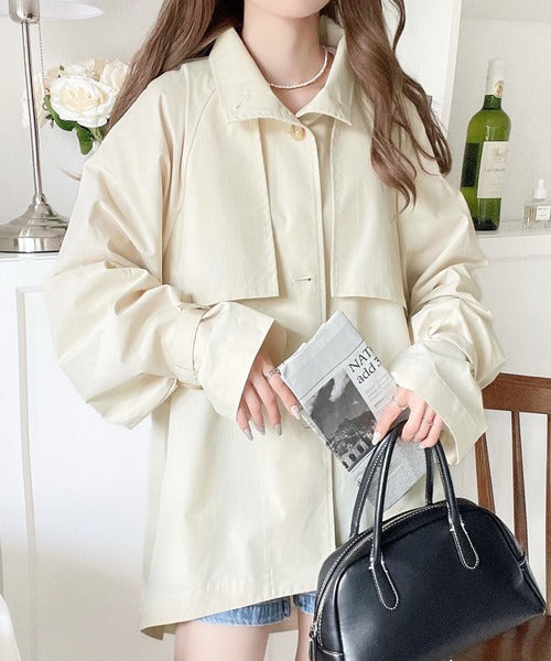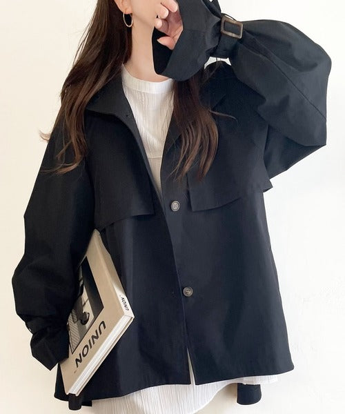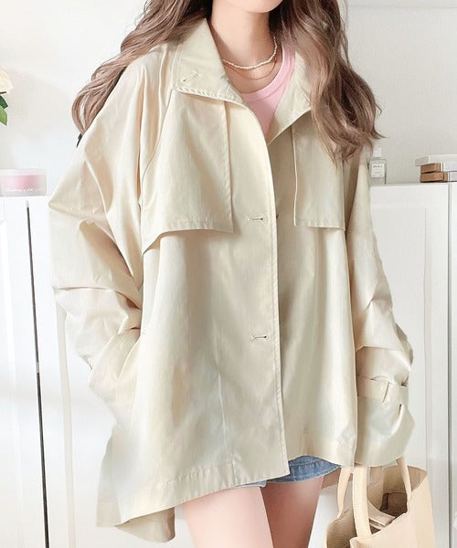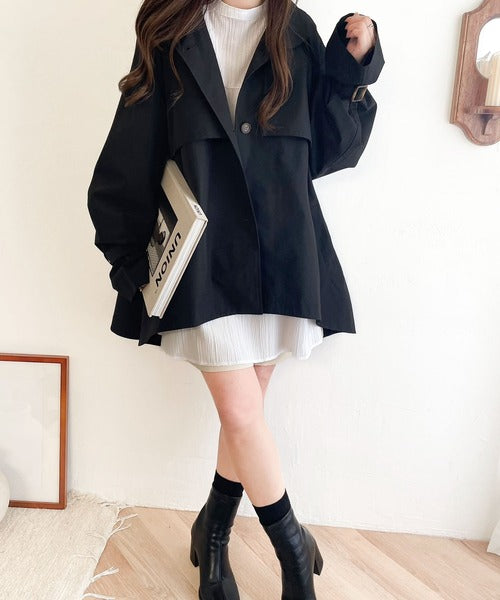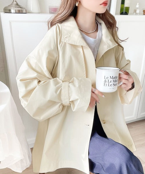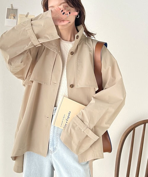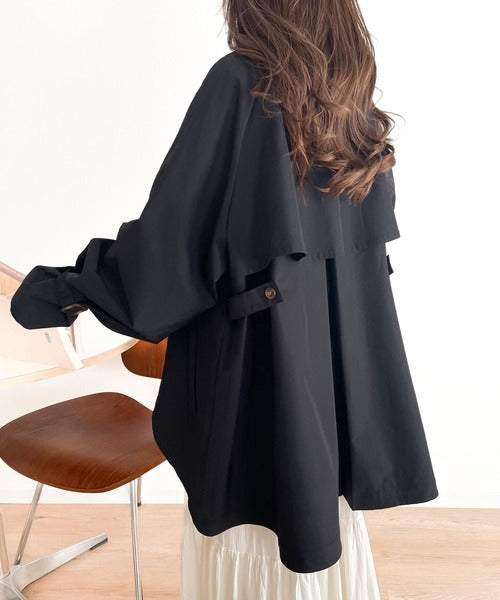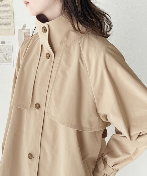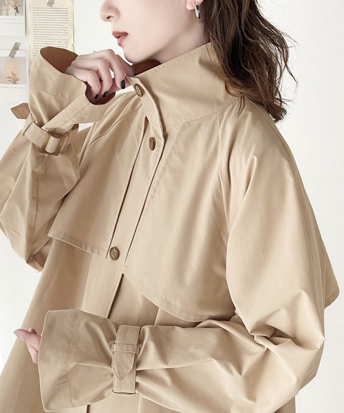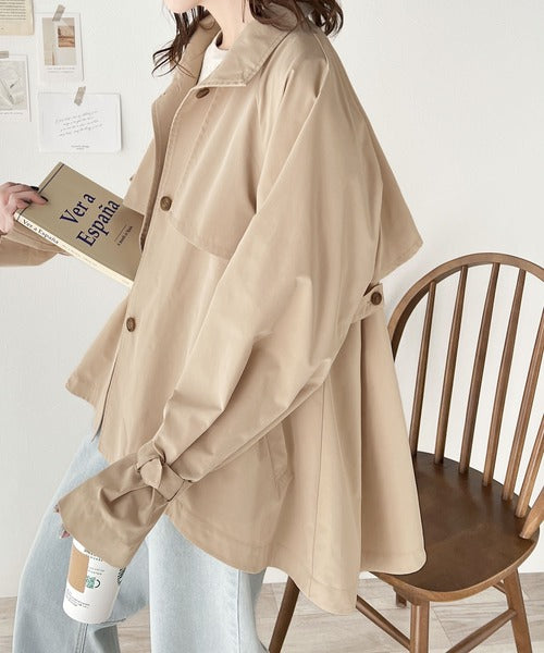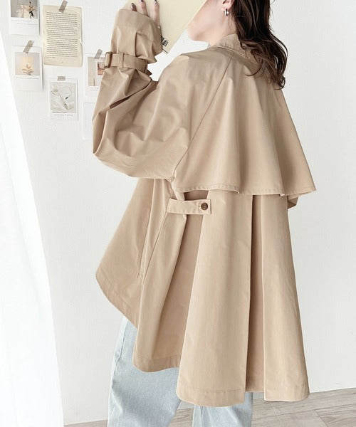 大人ガーリーなポンチョ風トレンチ。バックタックトレンチコート ce1260082