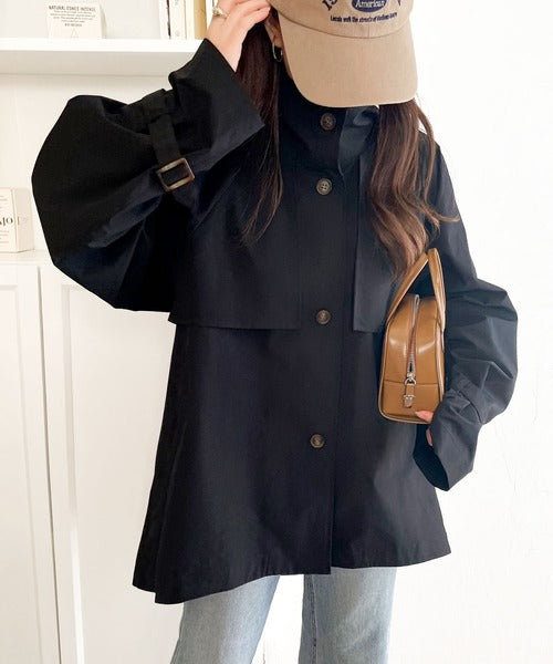 スタンドカラーを立てて着用すればレトロ可愛いスタイルの完成。