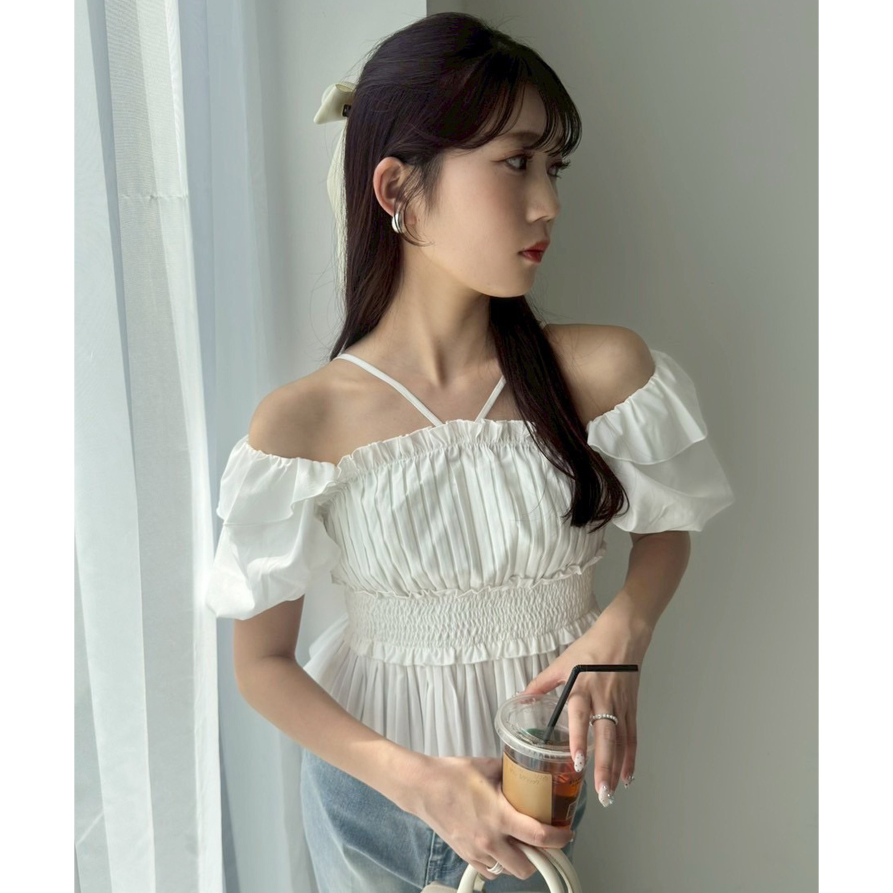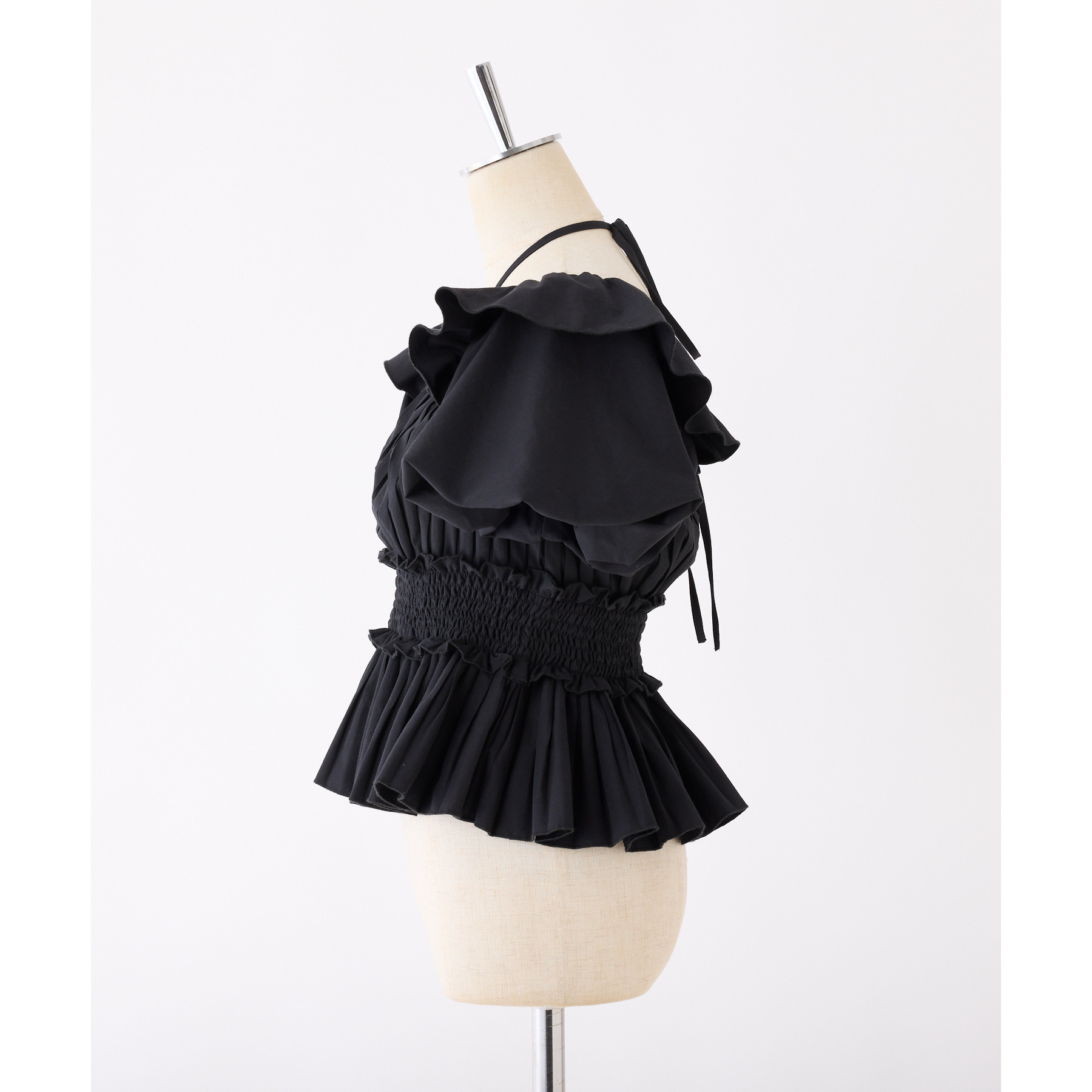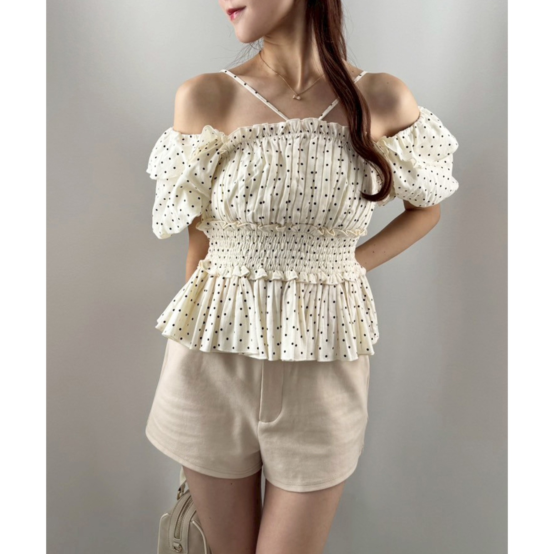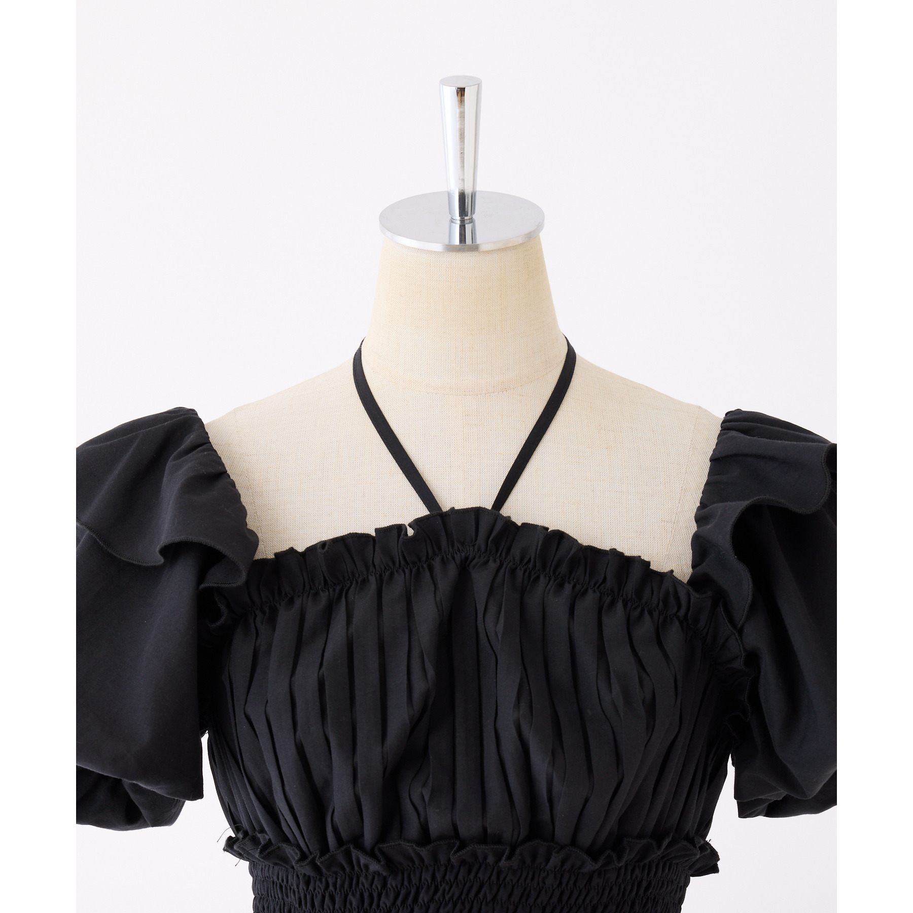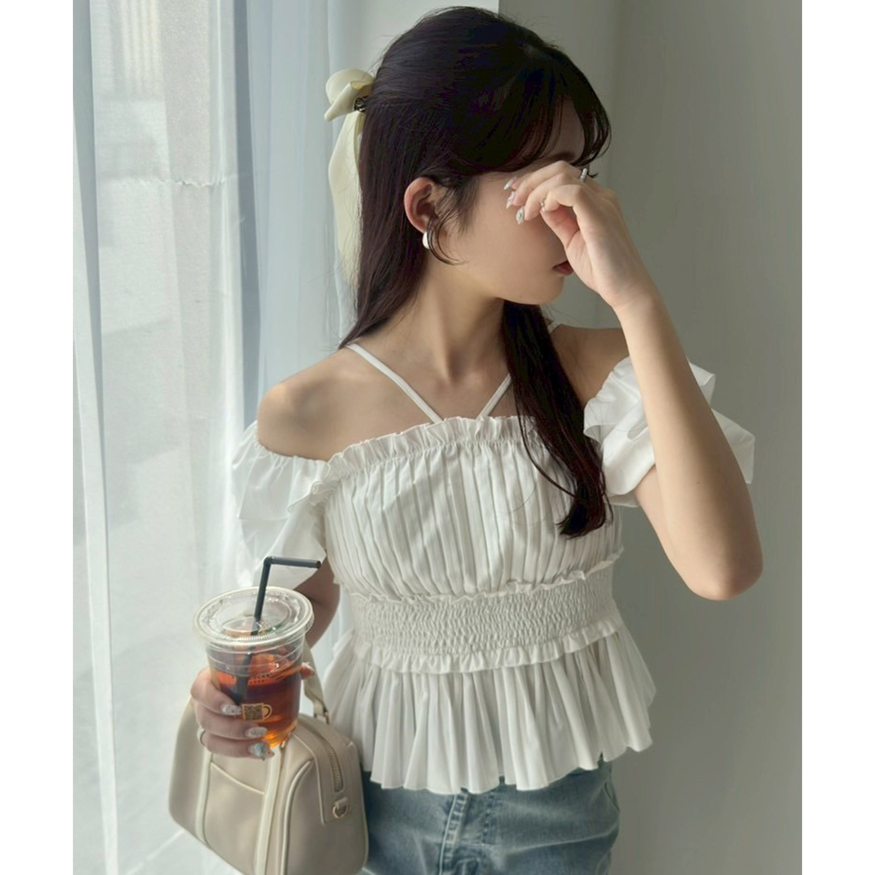 繊細なプリーツ素材を使用した、立体感のあるペプラムデザインが魅力の一枚。