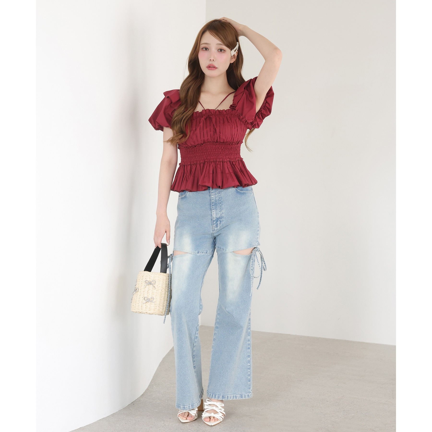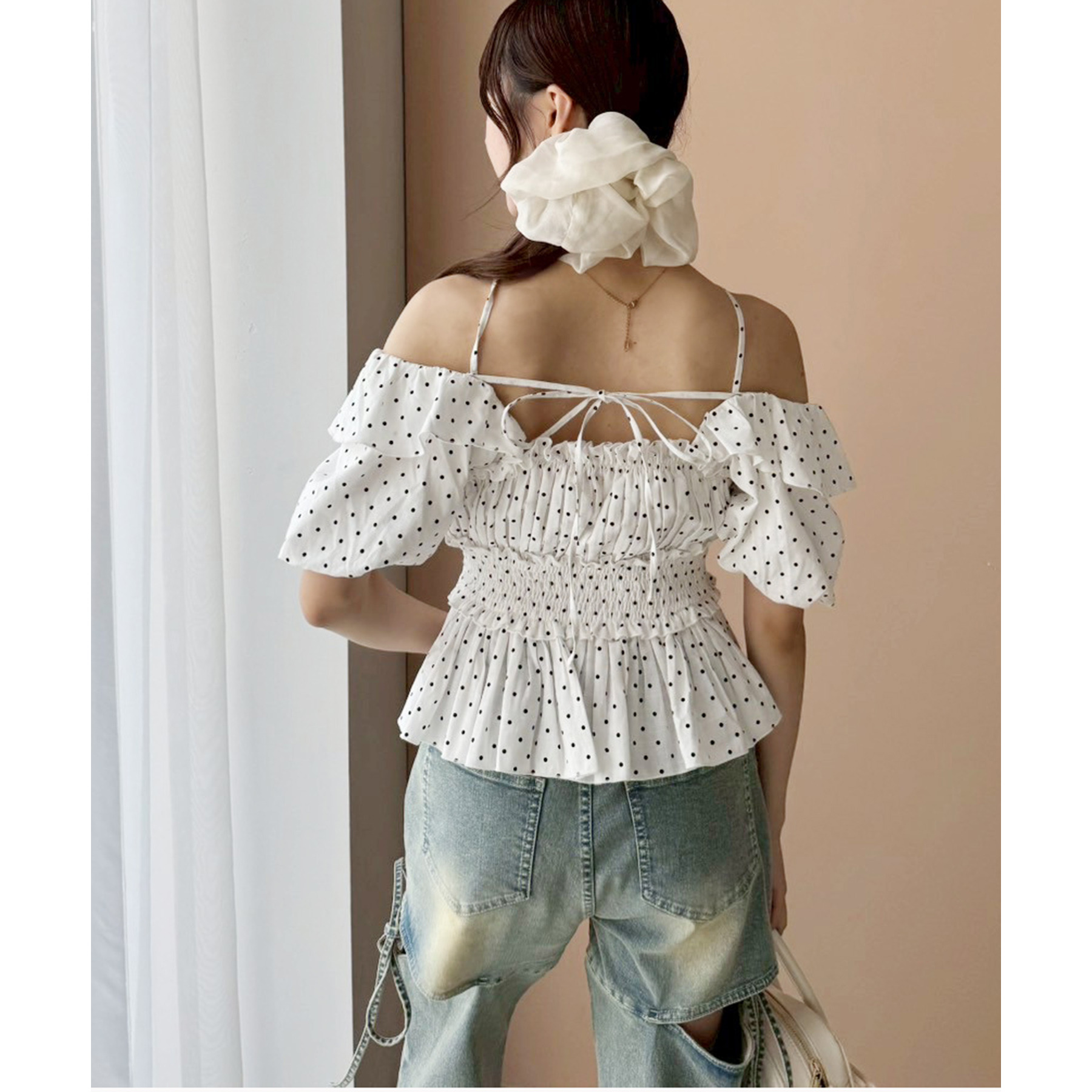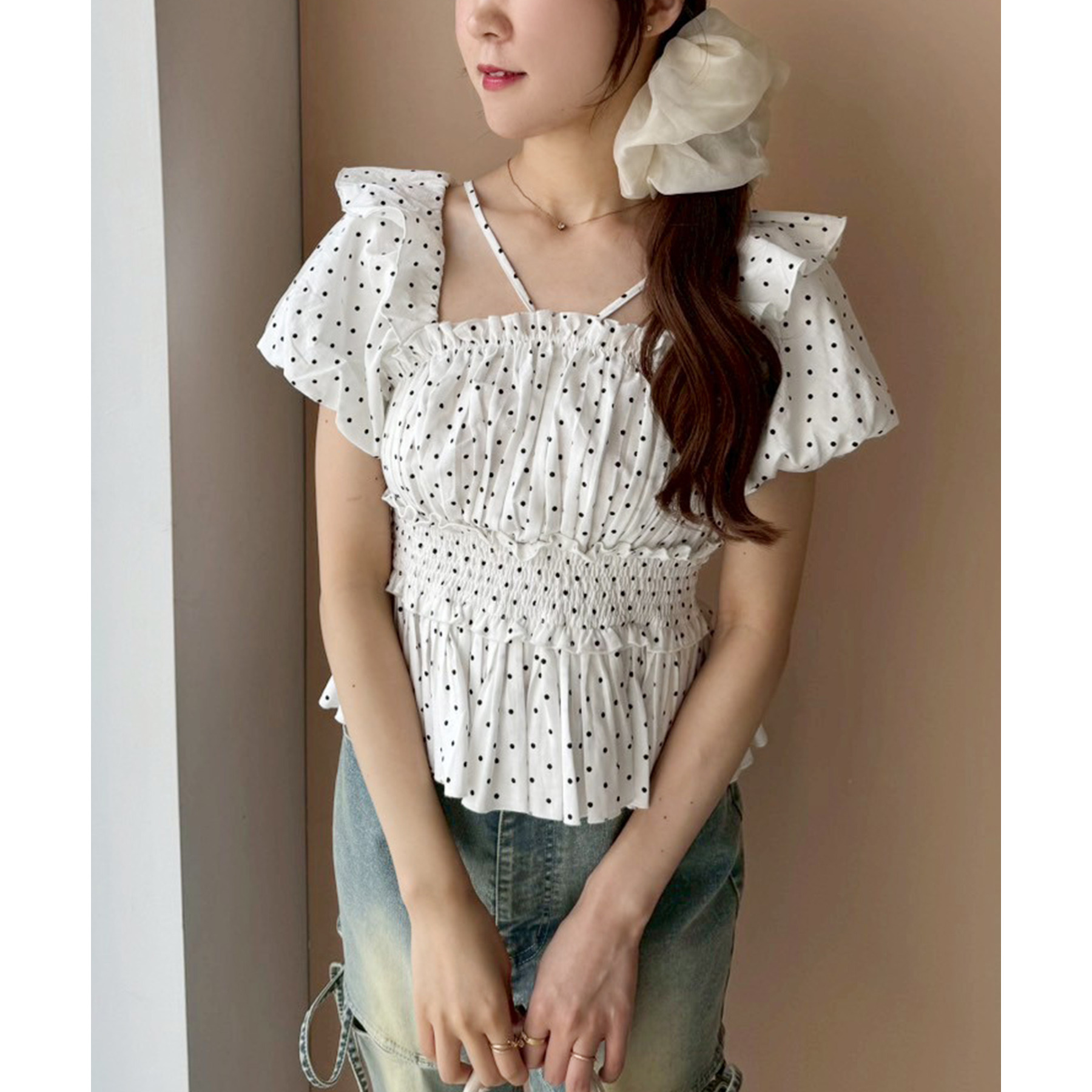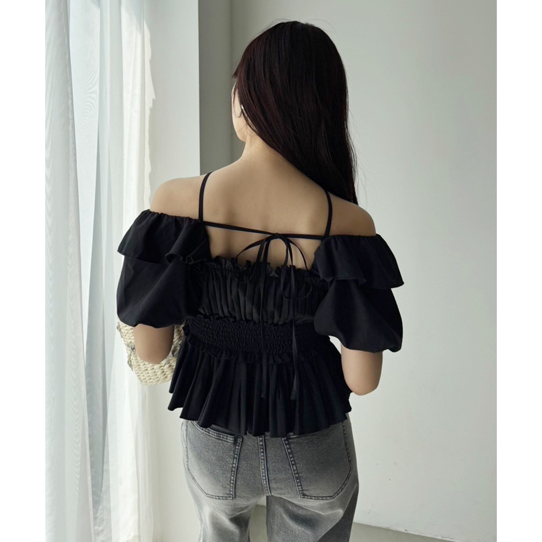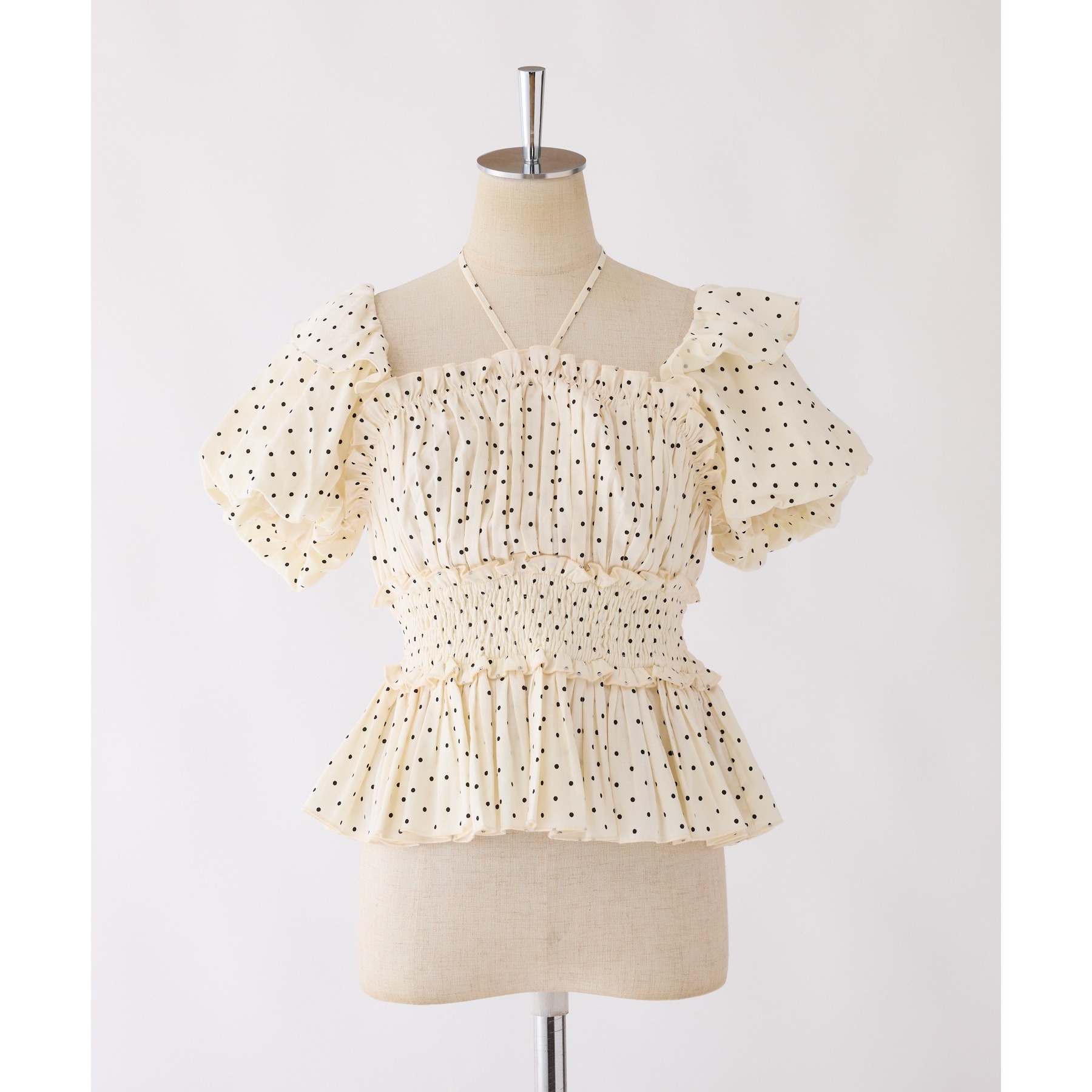 繊細なプリーツ素材を使用した、立体感のあるペプラムデザインが魅力の一枚。