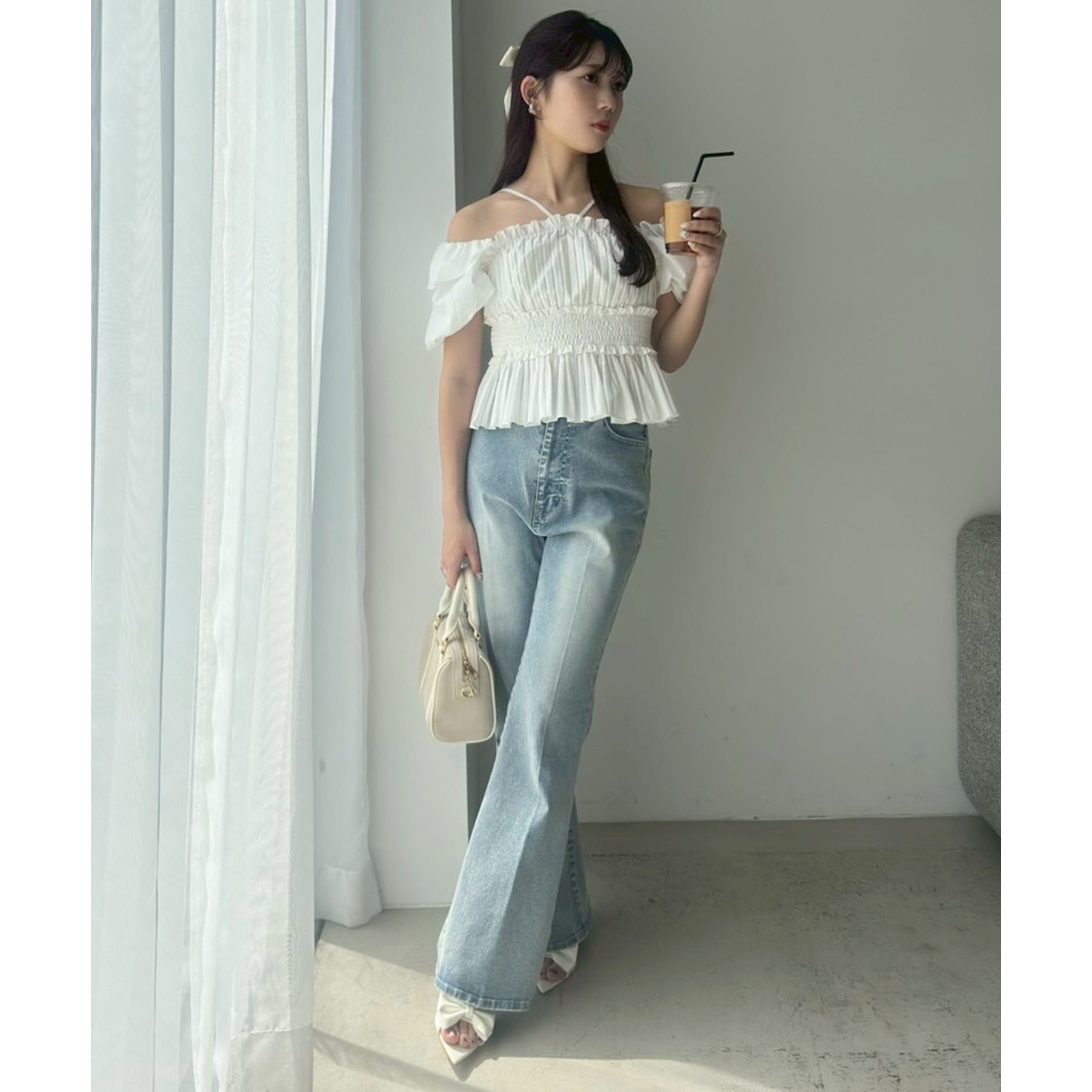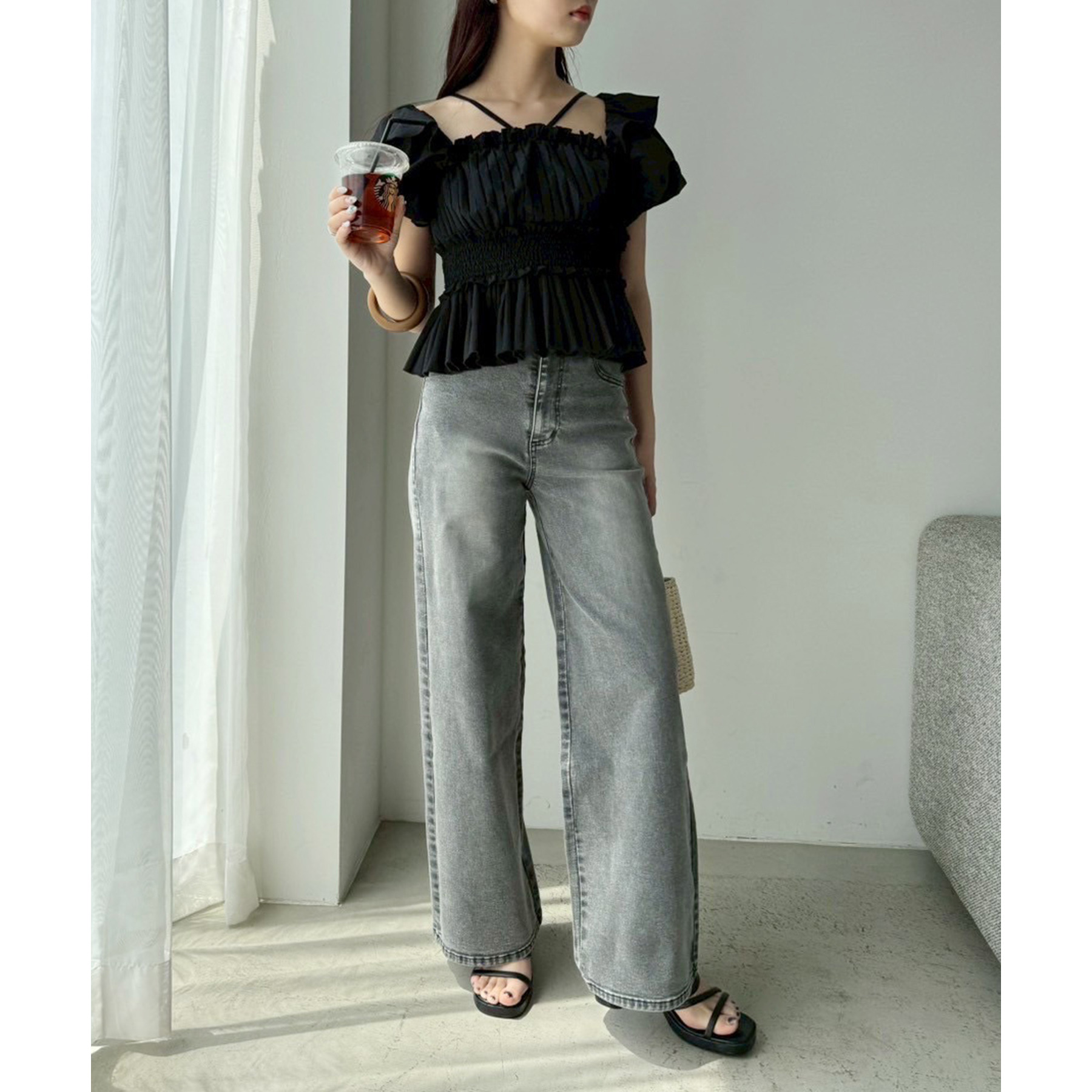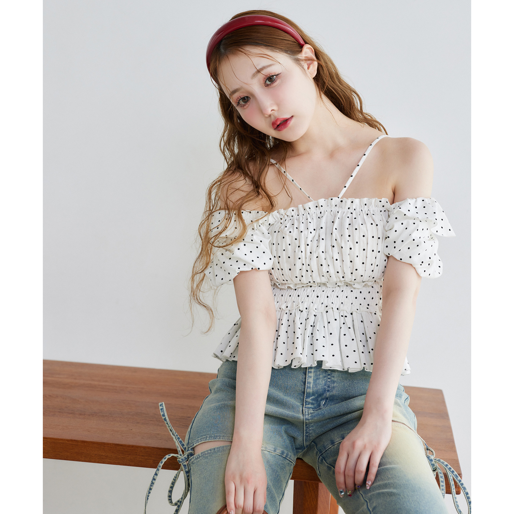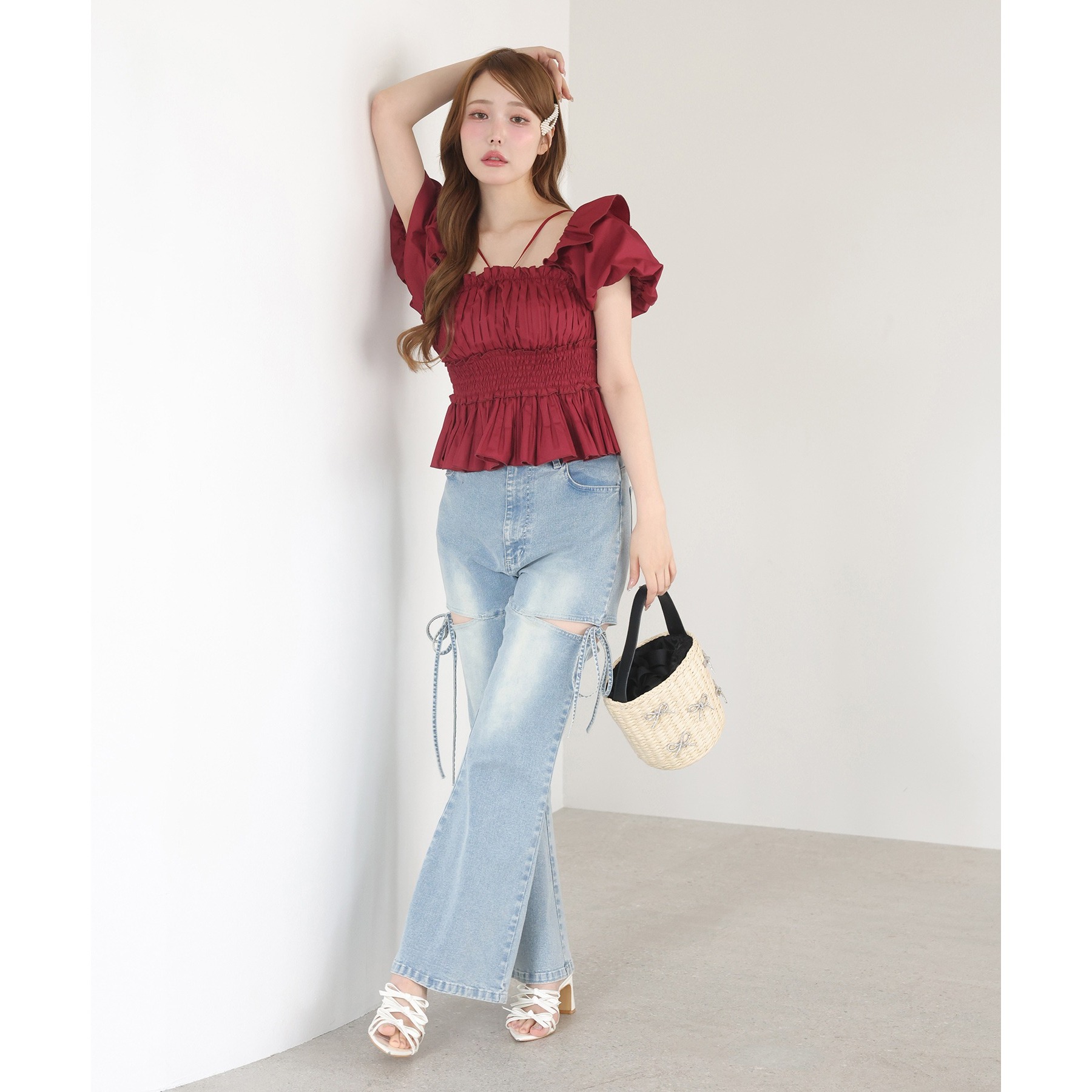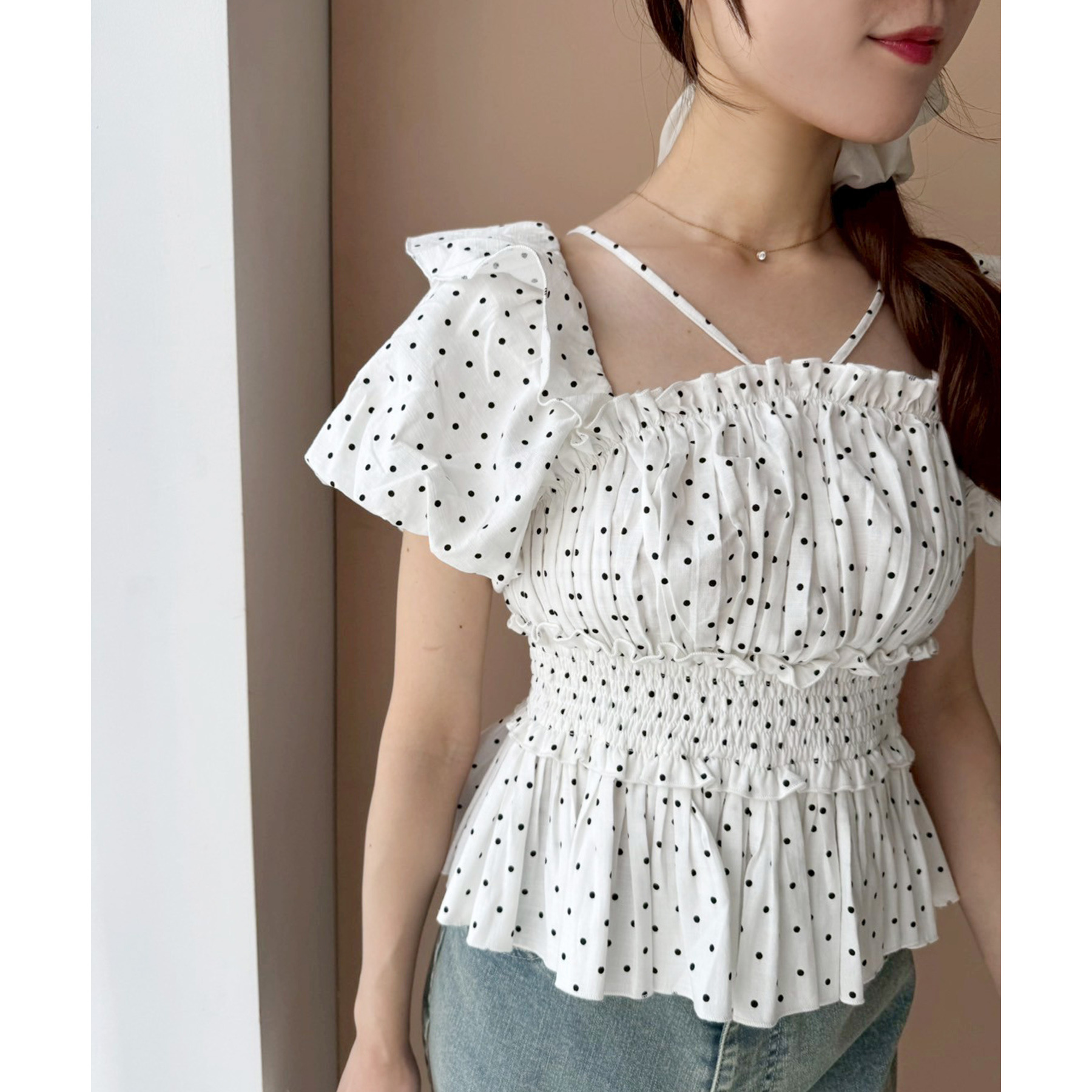 繊細なプリーツ素材を使用した、立体感のあるペプラムデザインが魅力の一枚。