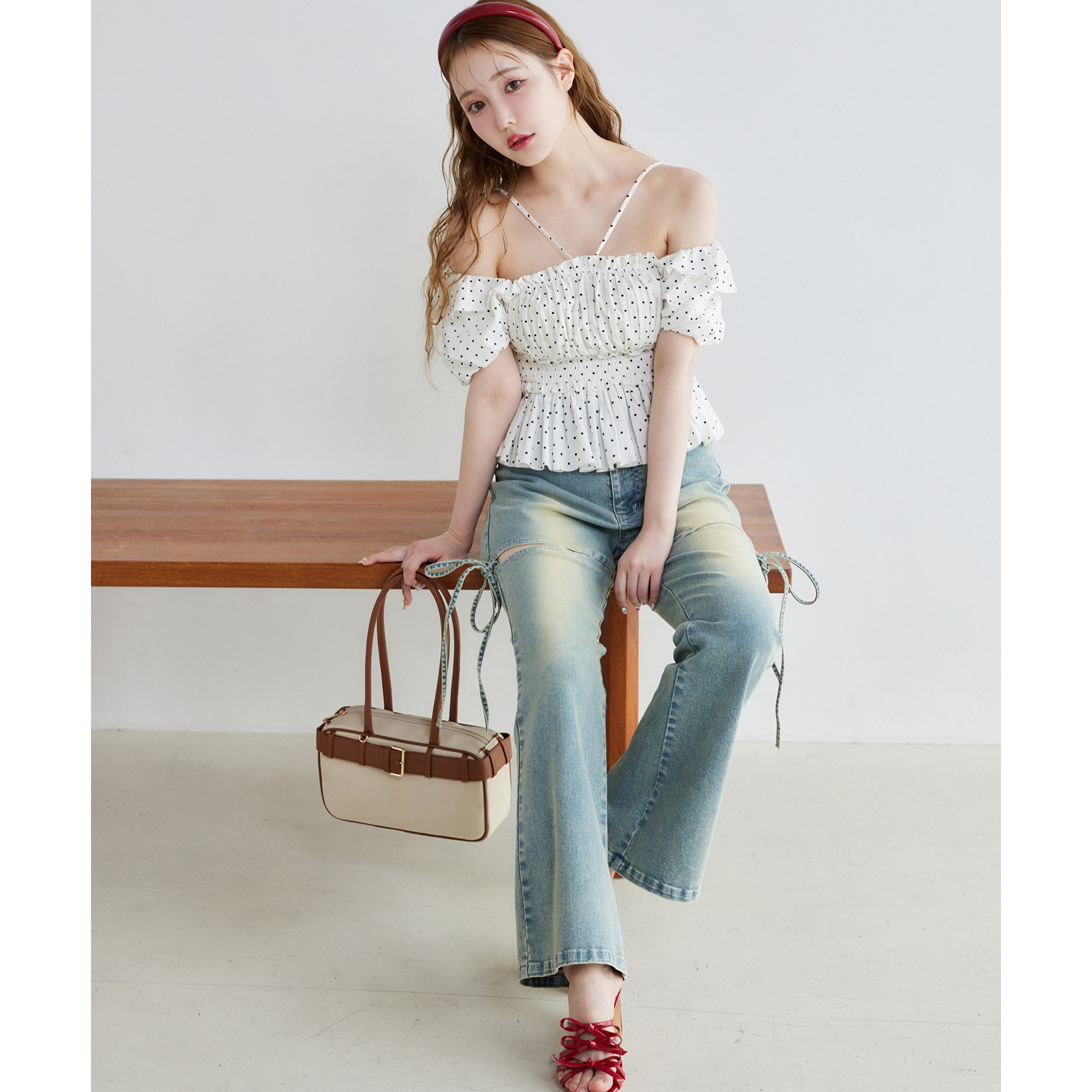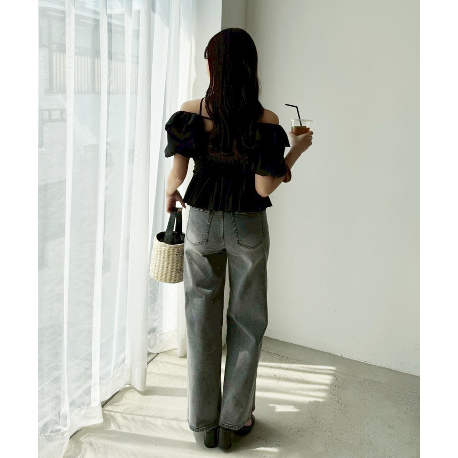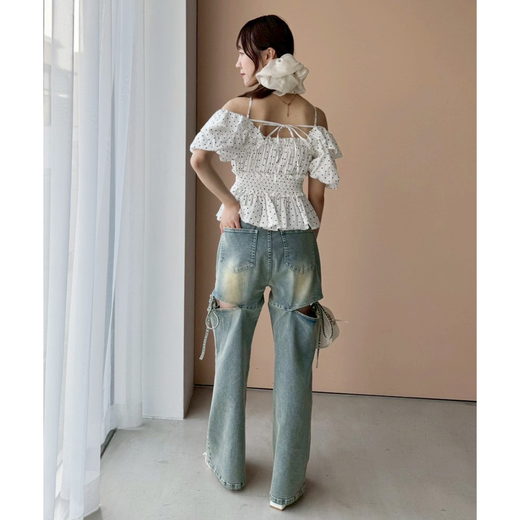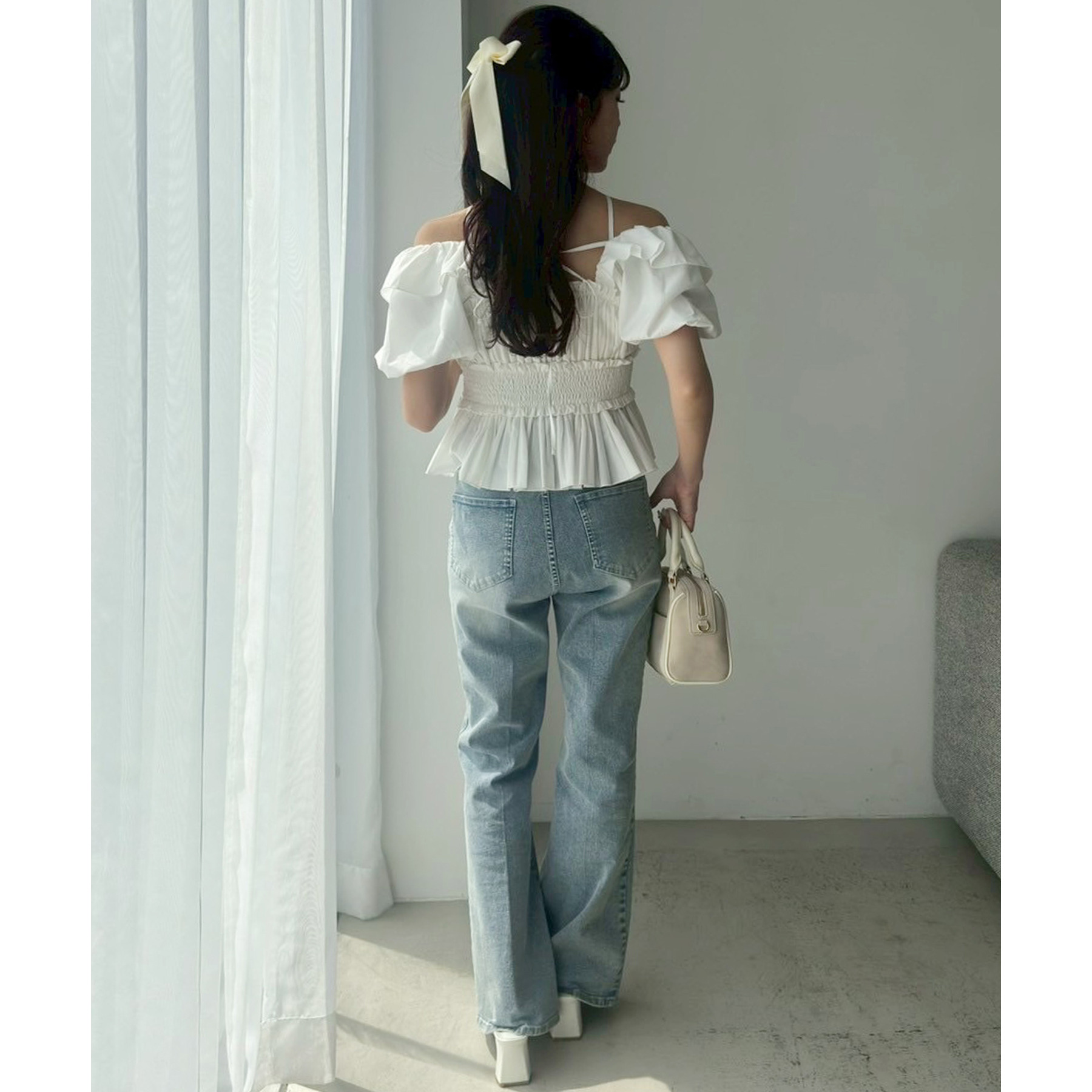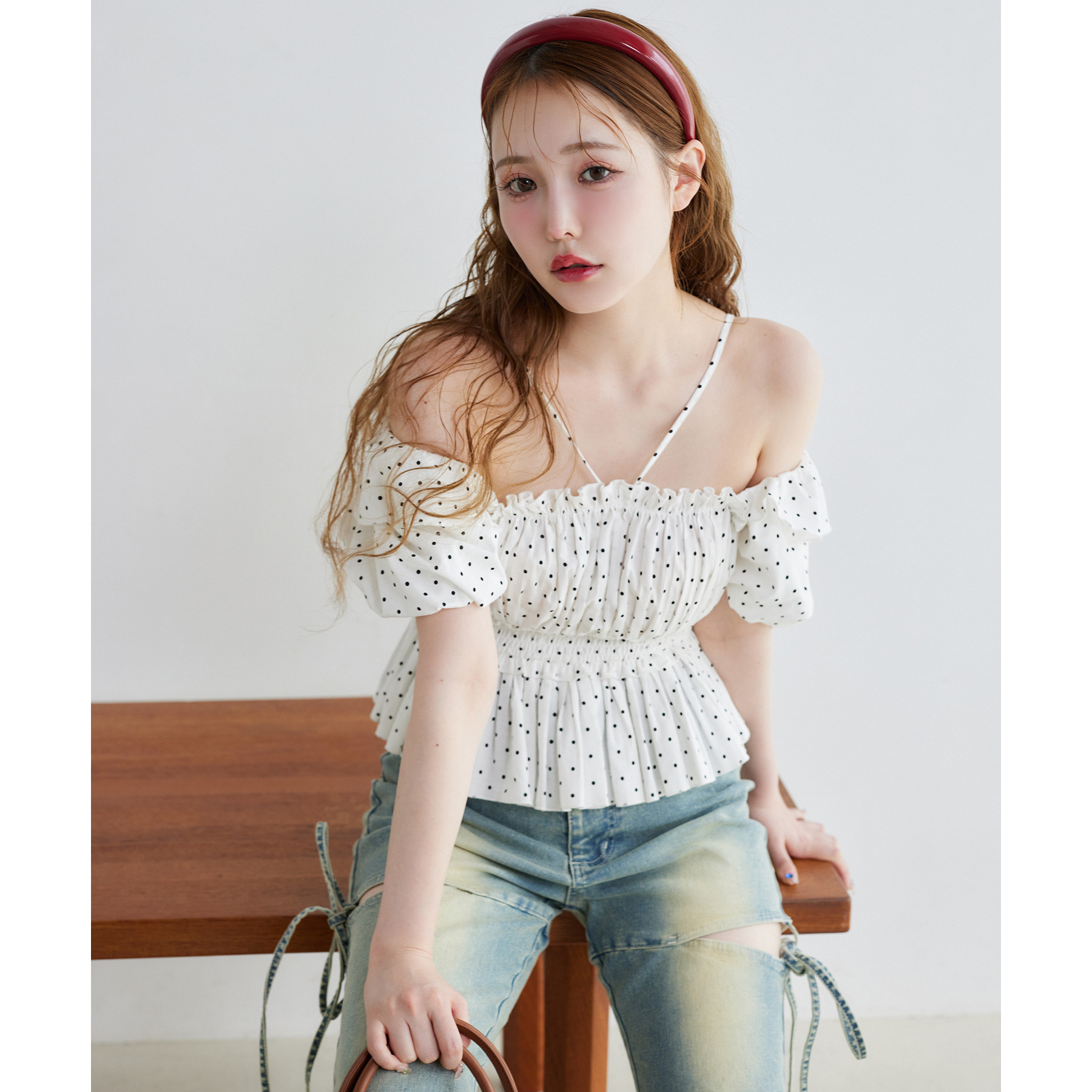繊細なプリーツ素材を使用した、立体感のあるペプラムデザインが魅力の一枚。