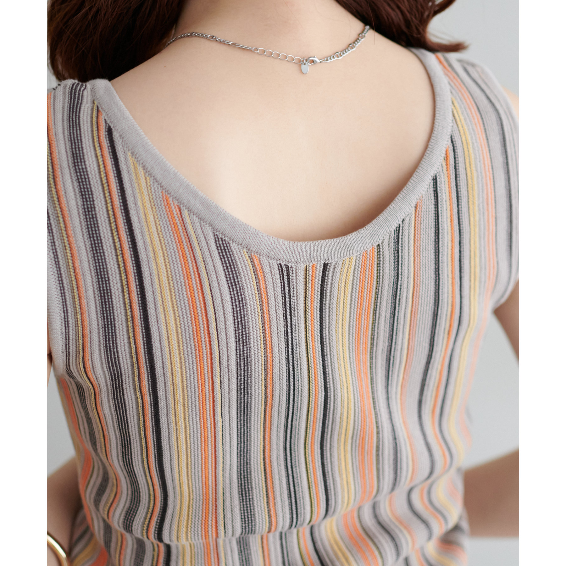 【WEB限定】前後2WAYマルチストライプノースリーブ