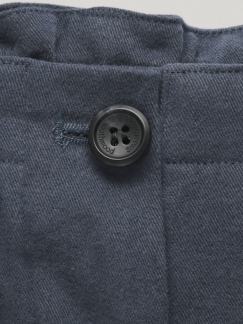 これはナスカーゴパンツで、居心地の良い質感と官能的なディテールが特徴です。100%丈夫でふわふわとしたコットン素材で、ほのかなピーチ色の質感があり暖かみがあります。柔らかくブラッシングされたコットン生地が快適なフィット感を提供します。レッグラインはまっすぐなシルエットでゆったりと落ち、着用するとスリムに見え、脚のラインが長く見えます。太ももや膝のカットラインはパンツの構造をより自然に表現し、サイドのアウトポケットは一般的なカーゴポケットとは異なり平らでボリューム感があり、Smoothmood独自のミニマリストムードを維持しつつ、左ポケット上部もミニマリズムの雰囲気を保っています。適切に調整でき、Smoothmoodのロゴが刻まれたボタンは、自然で官能的な控えめでマットなネイビーカラーで丁寧に仕上げられており、冬の衣装にフレッシュさを加えます。コットン100%コットン、100%ピッチテクスチャー、ストレートフィットの切込み、ディテールアウトポケット、ウエストストッパーディテール、スムームードロゴボタン、スムームードイタリックロゴ刺繍