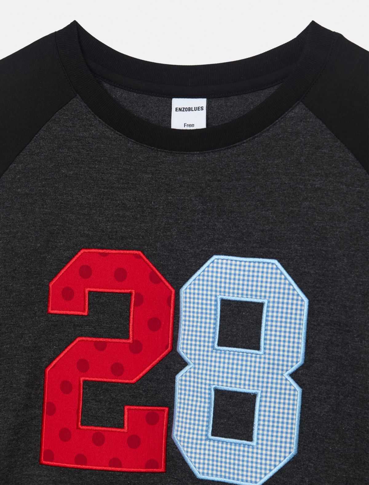 -ラグランスリーブ - ネックラインリップ仕上げパッチ