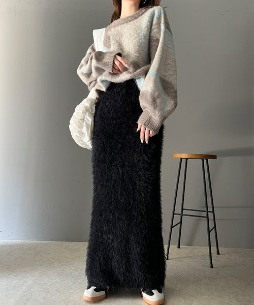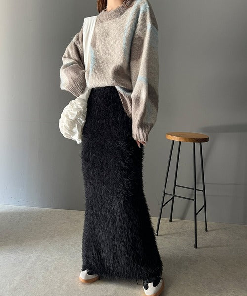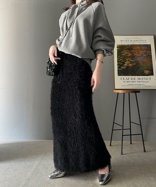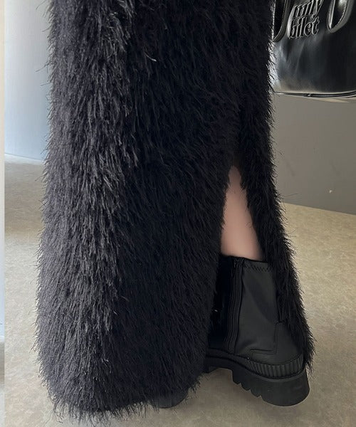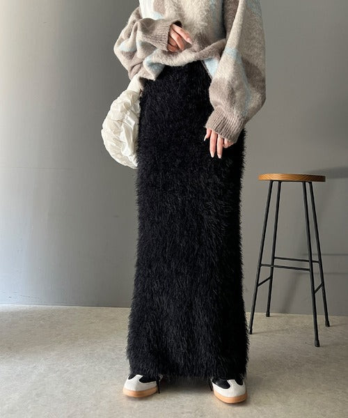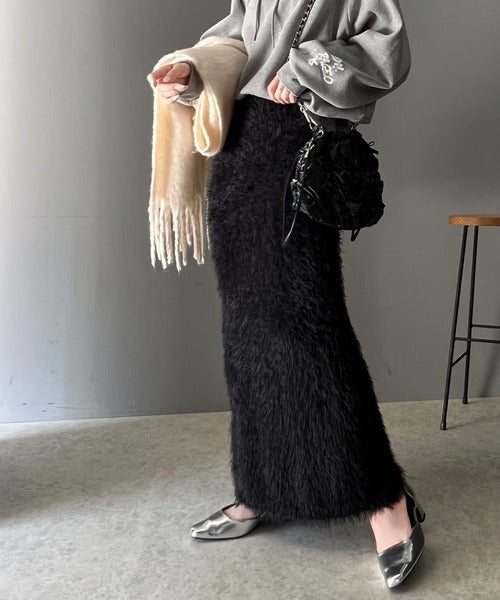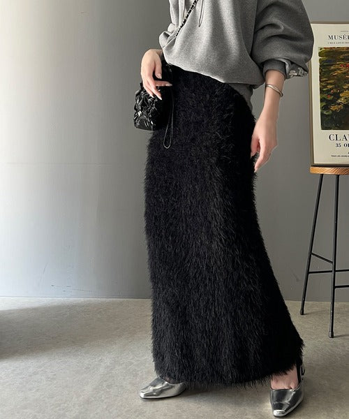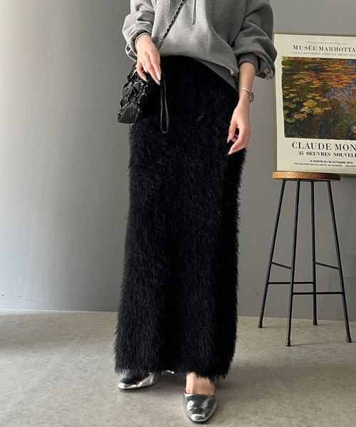 これ一枚でトレンド満載。シャギーファータイトロングスカート ce0940206