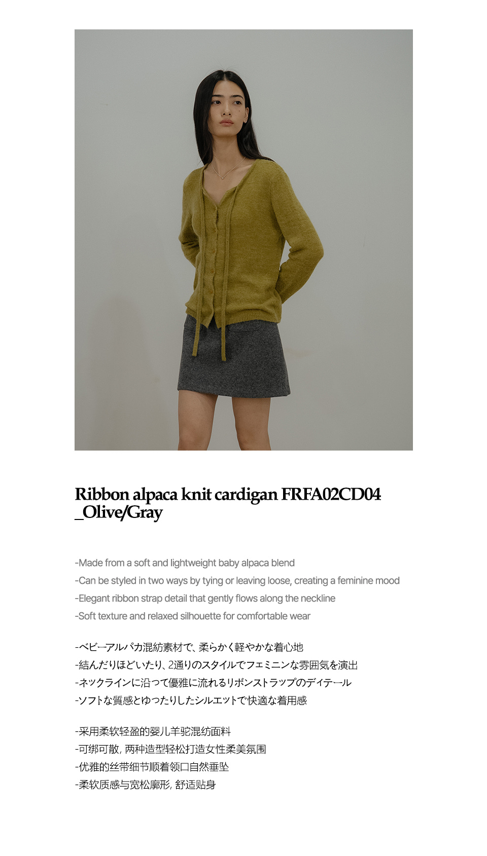 Ribbon alpaca knit cardigan FRFA02CD04_Olive