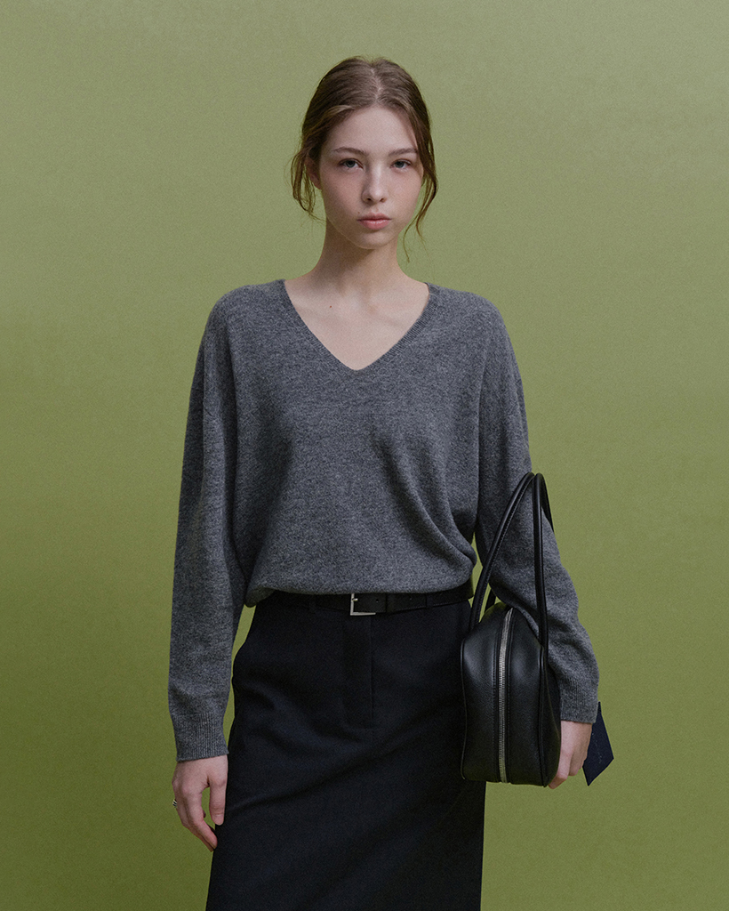 [yu x For Your Eyes Only] Lei Wool V-neck Knit (Charcoal)
