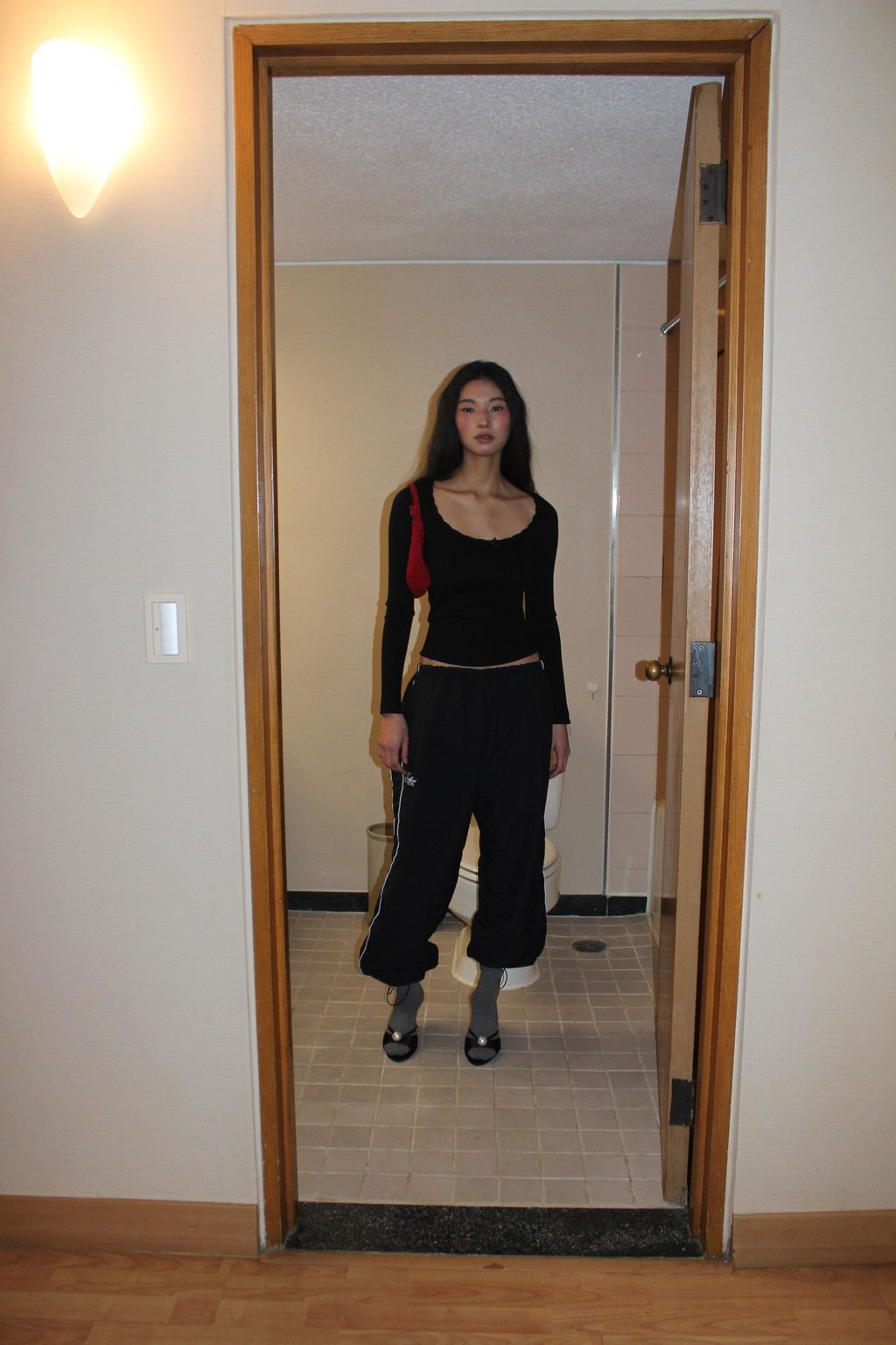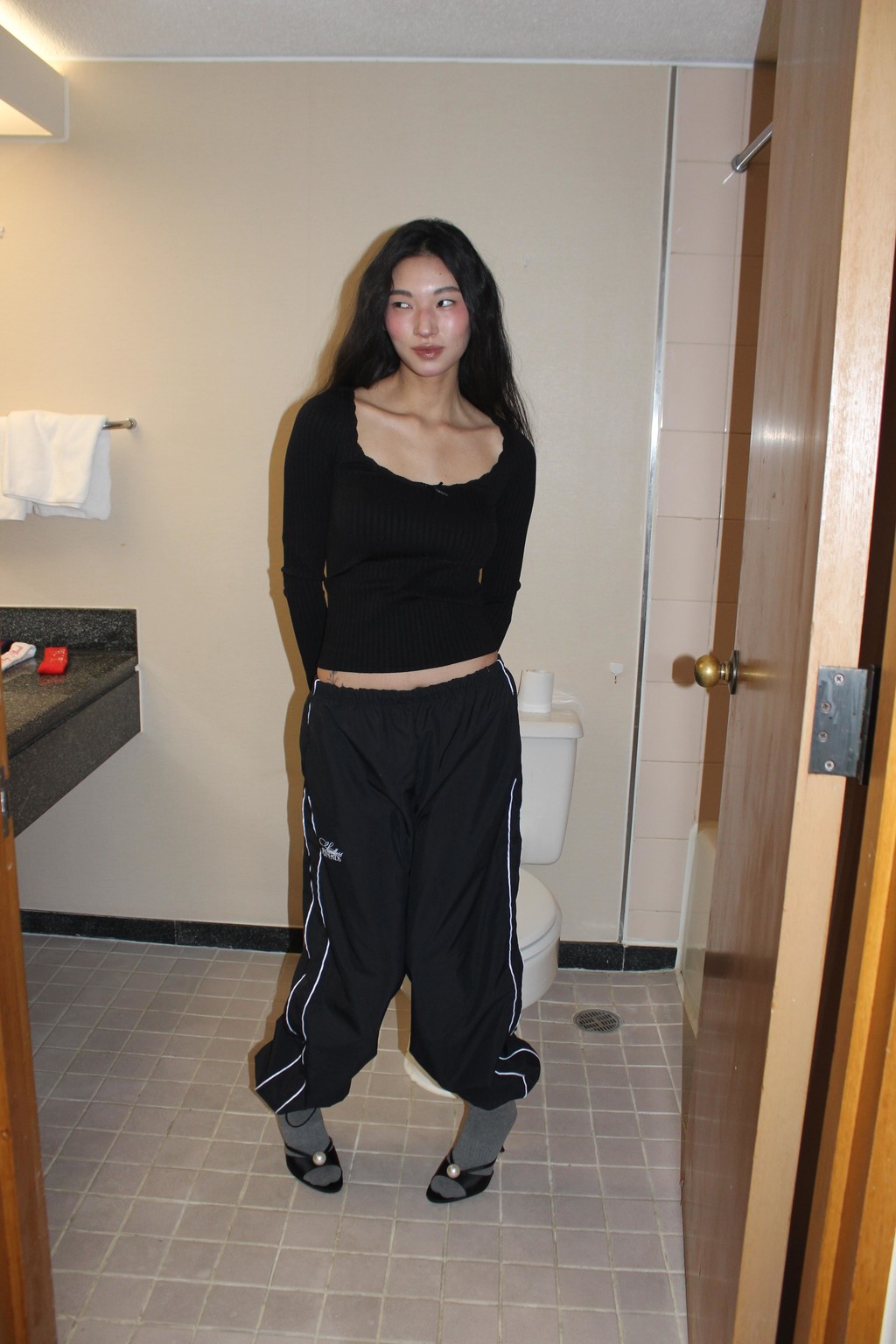 80s Retro Fit Nylon Pants(black)