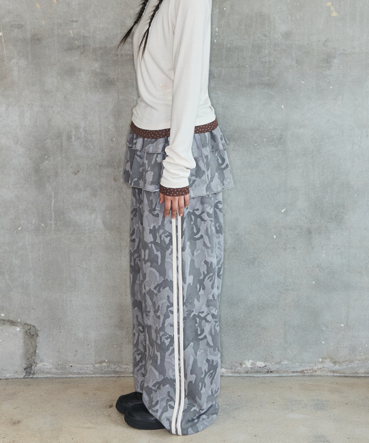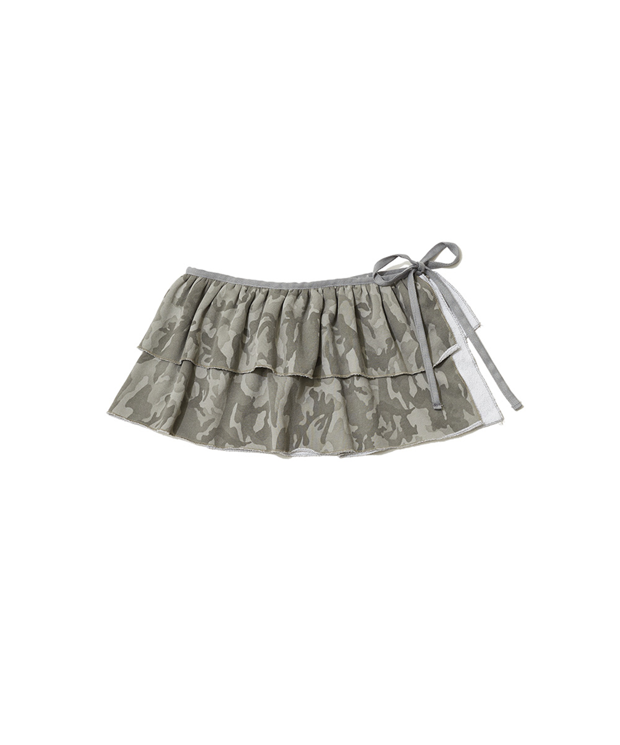 CAMO LAYERED WRAP SHORT SKIRT - KHAKI