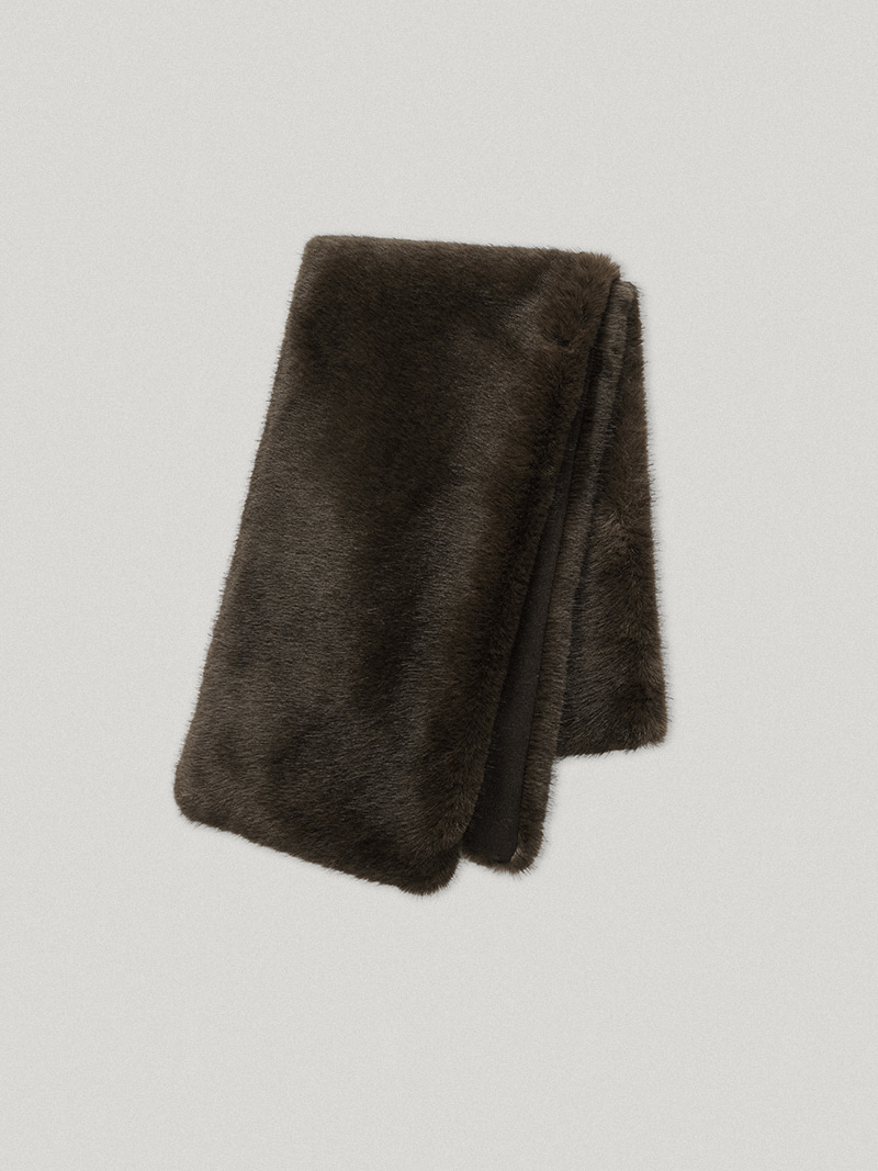 雪が降る寒い冬でも暖かく包み込んでくれるミア ファー スカーフです。とても柔らかく、ふっくらとしたボリュームのあるファー素材で仕上げたミニマルデザインのマフラーアイテムで、上質なポリエステル素材で作られています。自然な艶が流れるファーの質感が素晴らしく、触れるだけで気分がふわっとします。スカーフの内側にはウールとポリエステルをブレンドしたドライな触感の素材を当て、着用した時にほどけにくく安定して着用できるよう、丁寧に仕上げました。すべてのアウトフィットに、ふんわり暖かなポイントとして合わせてください。彩度を抑えた落ち着いたグレイッシュブラウンカラーです。ㆍPolyester 100% (Lining - Wool 30% Polyester 70%)ㆍトーンオントーンライニング