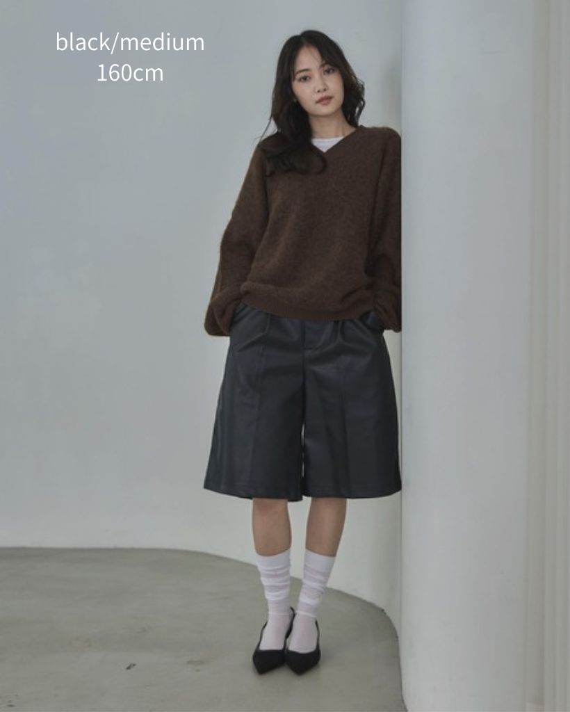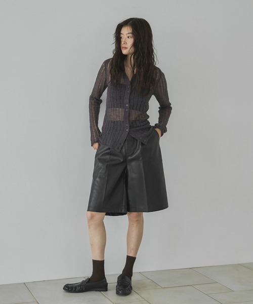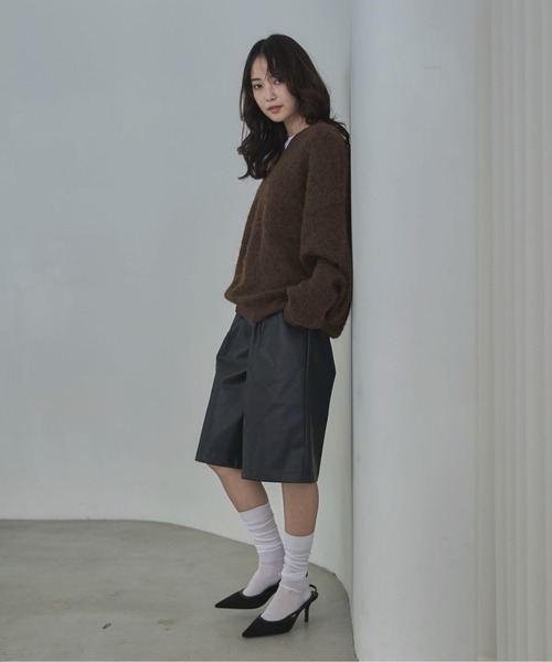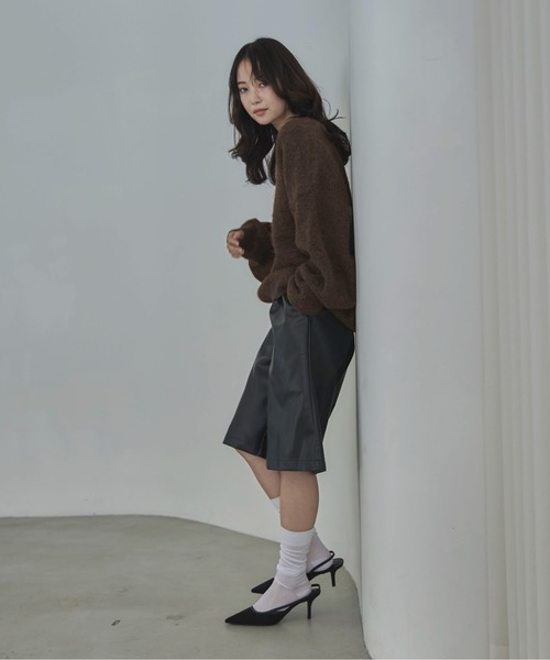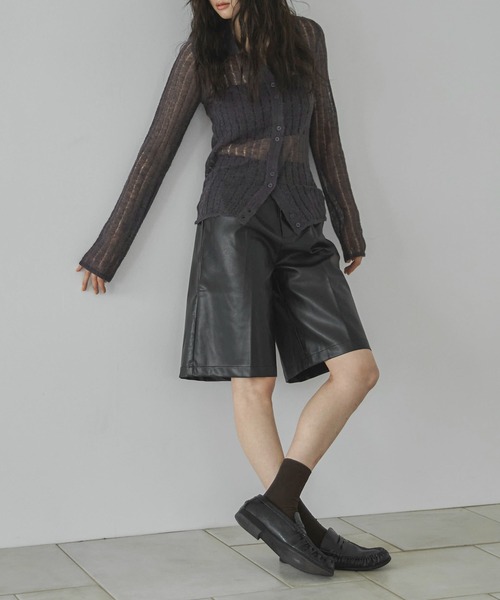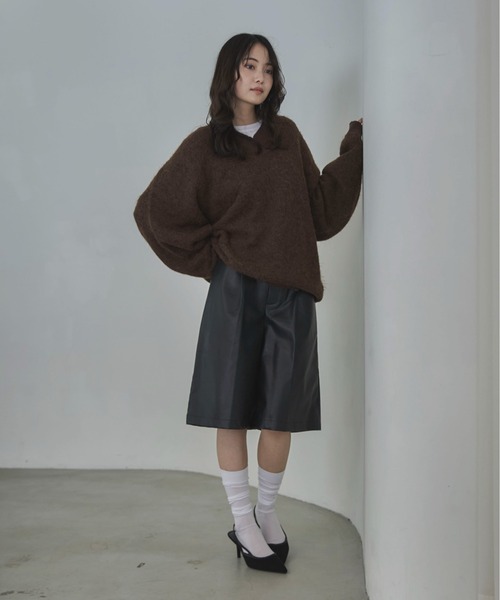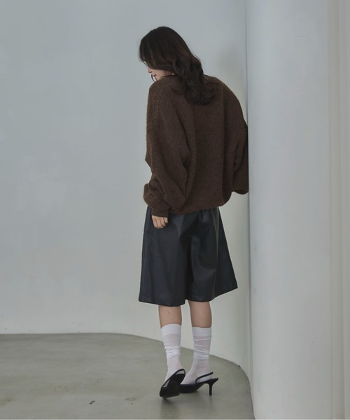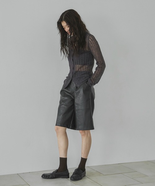 大人っぽい着こなしが叶うフェイクレザー生地を使用し、着丈も膝あたりとやや長めなデザインに◎