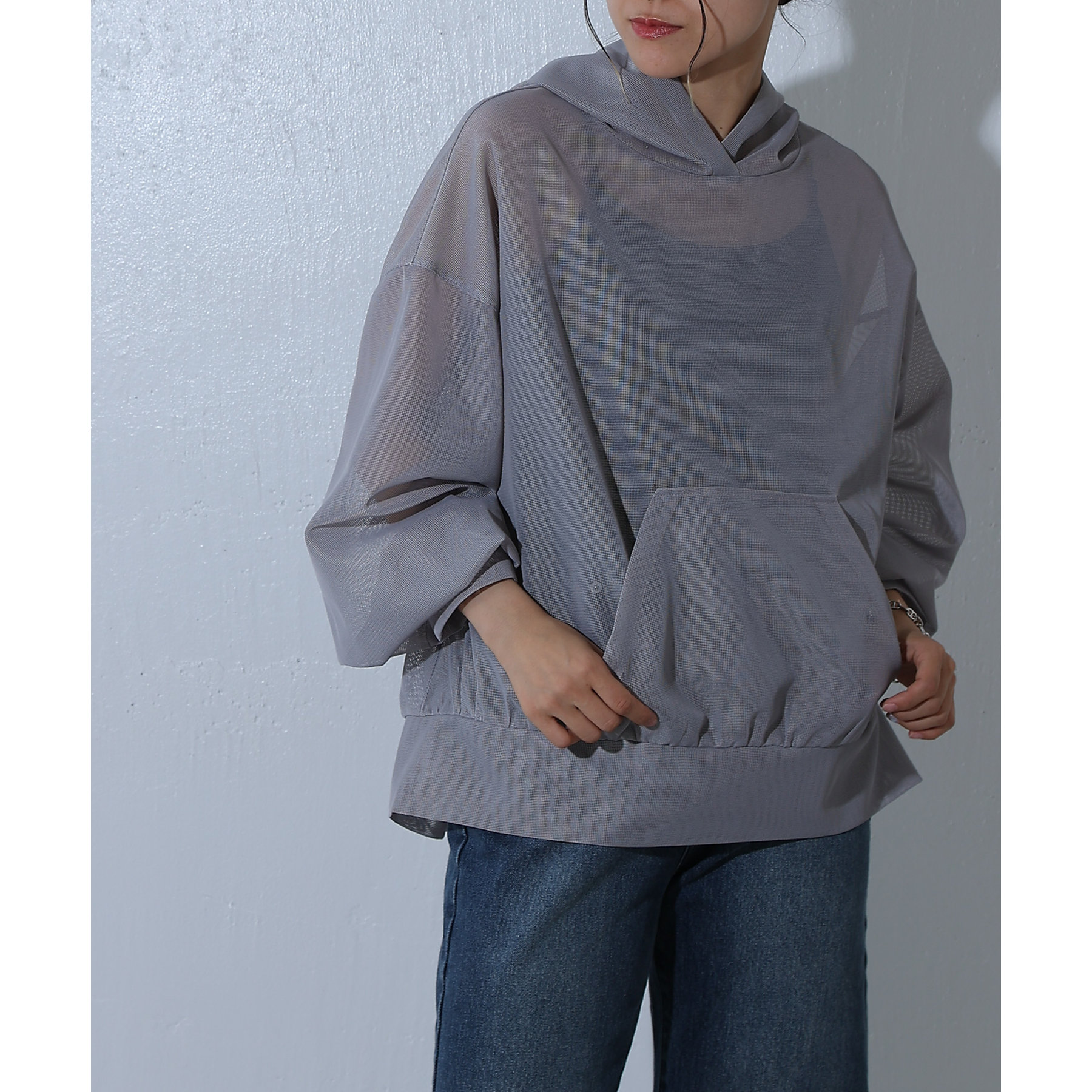 【一枚で涼しげな印象のメッシュパーカー】