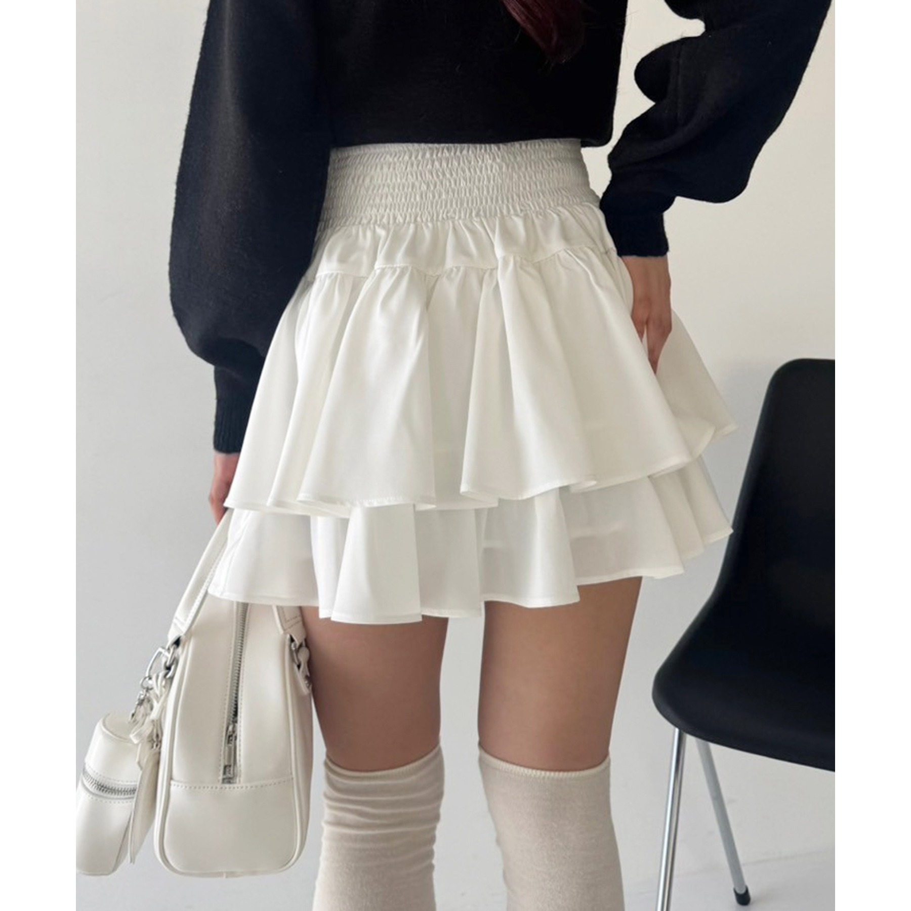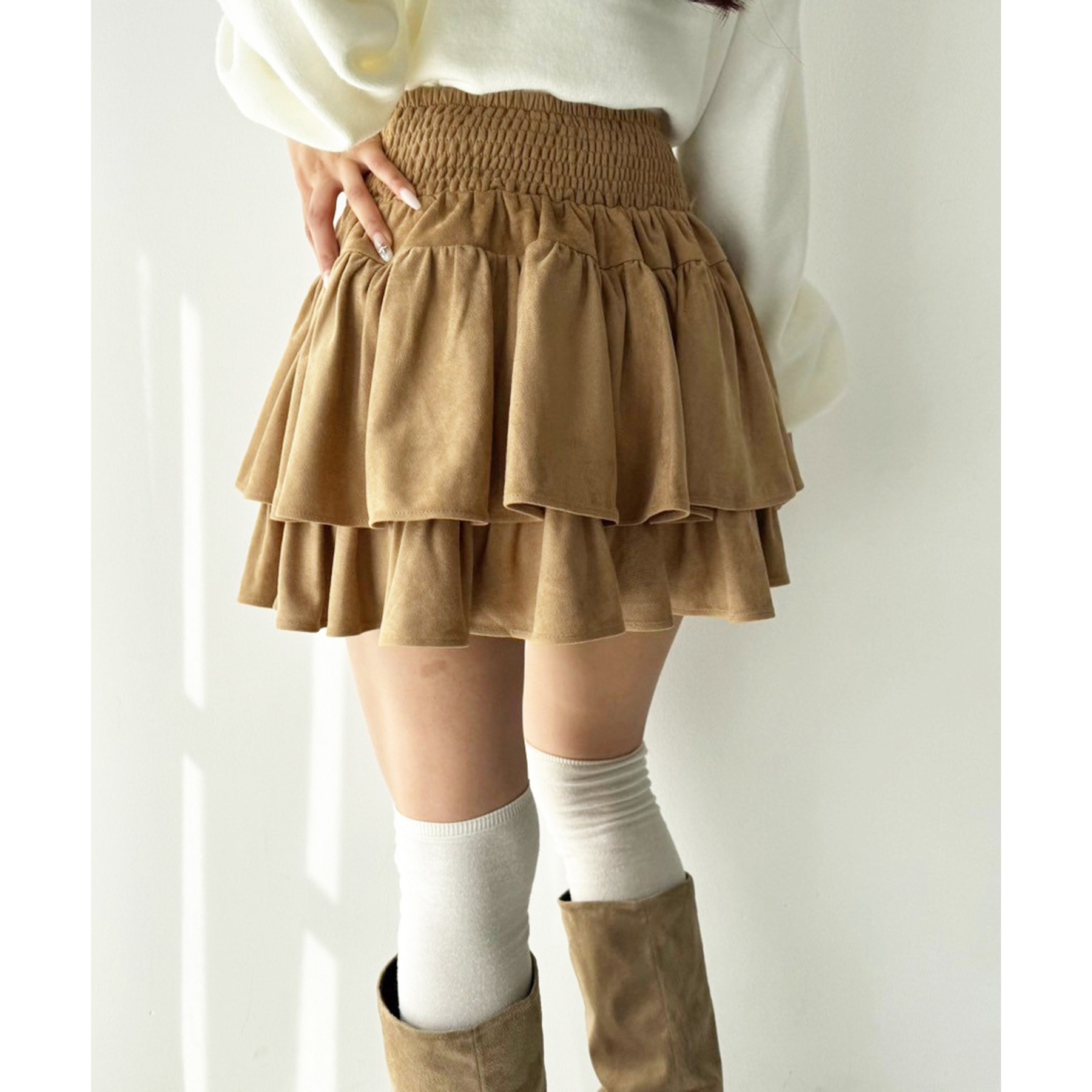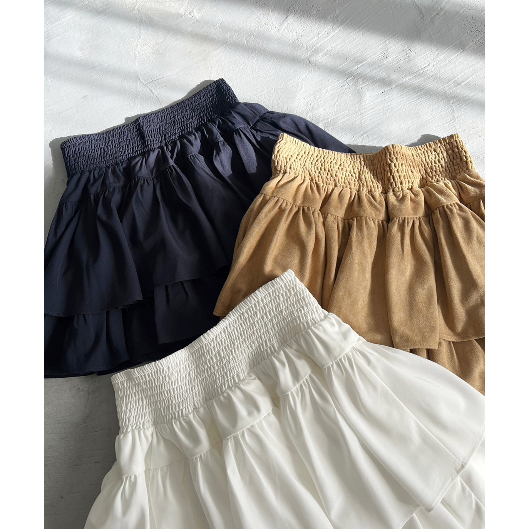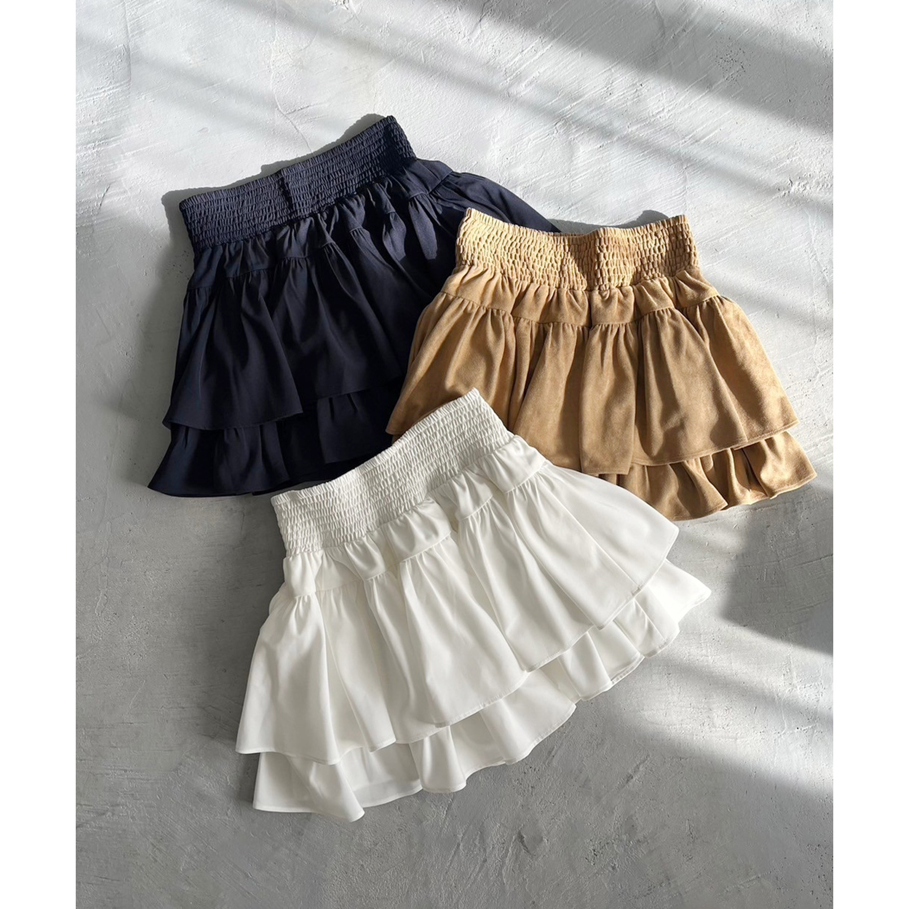 ふわっと広がるフリルティアードがかわいい韓国風スカート