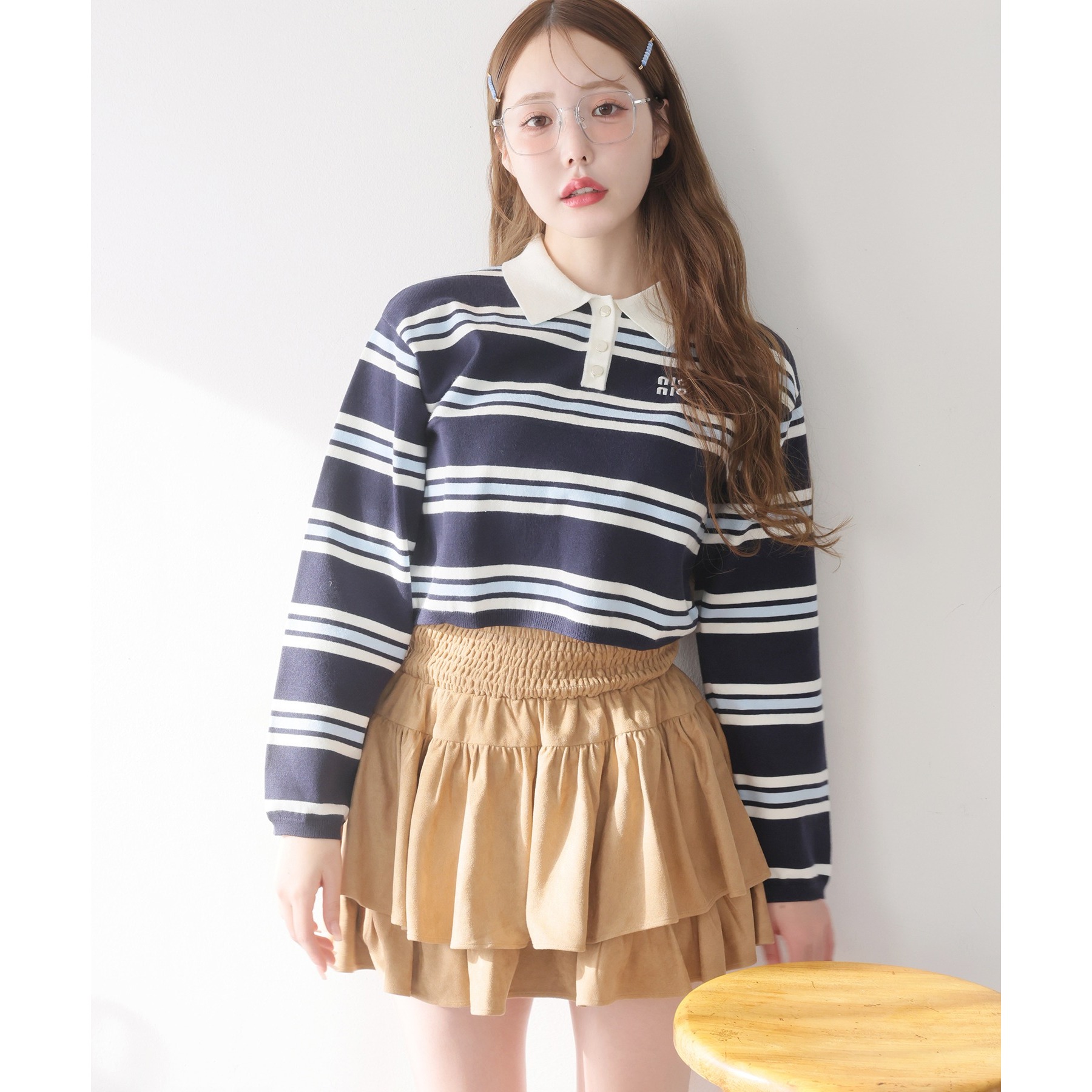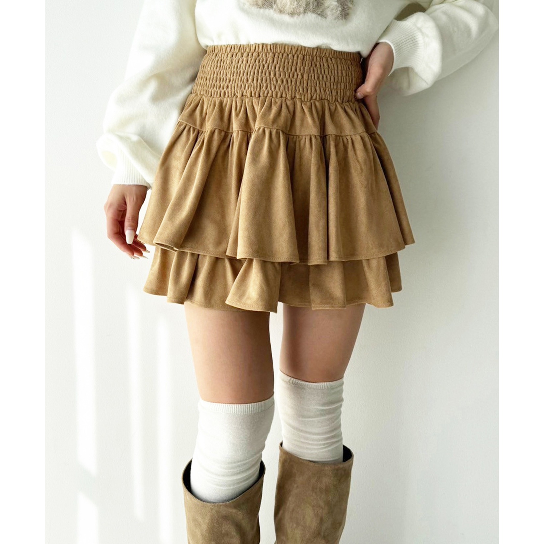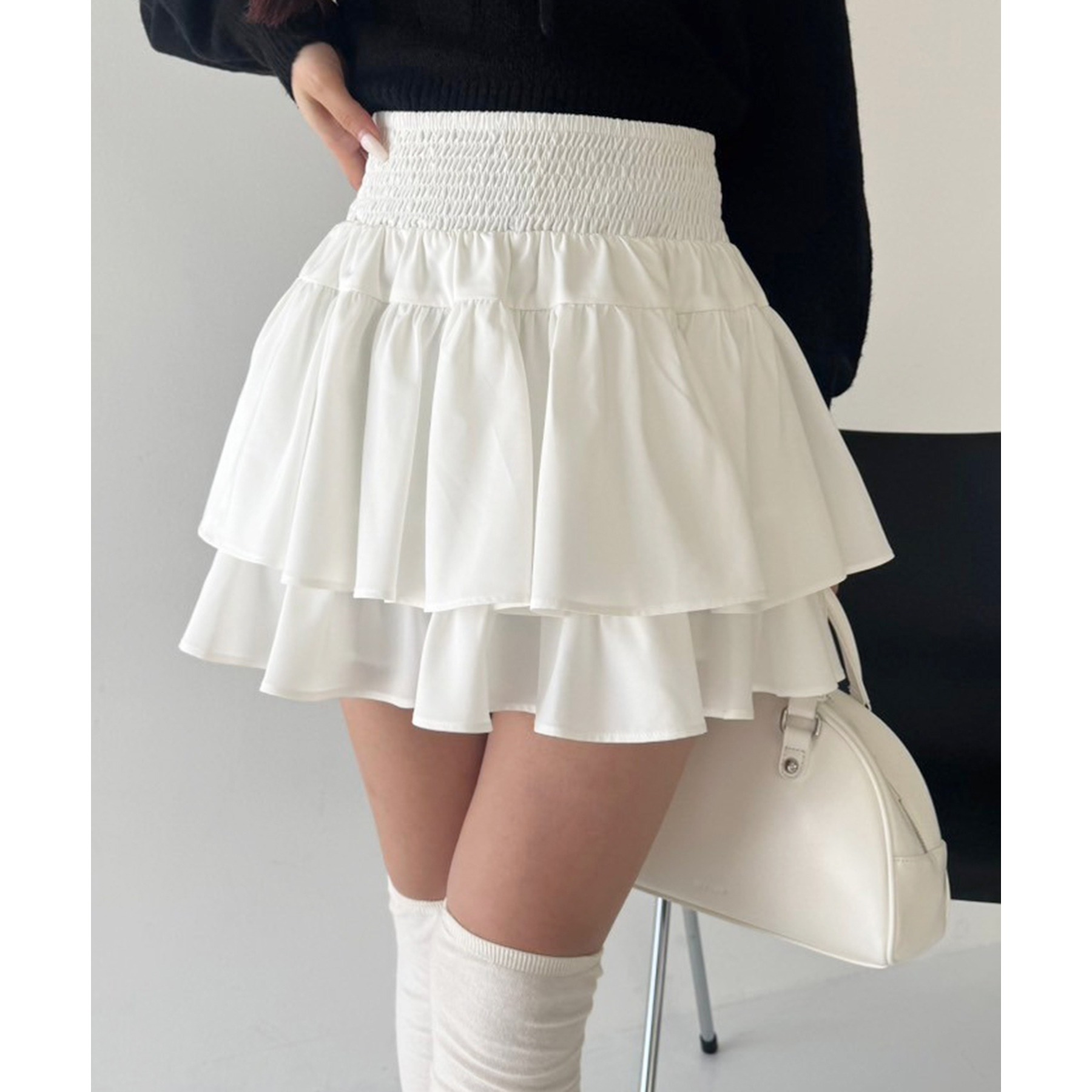ふわっと広がるフリルティアードがかわいい韓国風スカート
