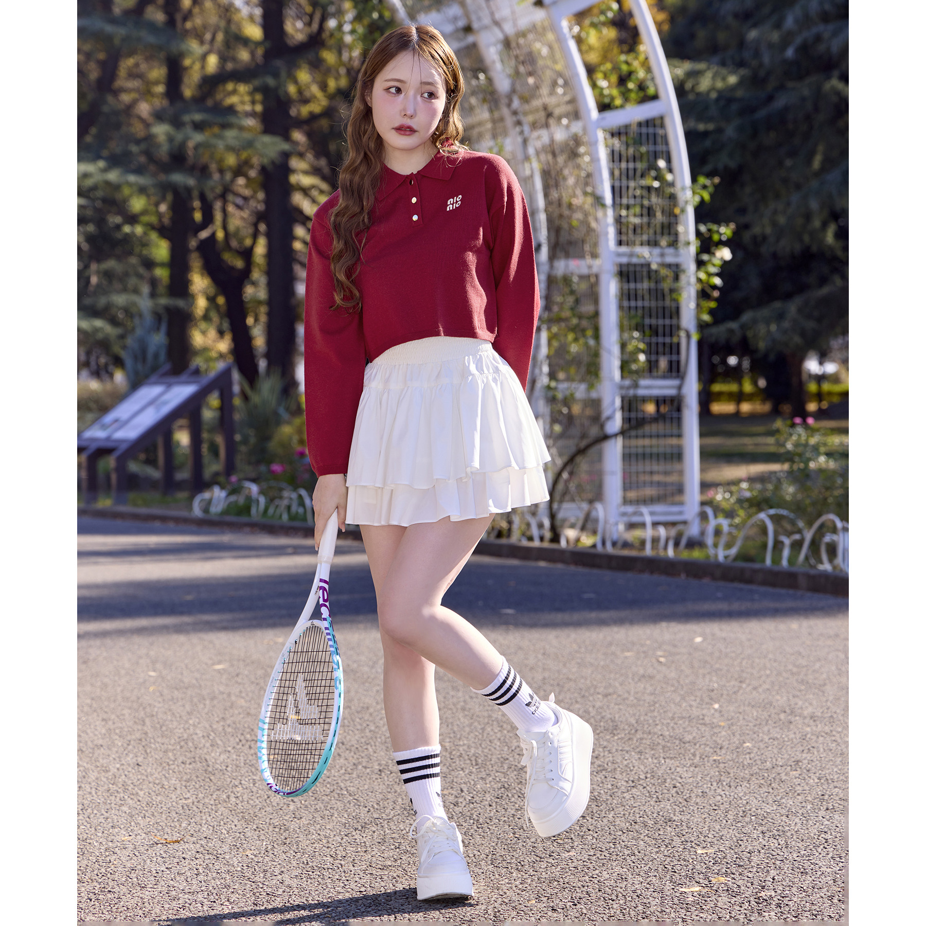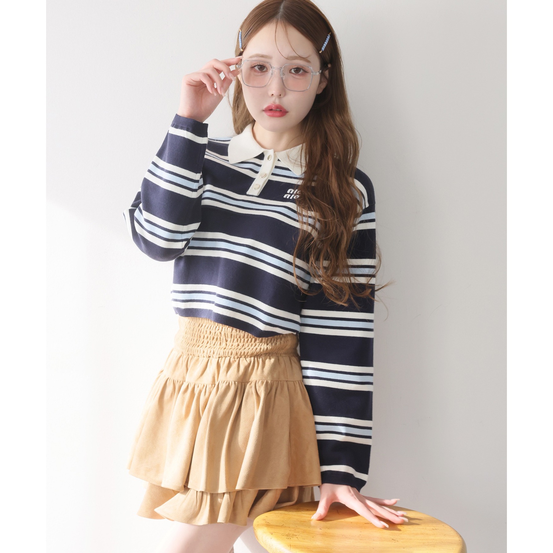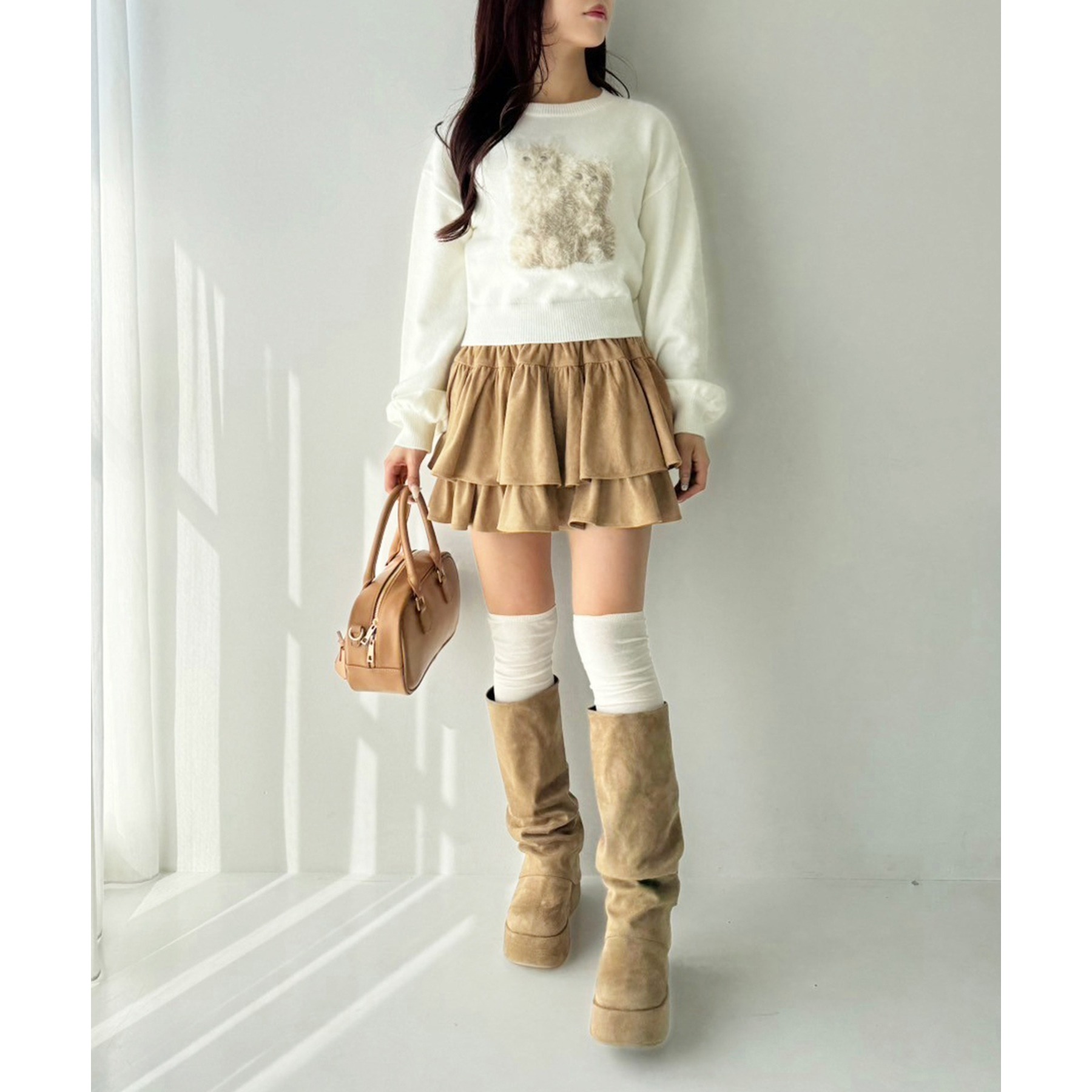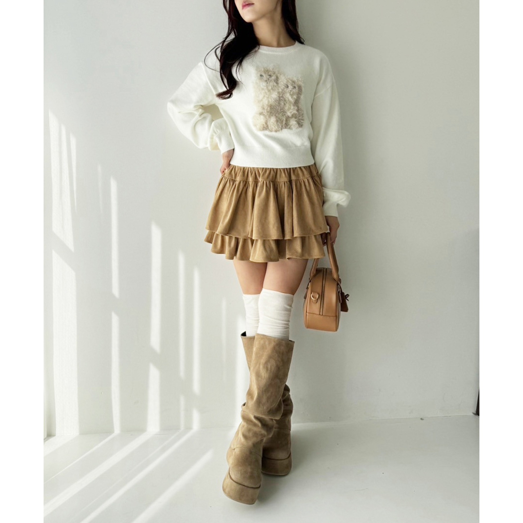 ふわっと広がるフリルティアードがかわいい韓国風スカート