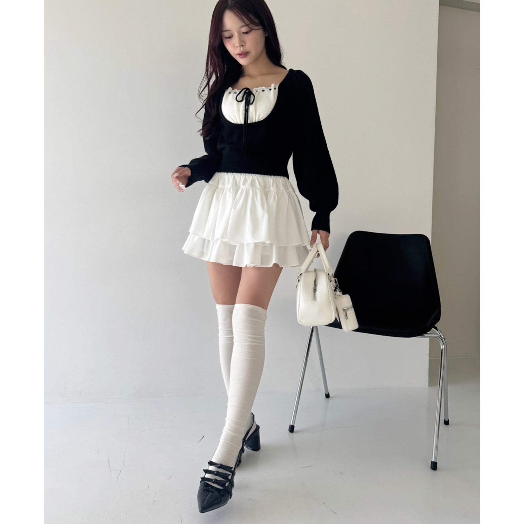 コンパクトなトップスと合わせるとバレエコアスタイルに。