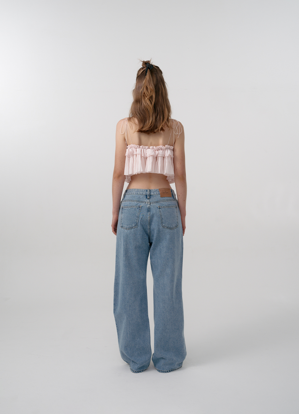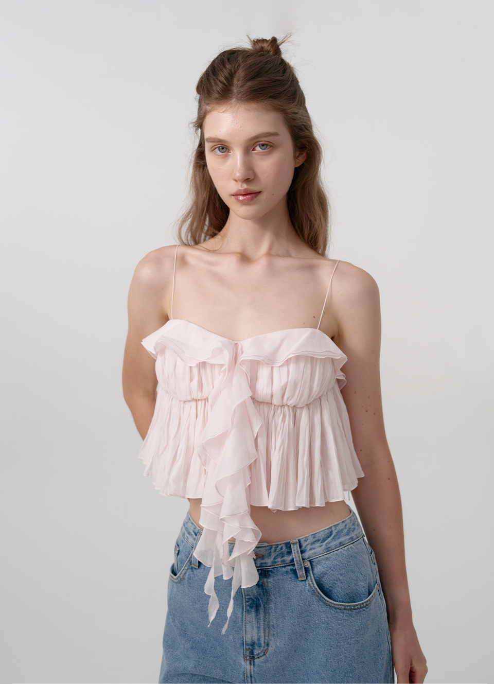 ダブルレイヤードボディ、クロップなキビ感のスリーブレスブラウスタイプ