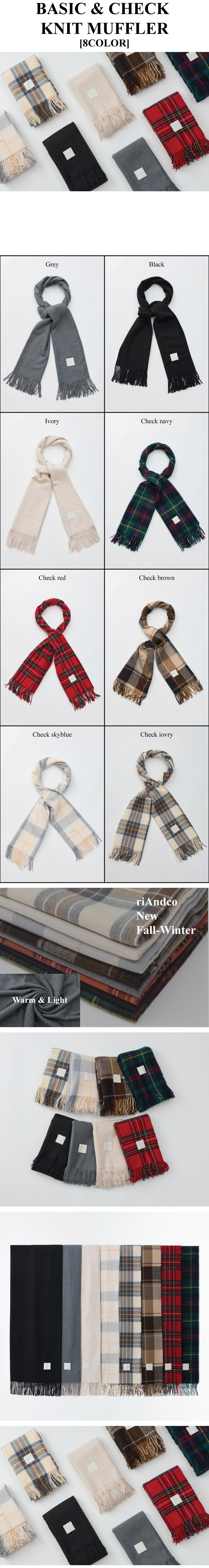 Unisex/BASIC CHECK KNIT MUFFLER - 8COLOR