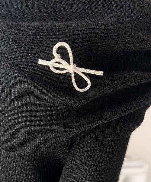 取り外し可能なリボンブローチが付属しており、シンプルにも華やかにもアレンジ可能な一枚です◎