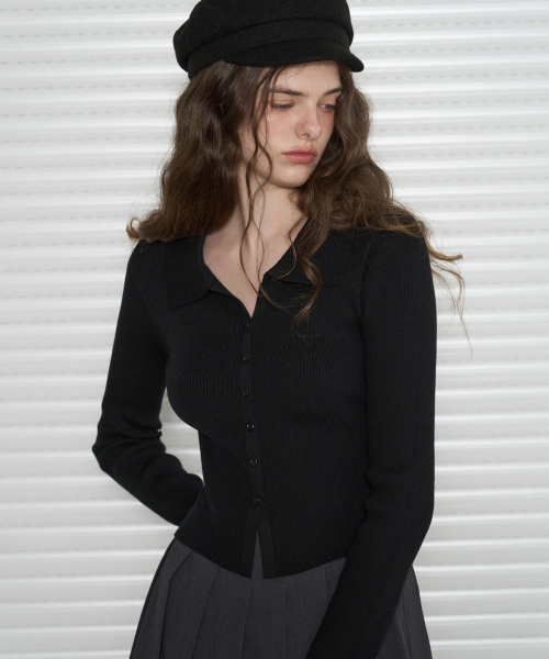 Slim Fit V Neck Collar Knit Cardigan [BLACK]