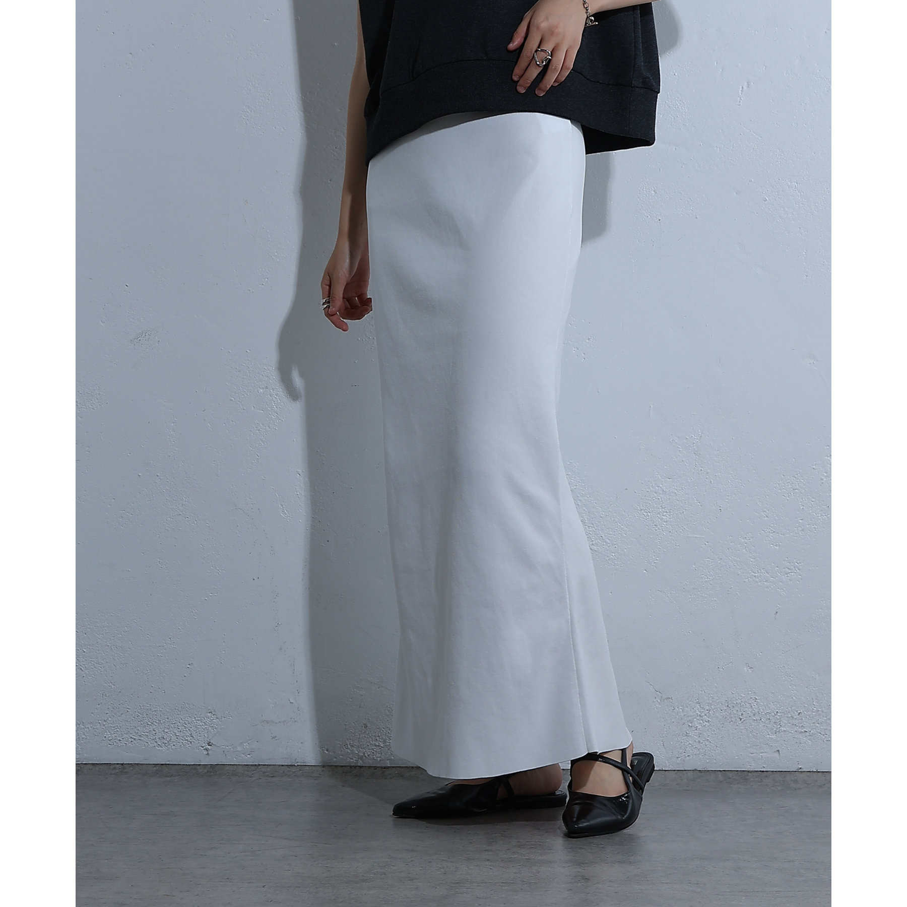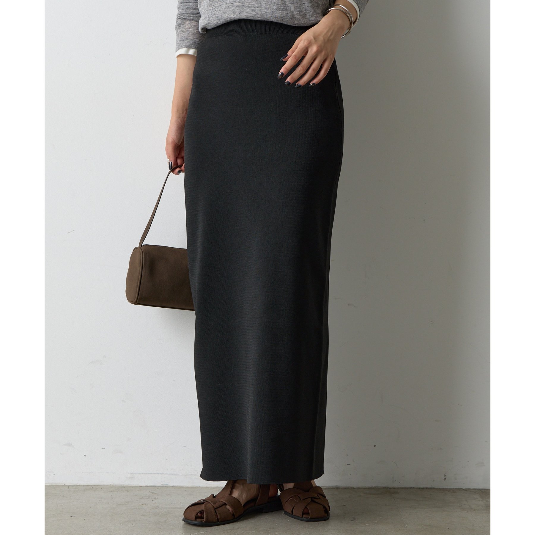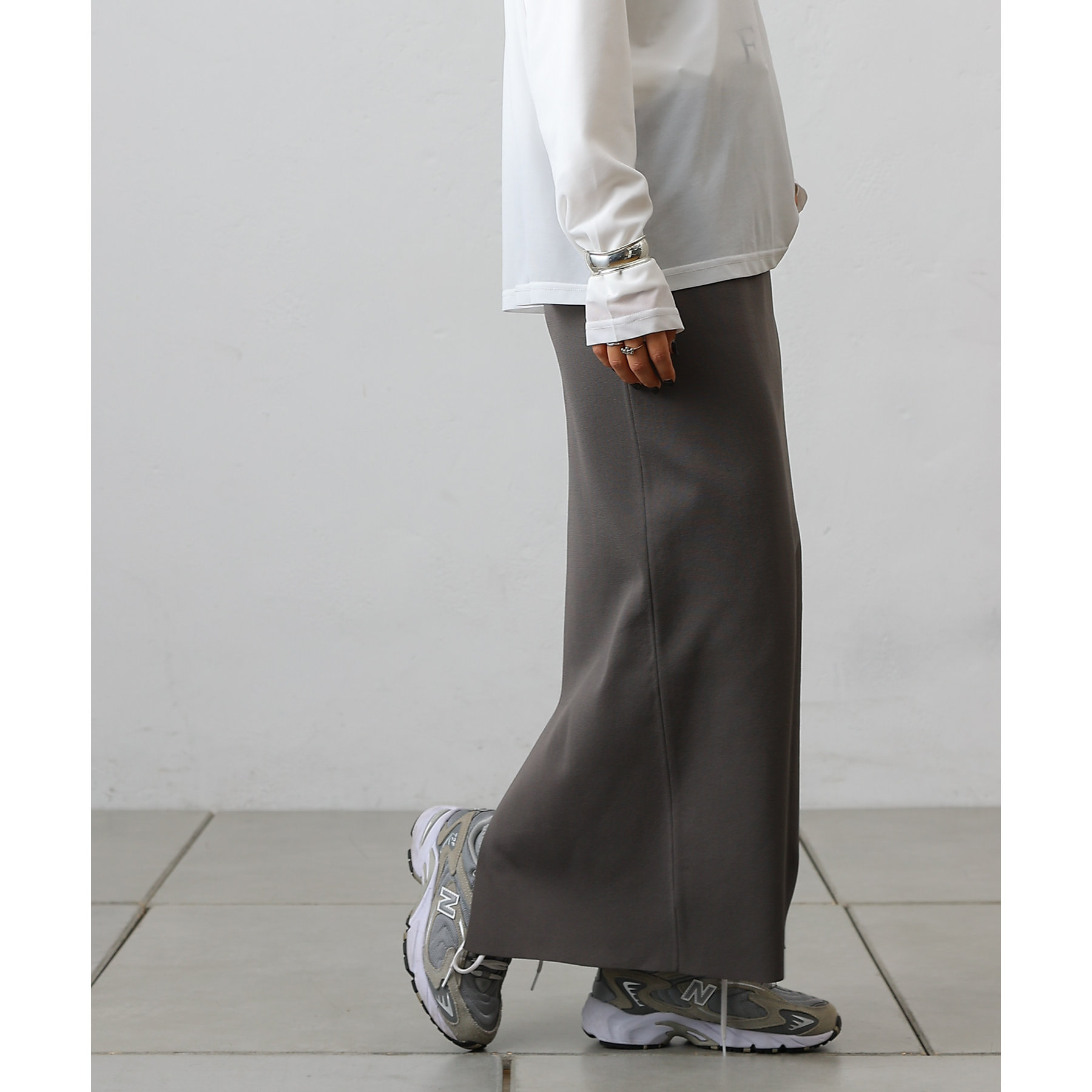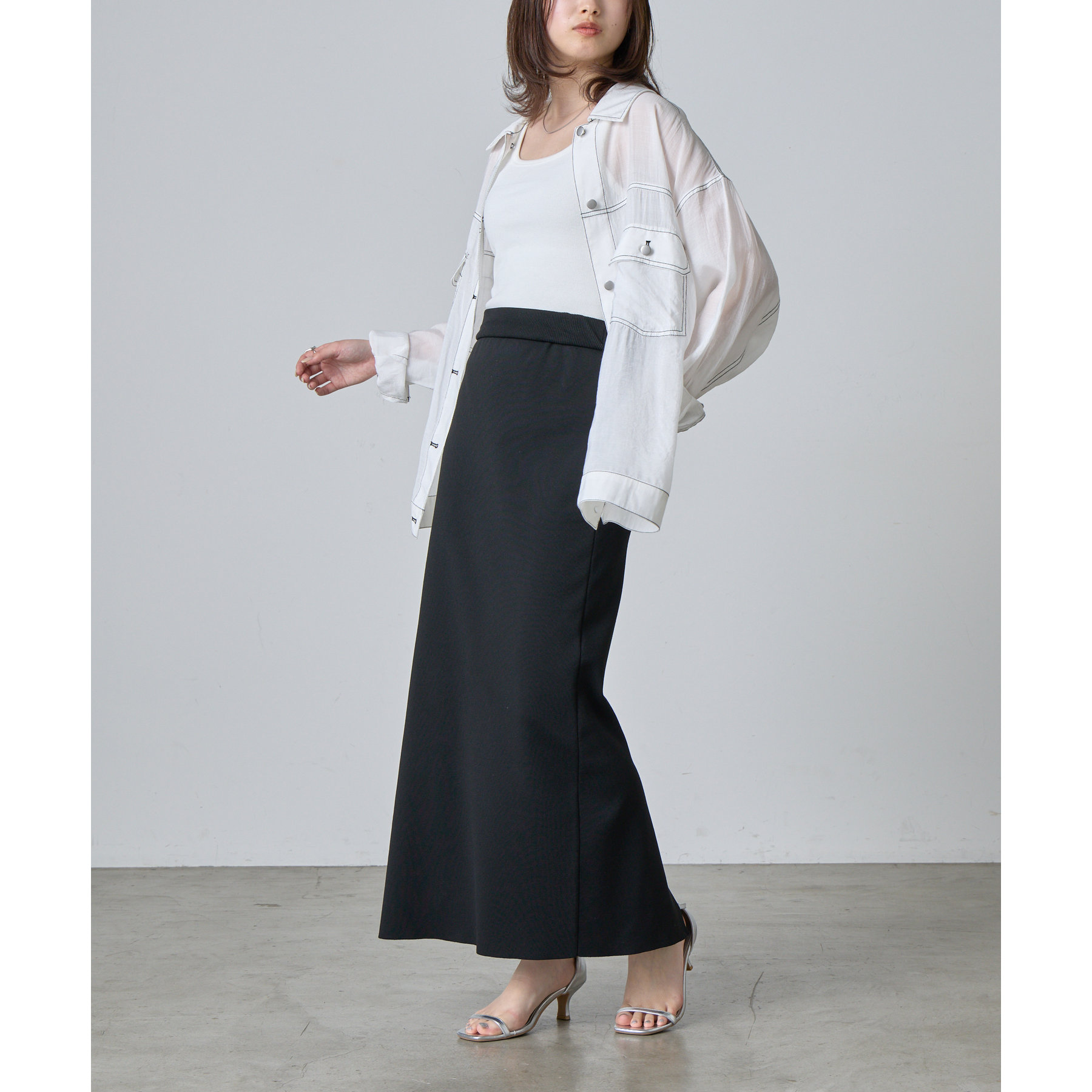 【ポリエステルの軽量素材で編まれたペンシルスカート】