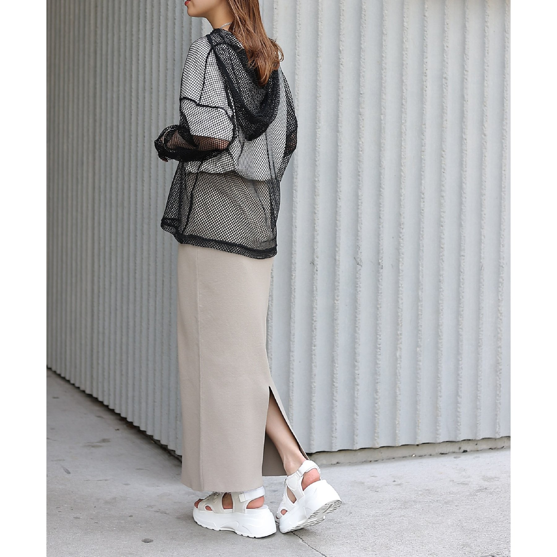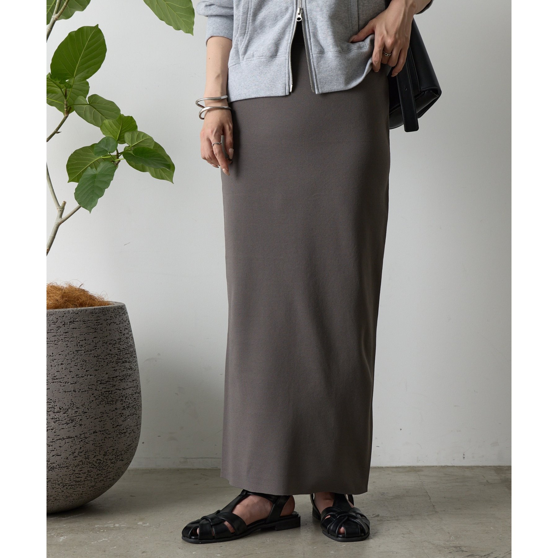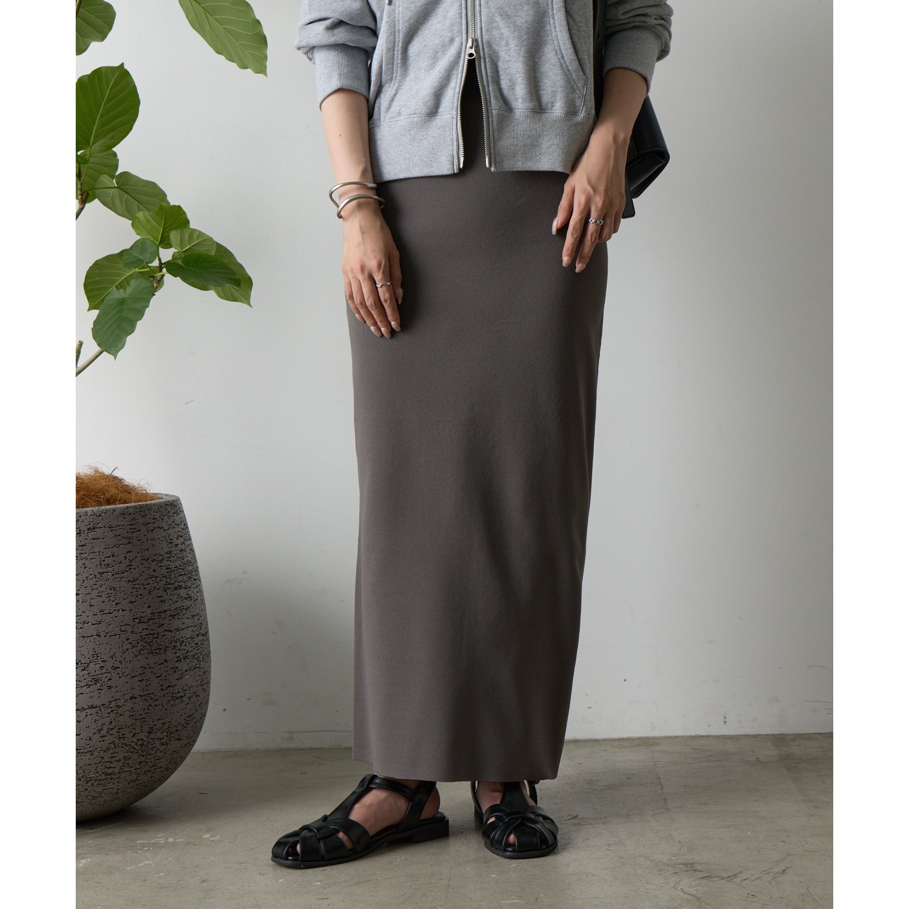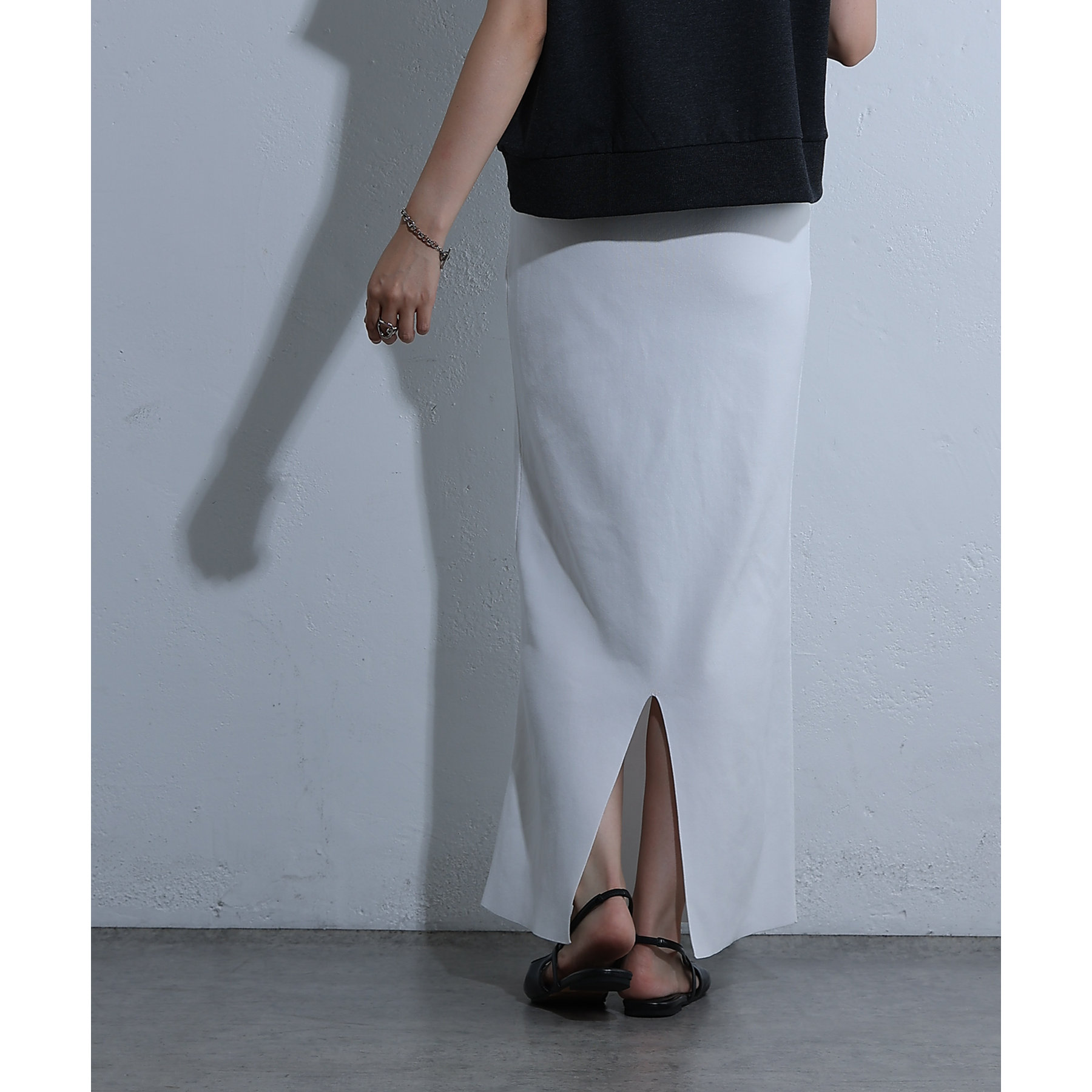 【ポリエステルの軽量素材で編まれたペンシルスカート】