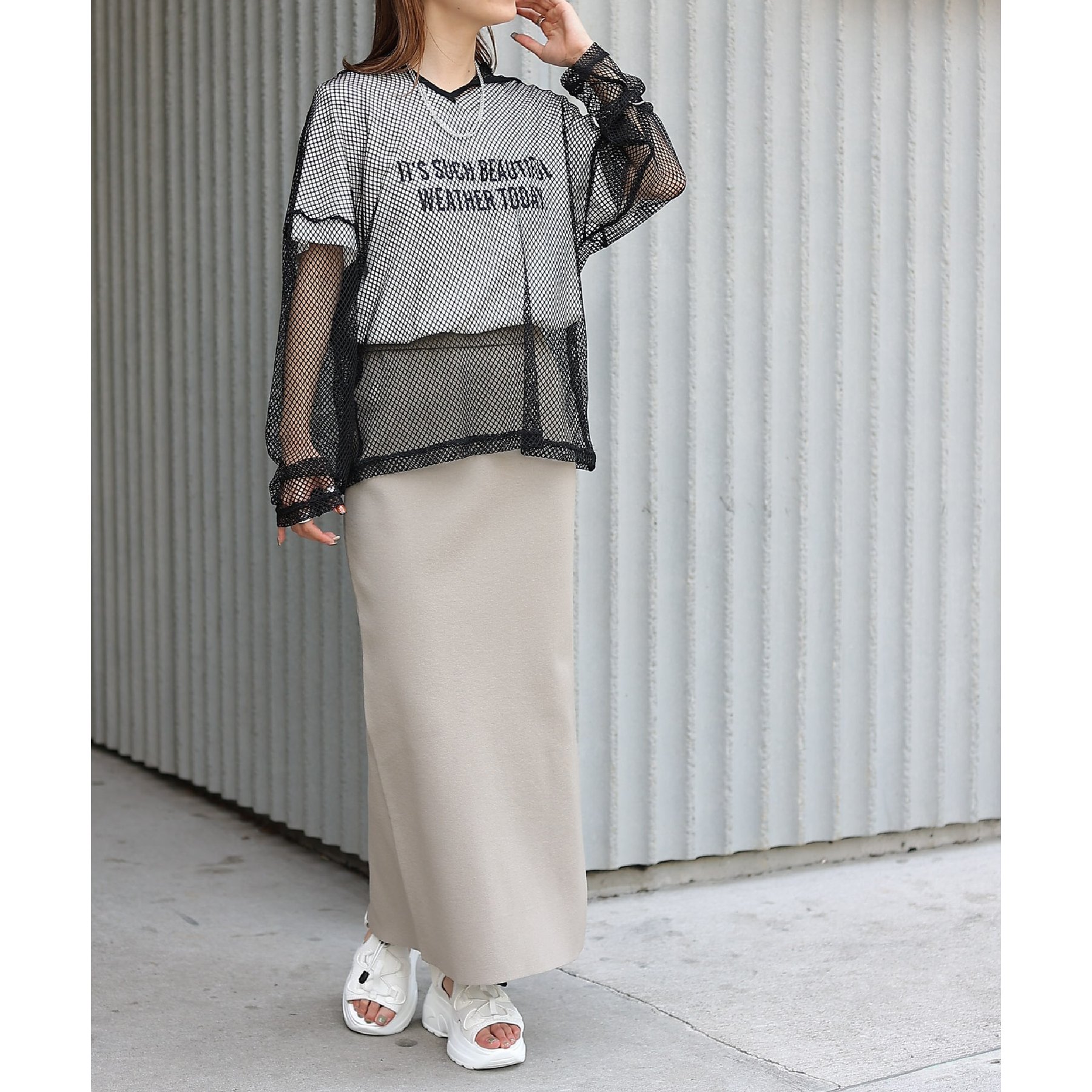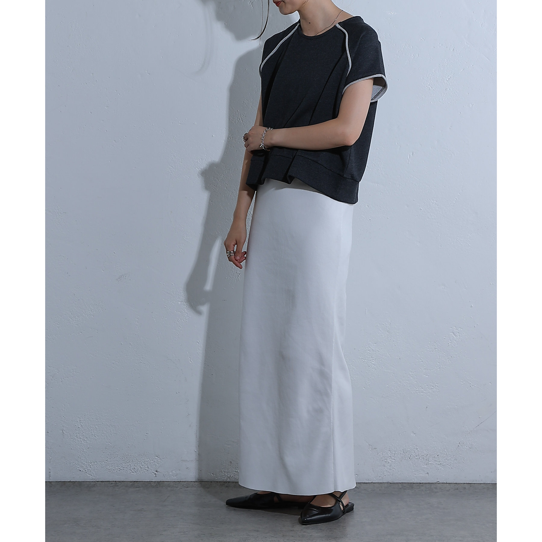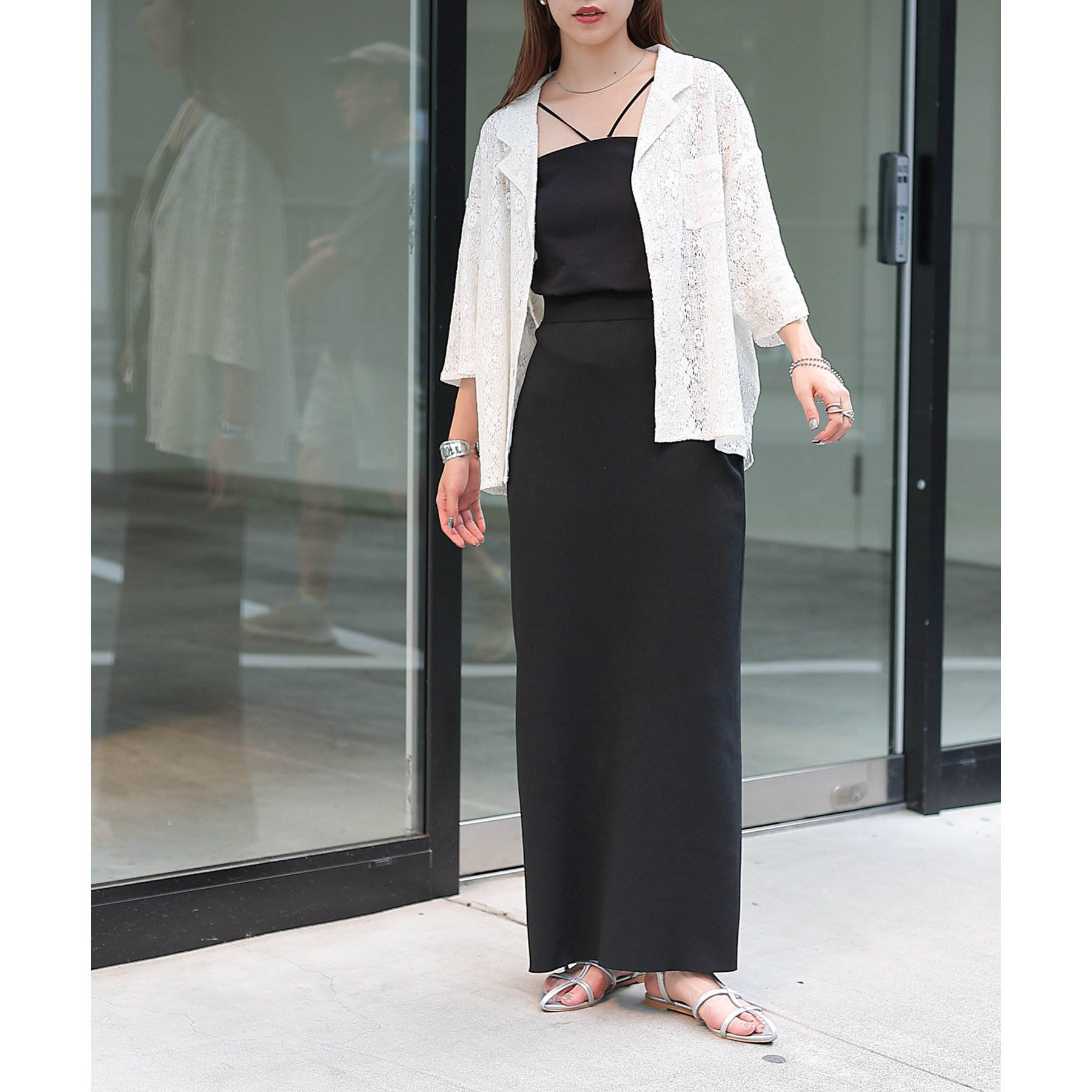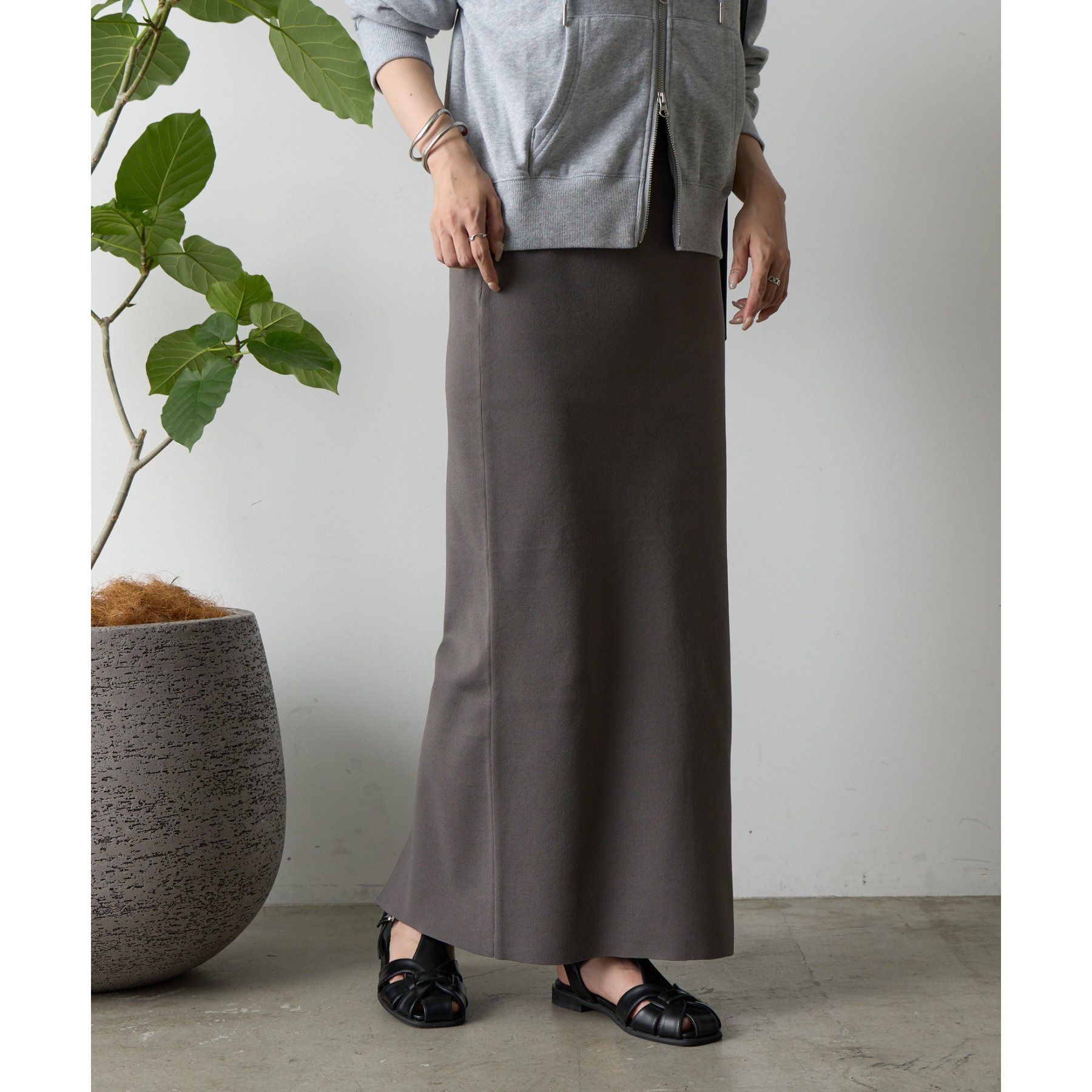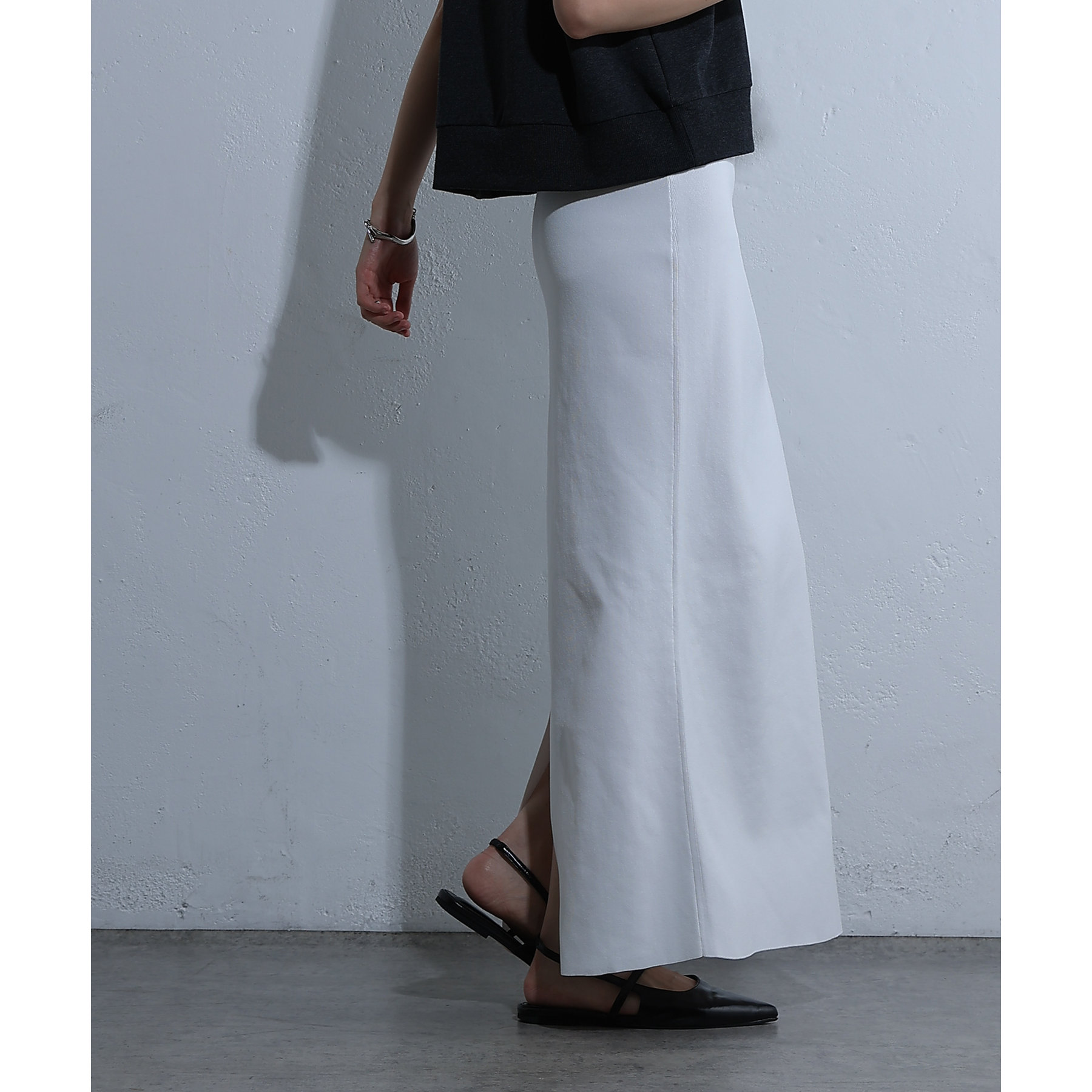 【ポリエステルの軽量素材で編まれたペンシルスカート】