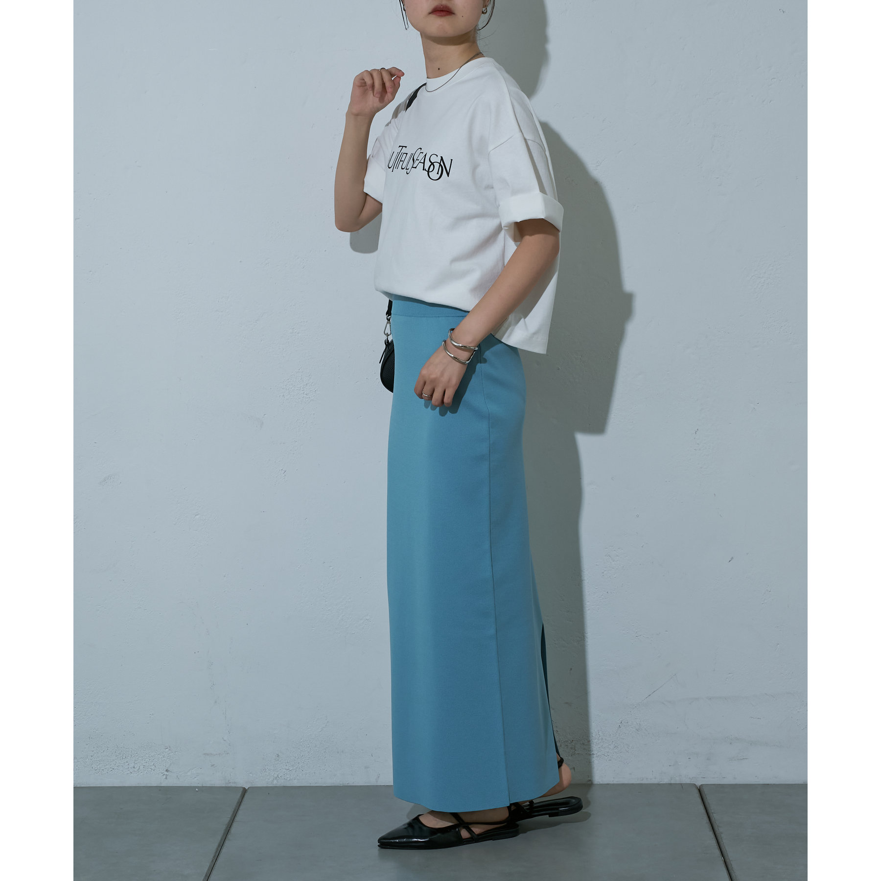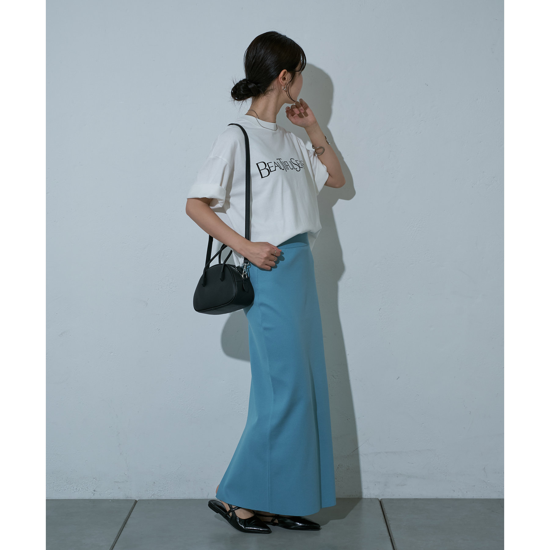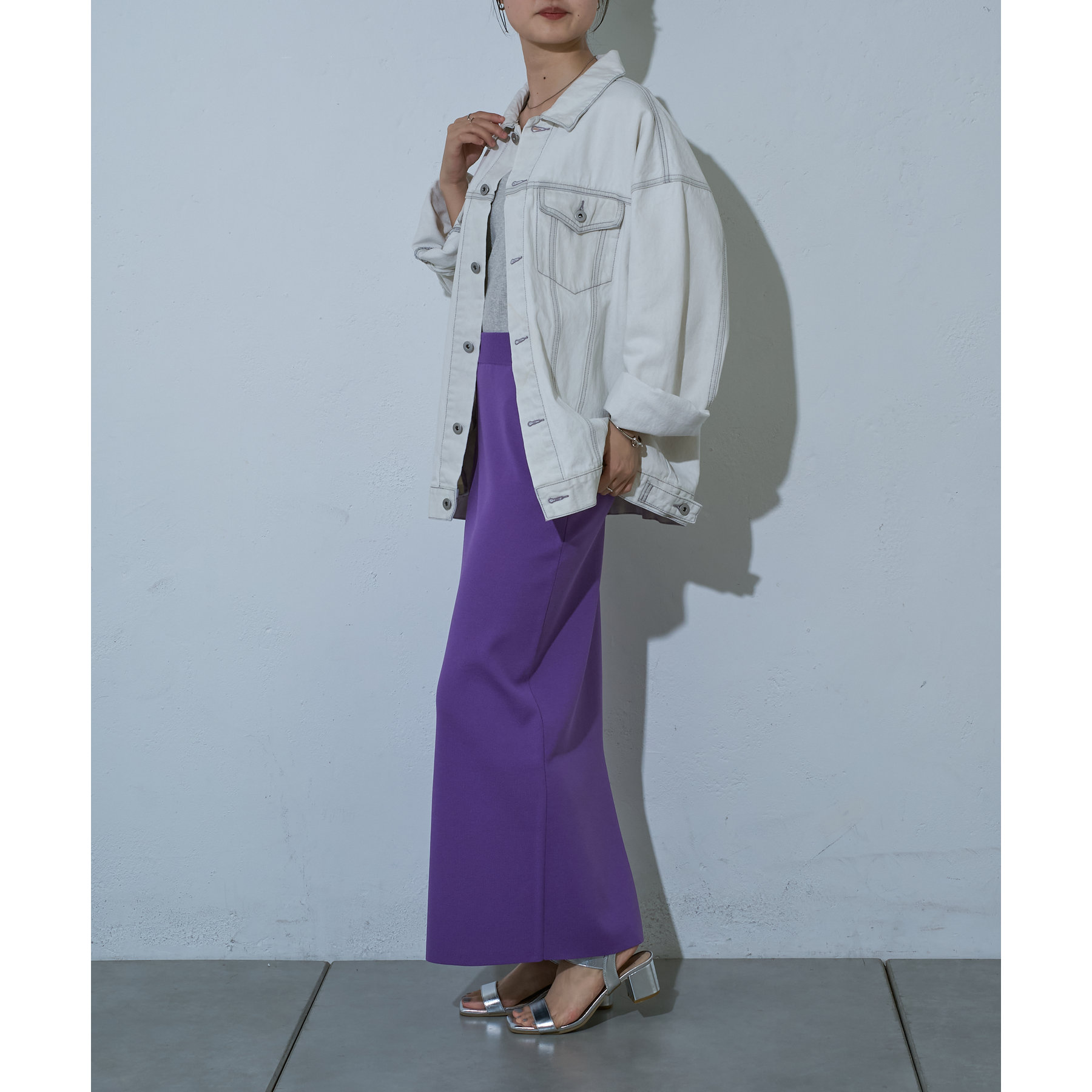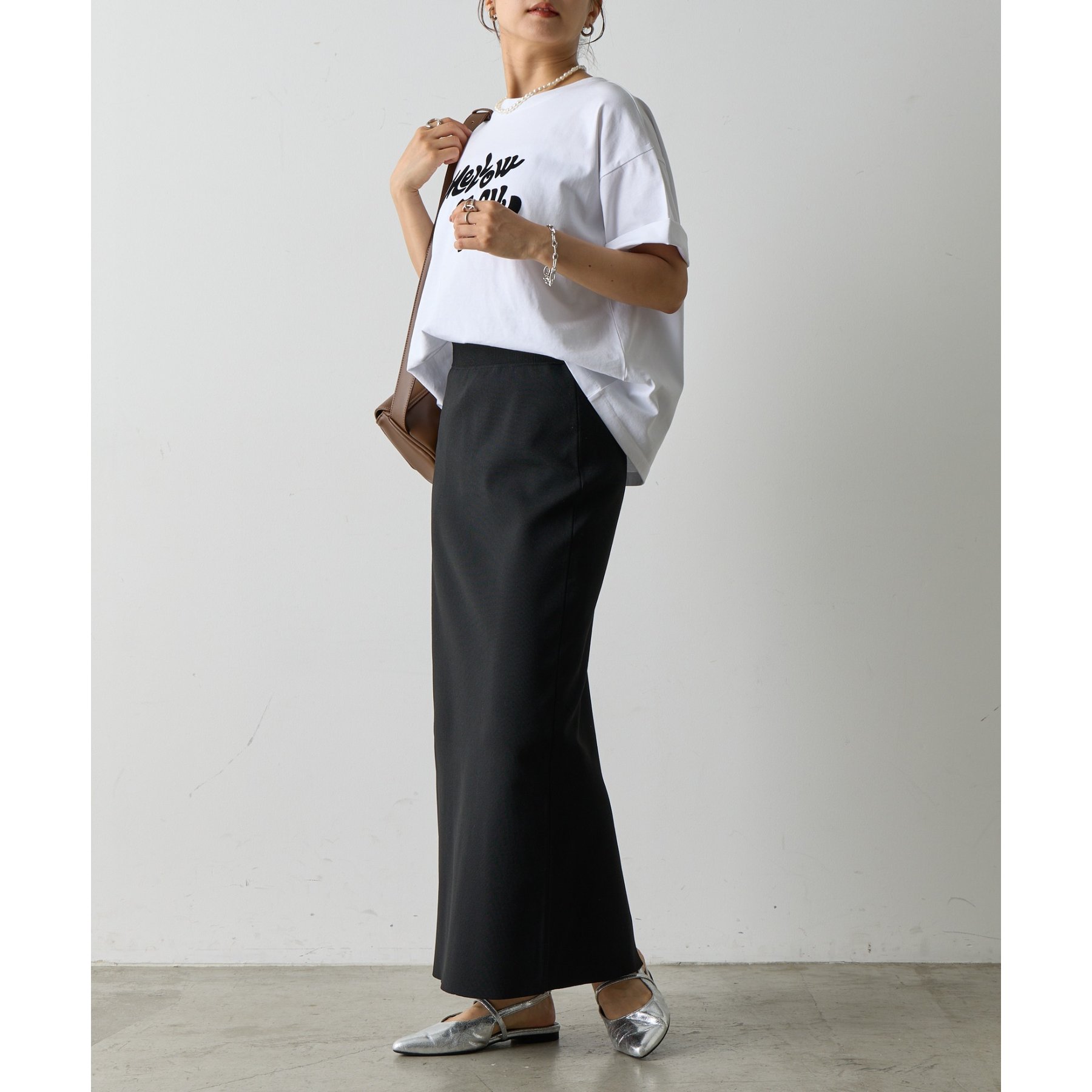 【ポリエステルの軽量素材で編まれたペンシルスカート】