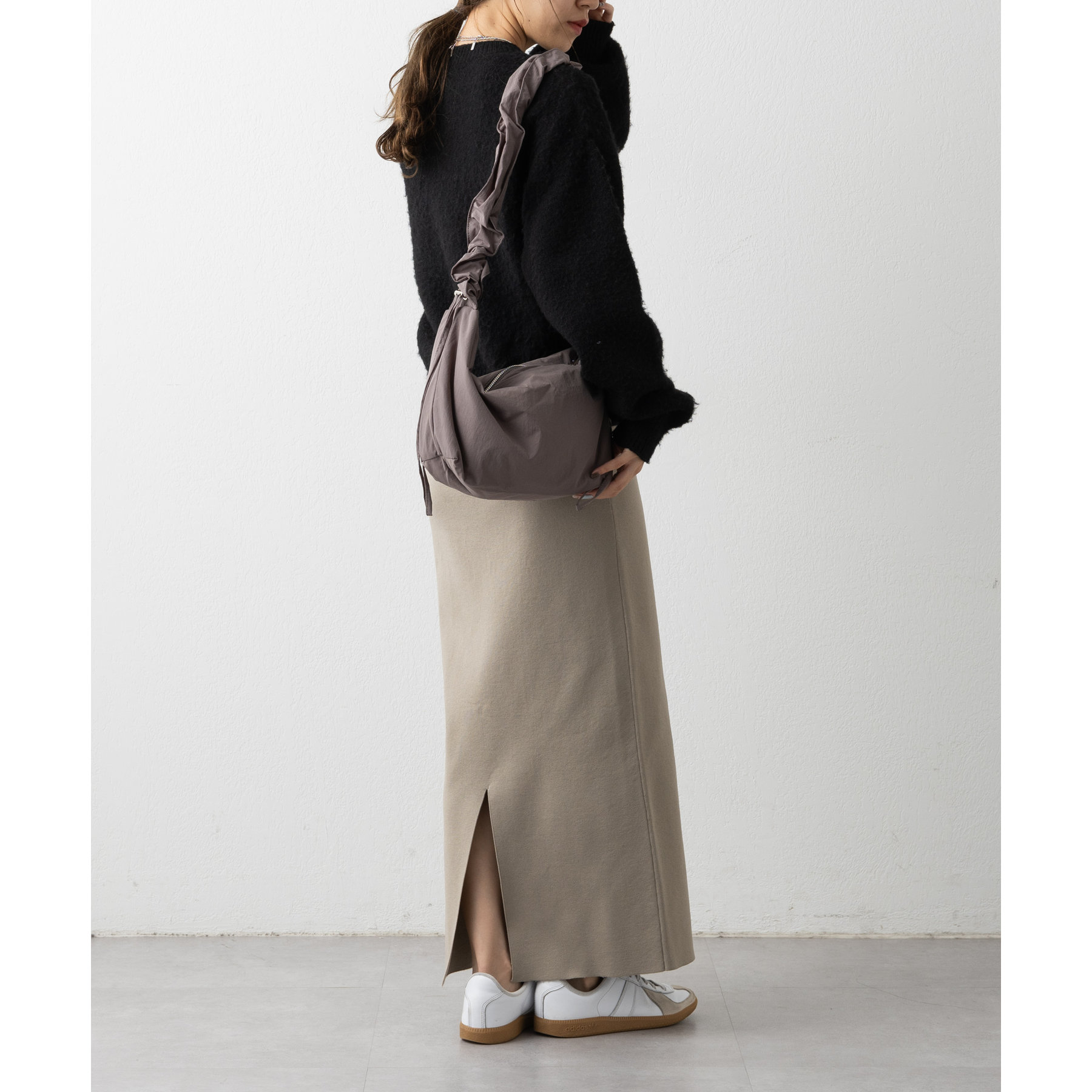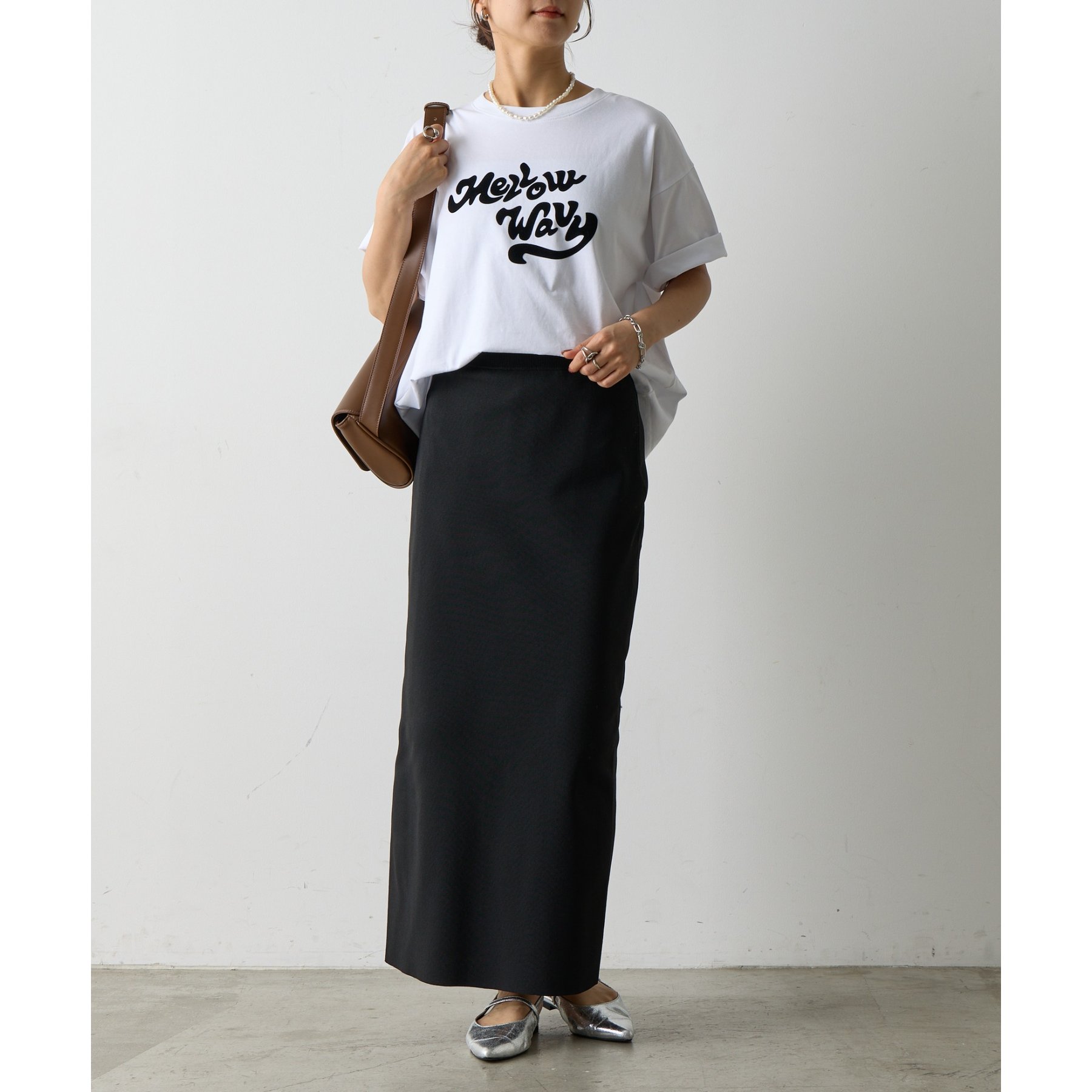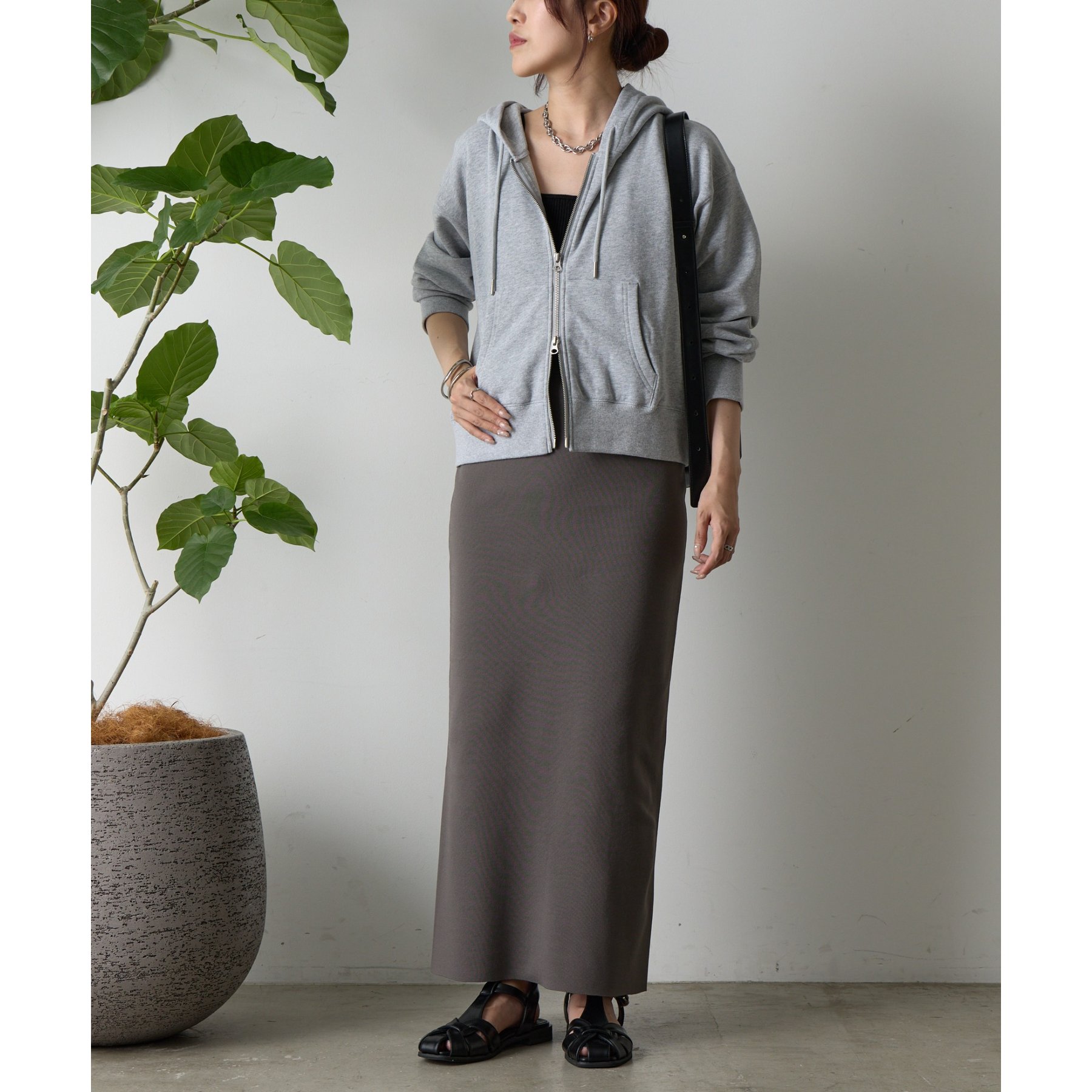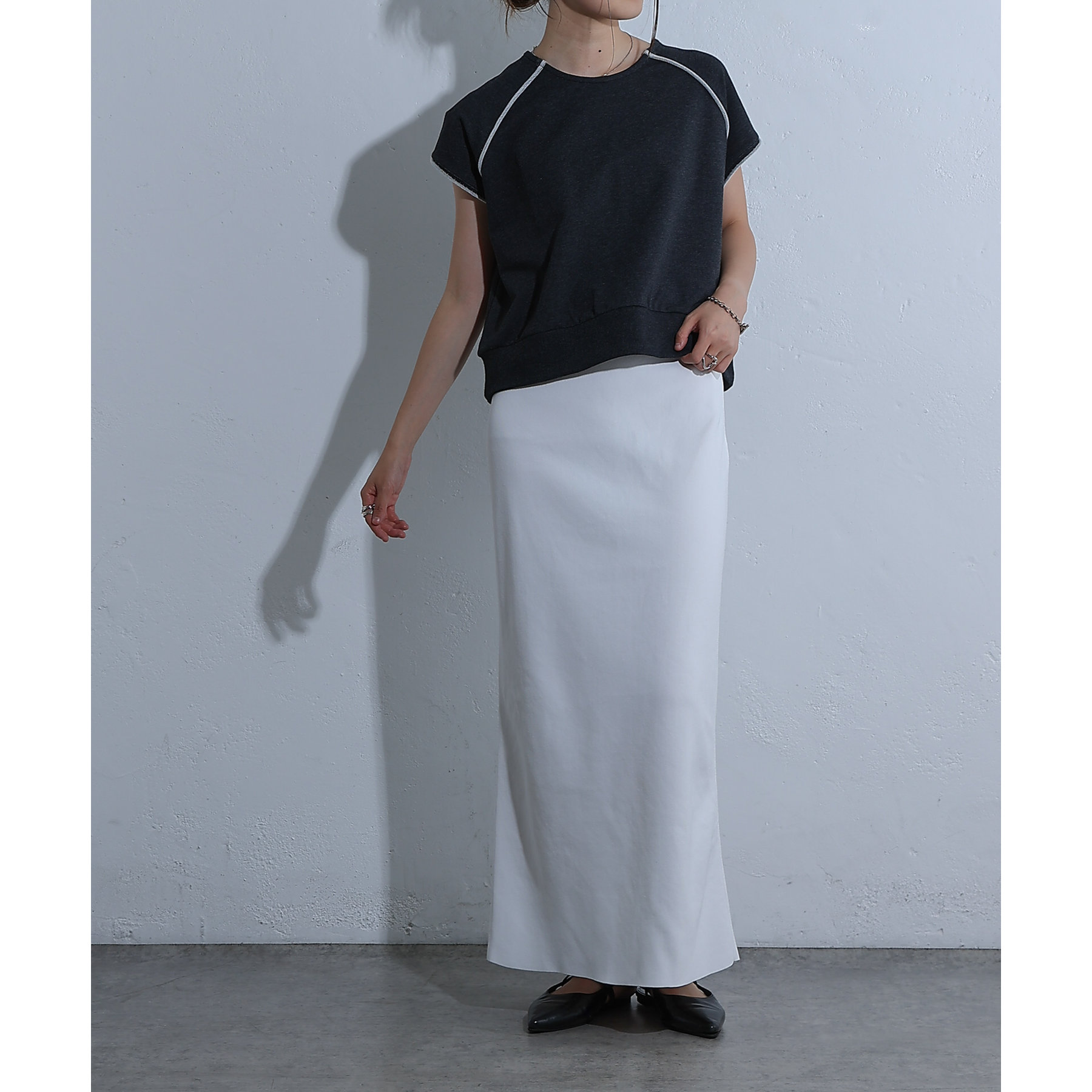 【ポリエステルの軽量素材で編まれたペンシルスカート】