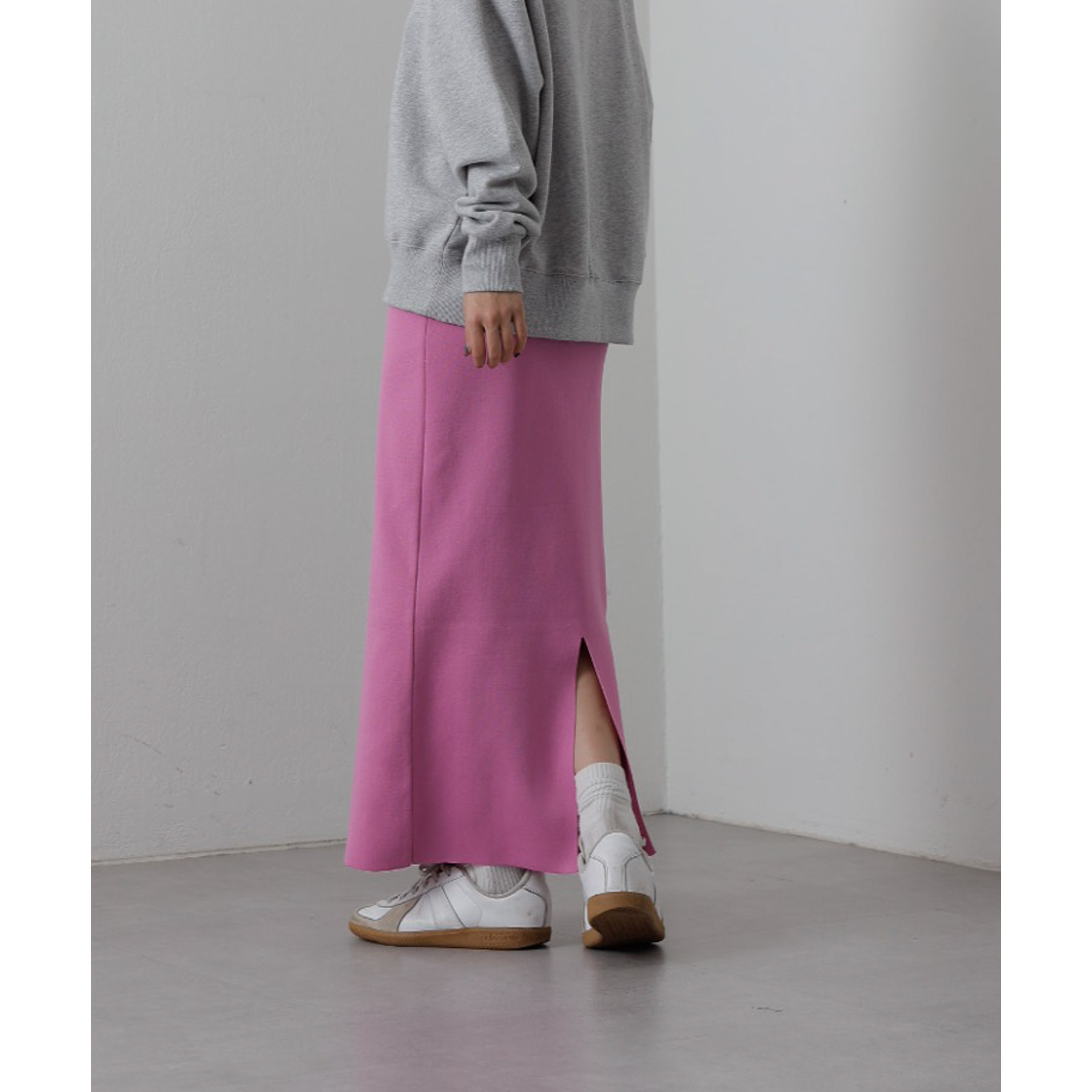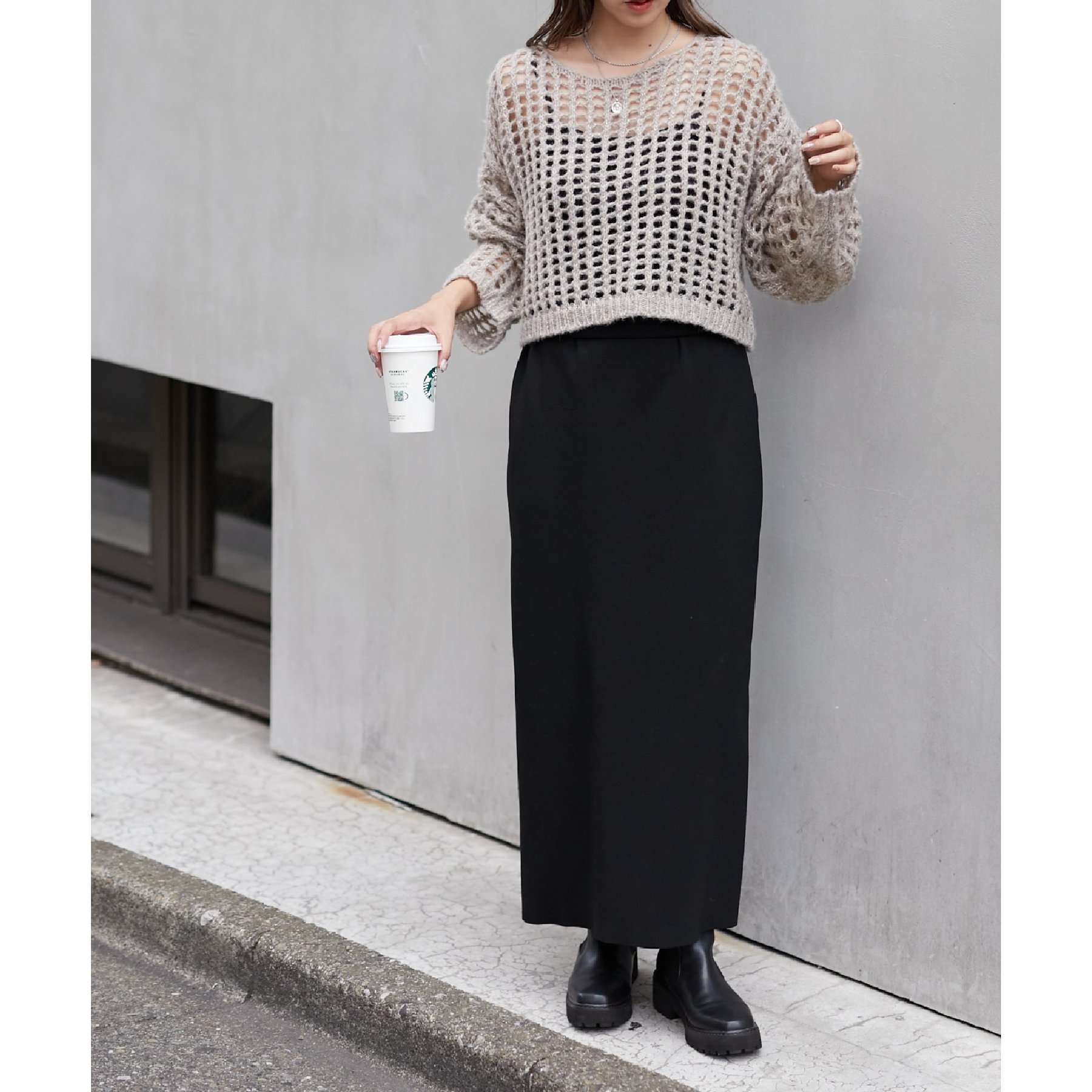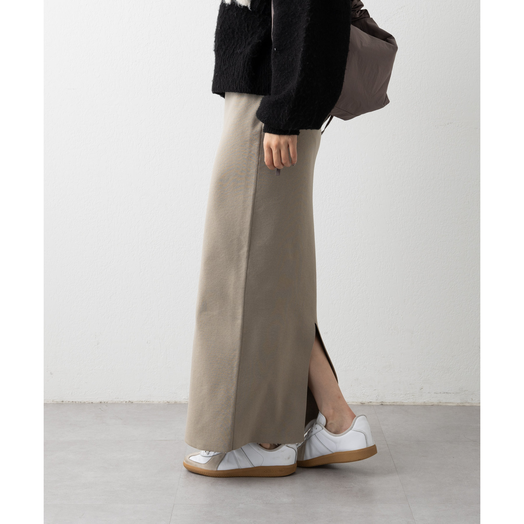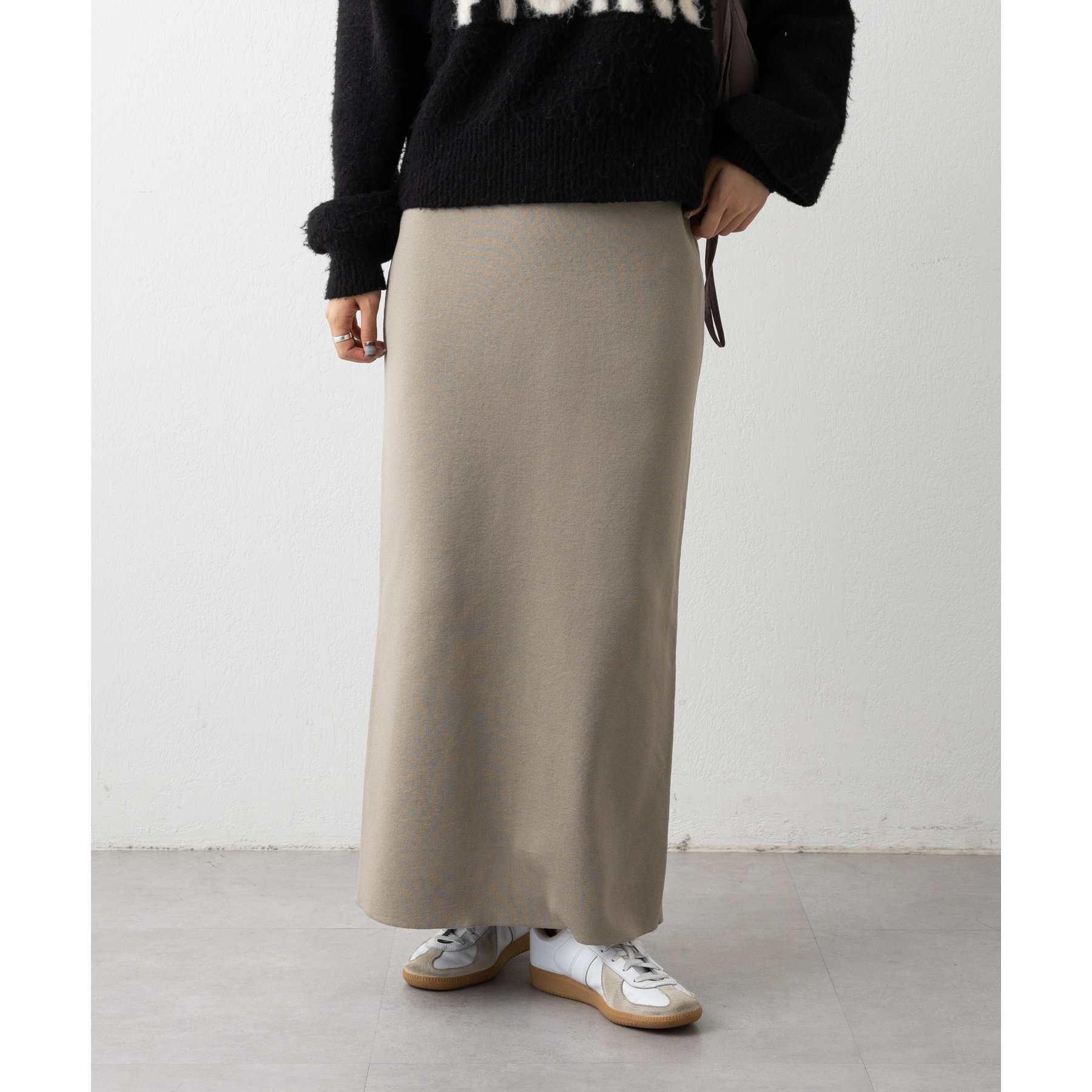 シーズンムードを高めてくれるニット素材のペンシルスカート。