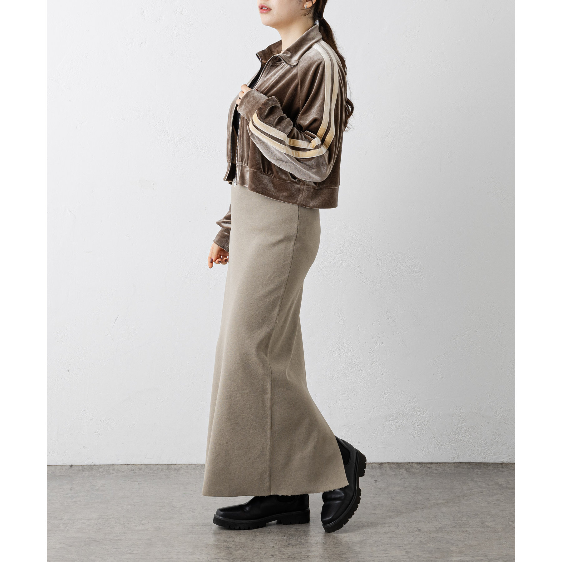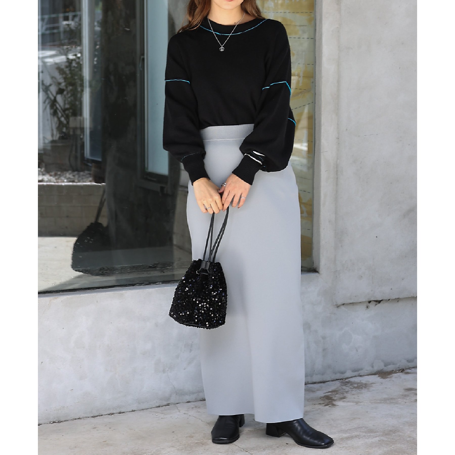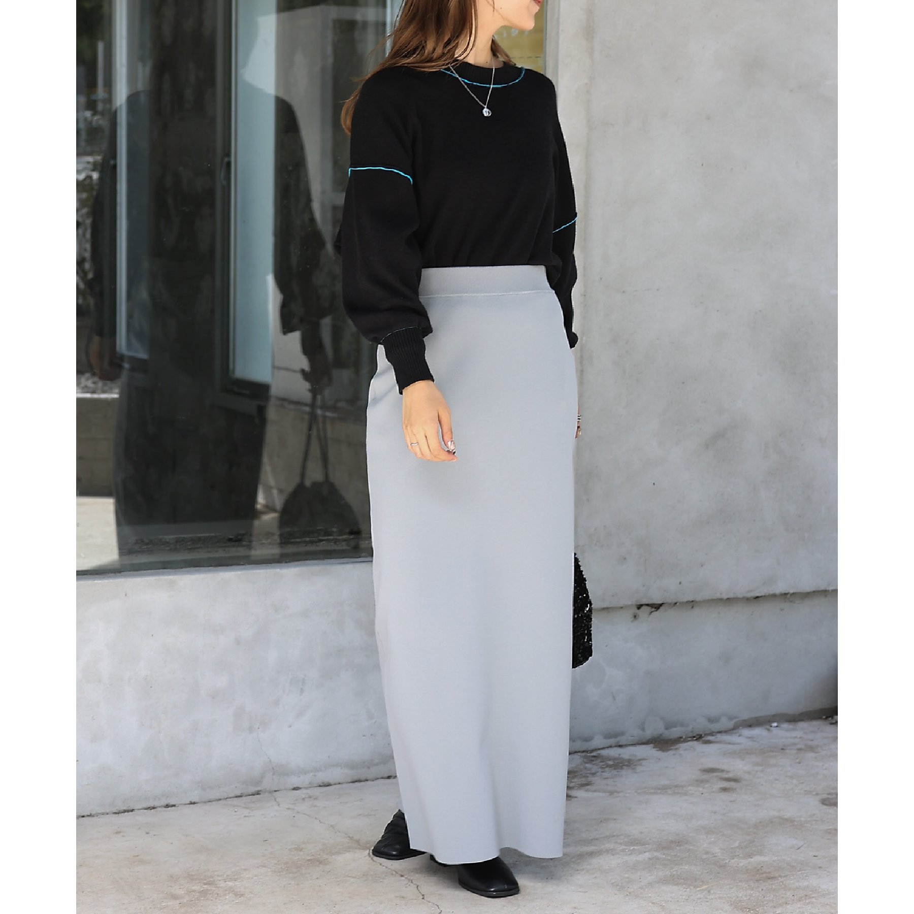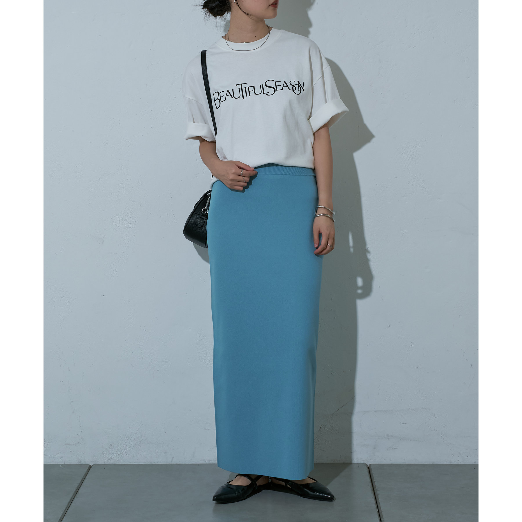シーズンムードを高めてくれるニット素材のペンシルスカート。