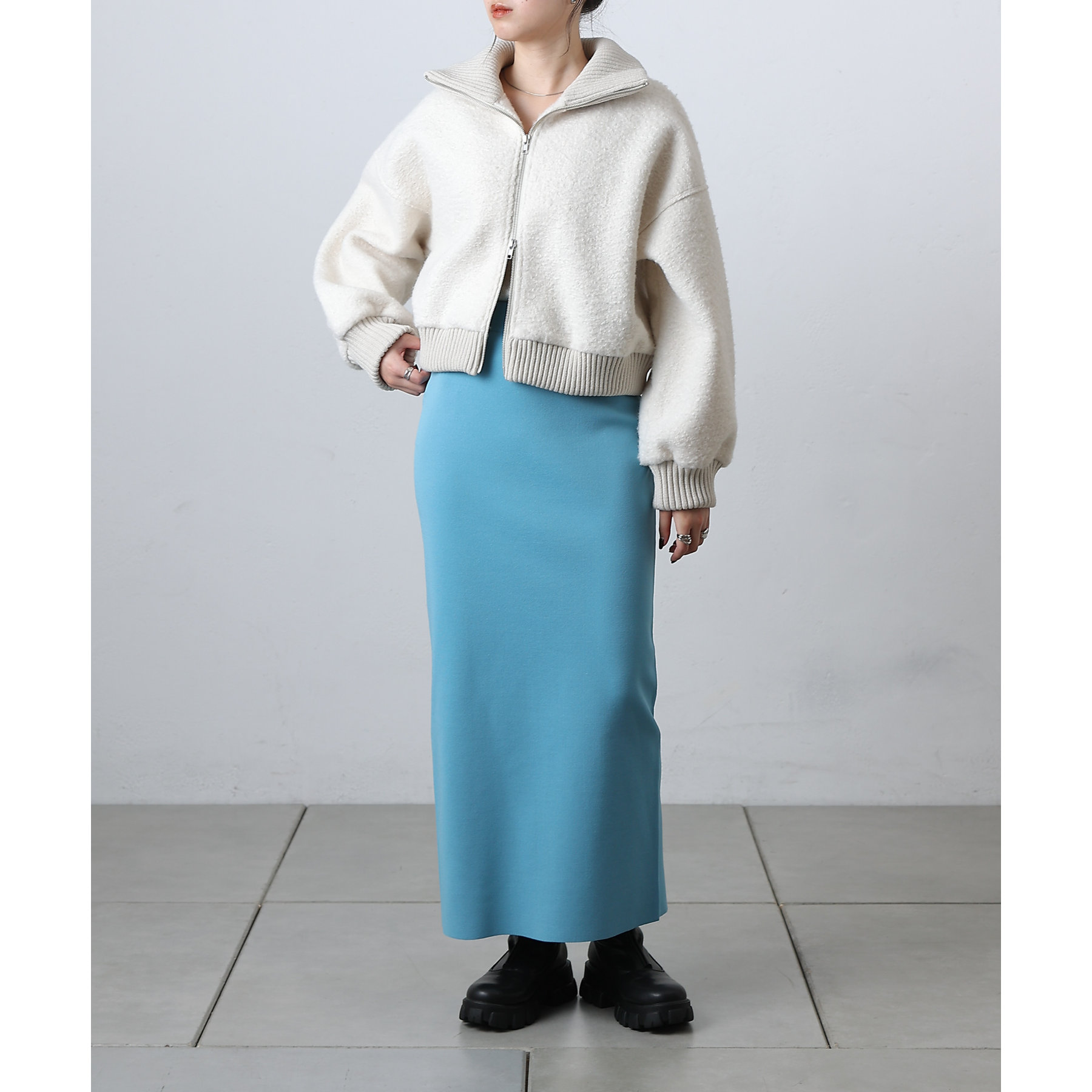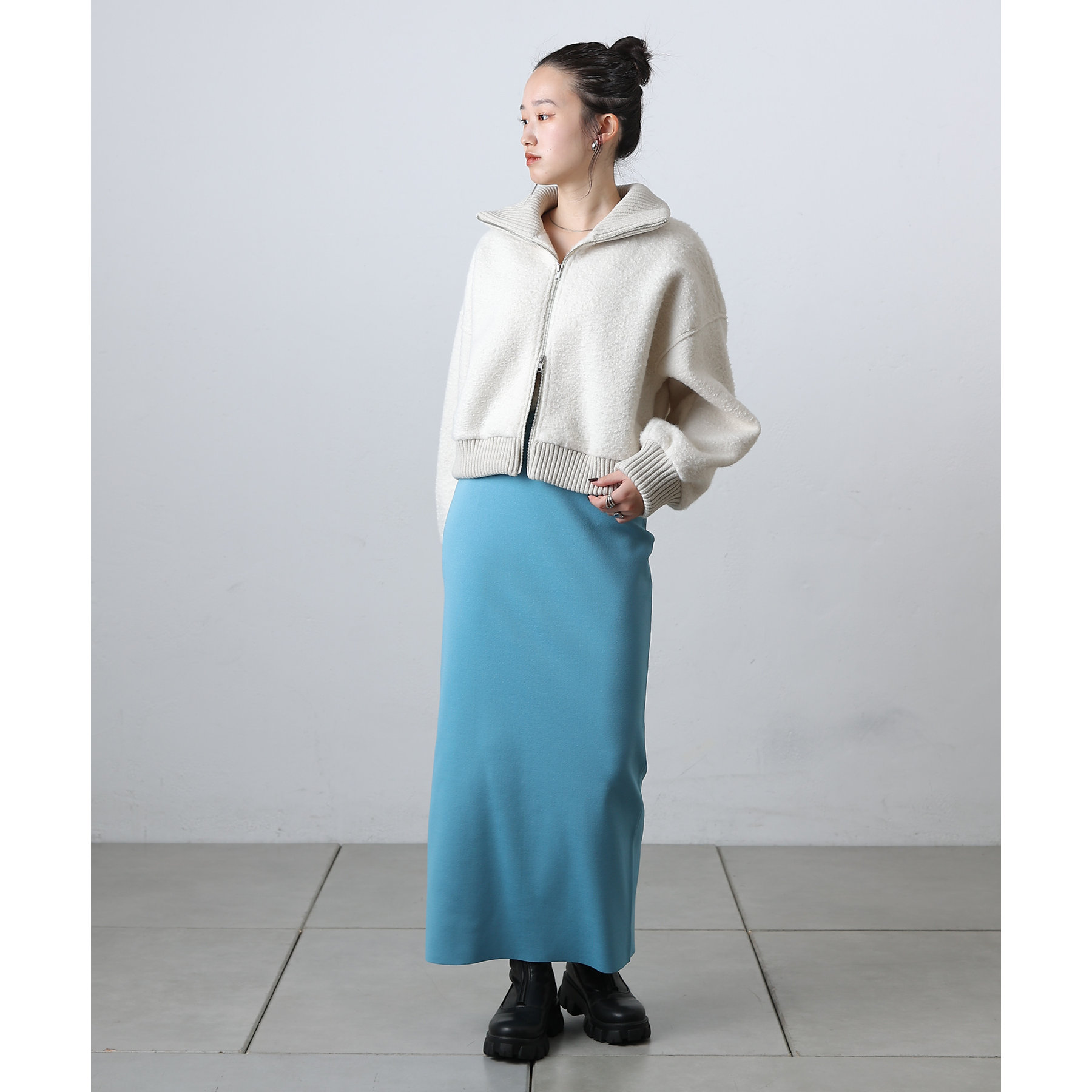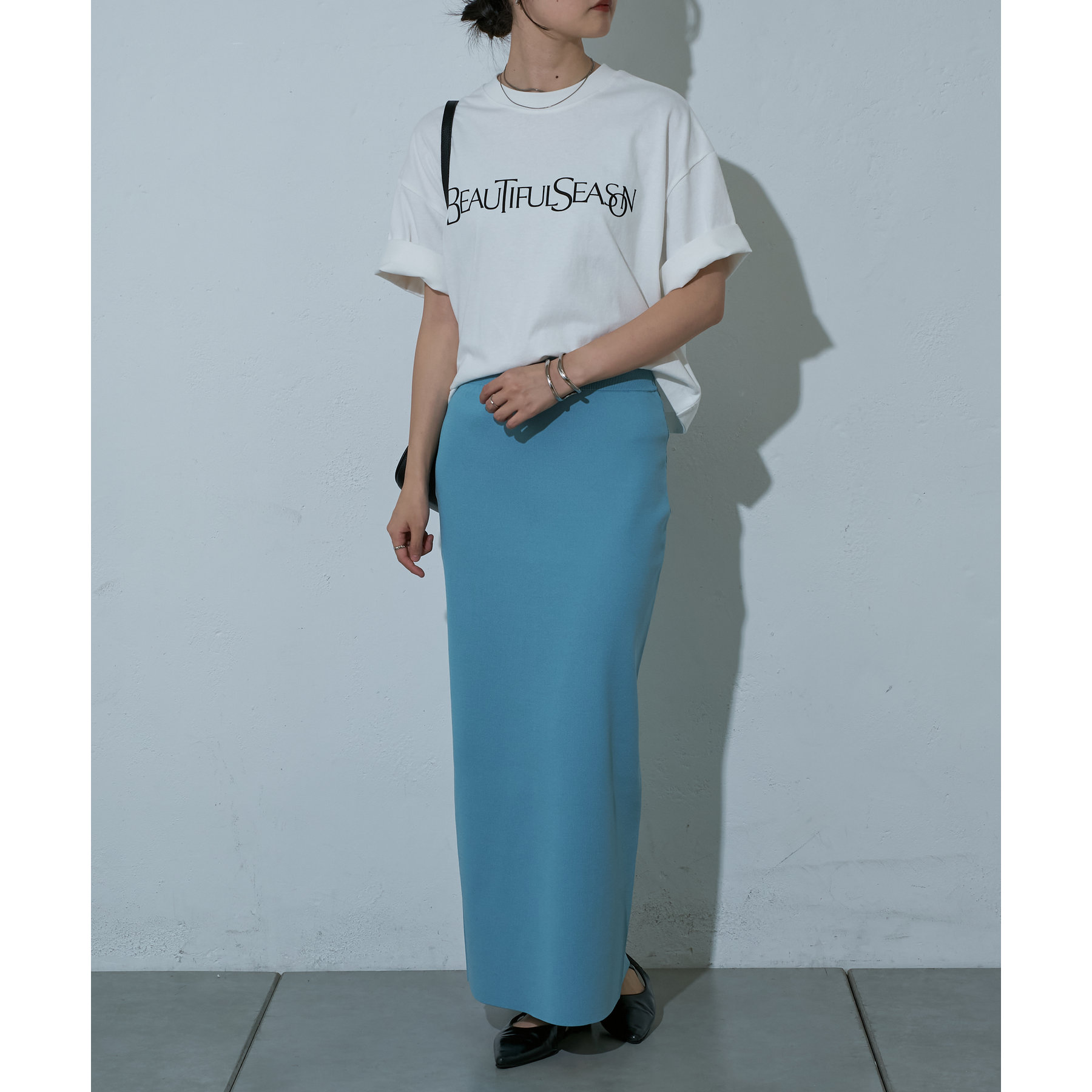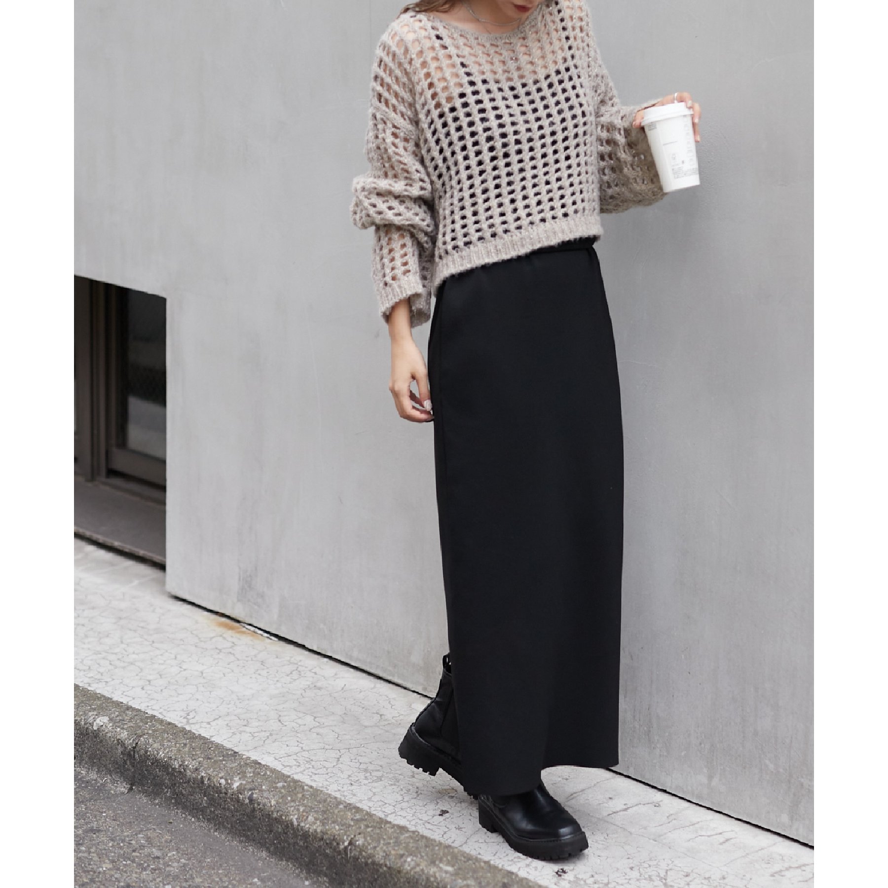 シーズンムードを高めてくれるニット素材のペンシルスカート。
