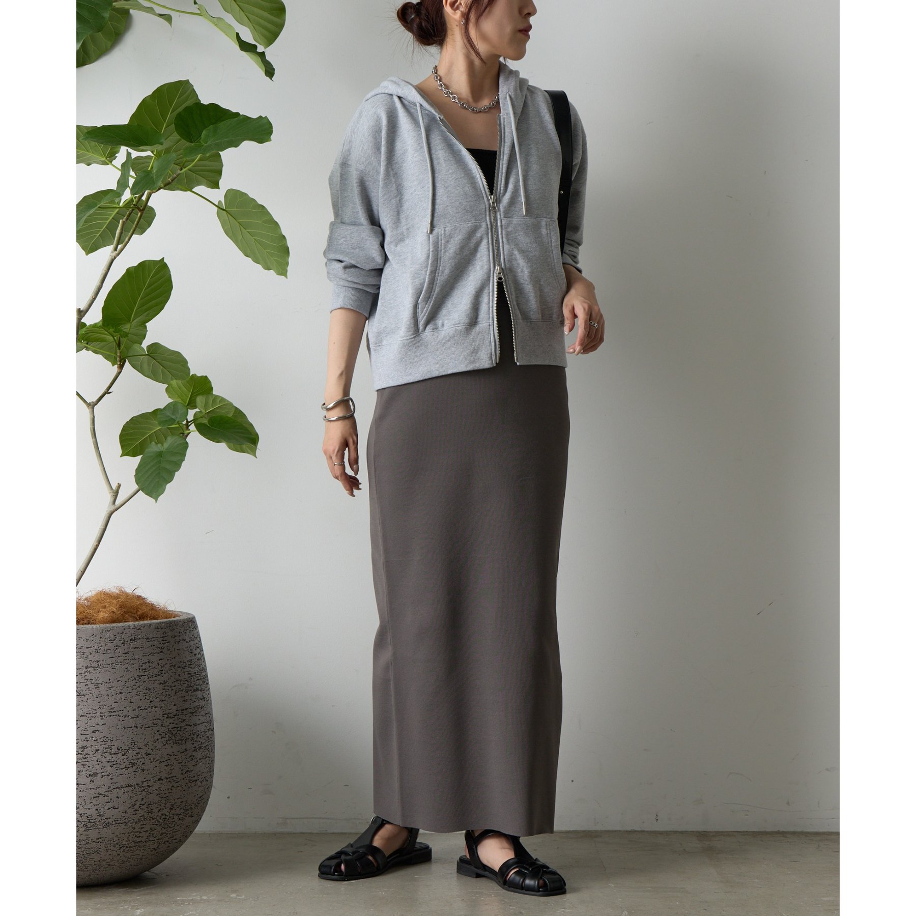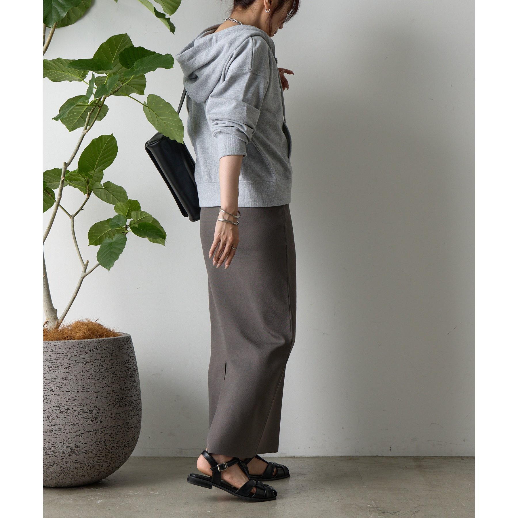 ・伸縮性の高いニットとバックスリットで足さばきも快適