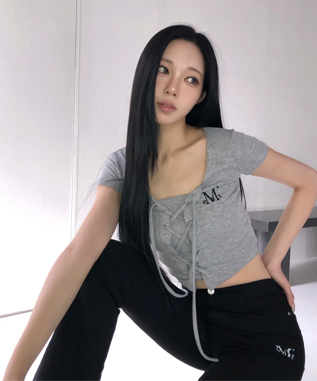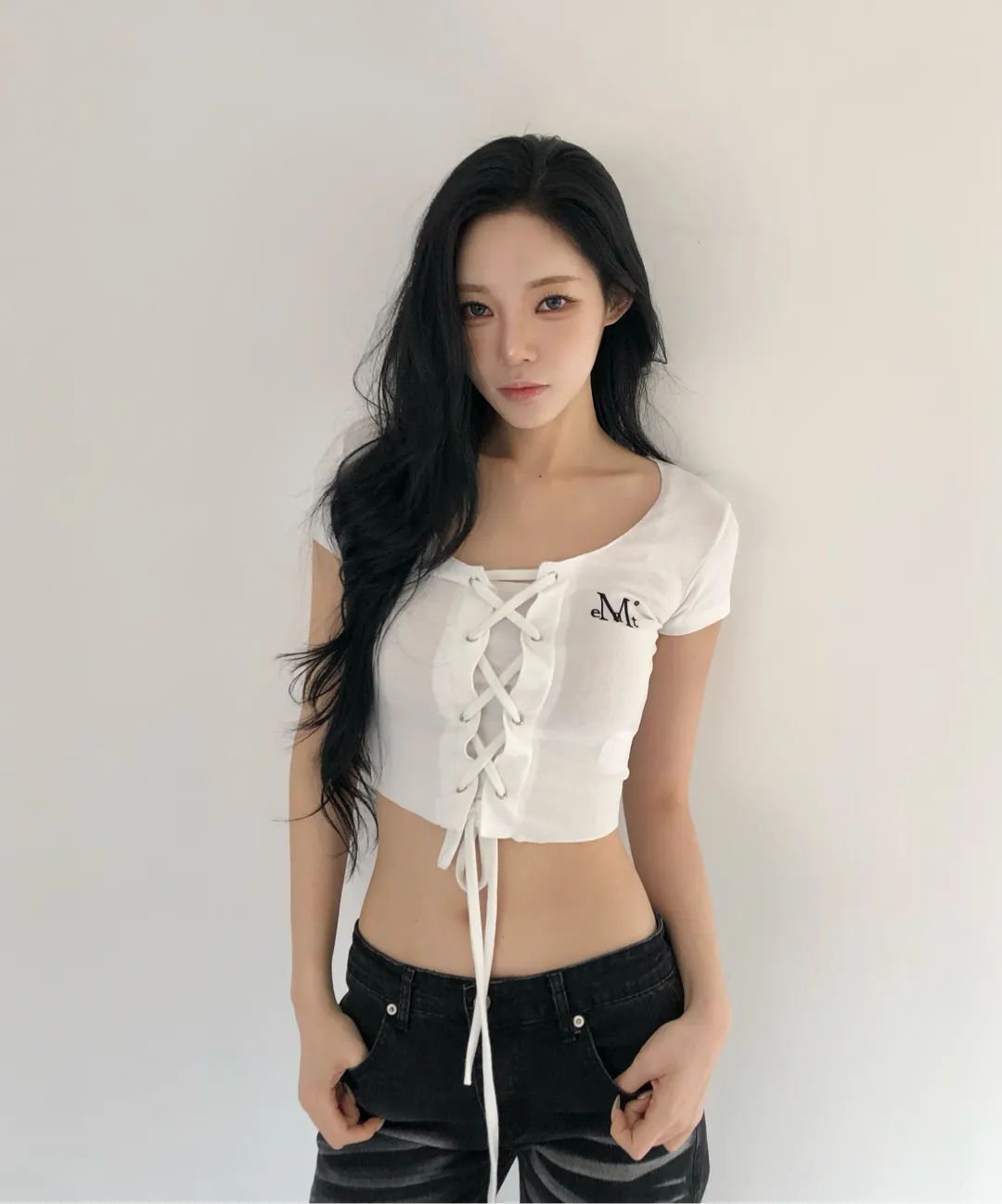 LUKE EYELET LACE-UP CORSET HALF T (2COLOR)