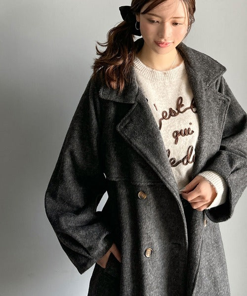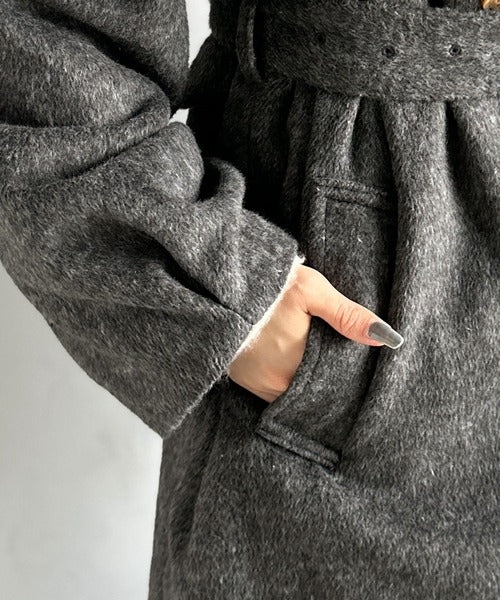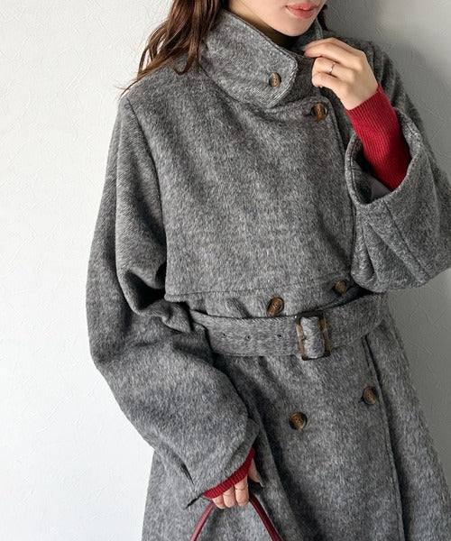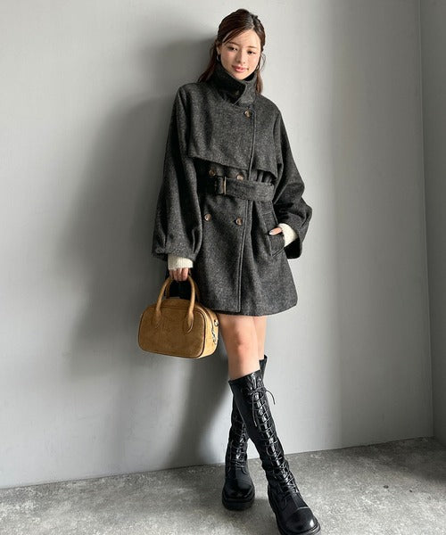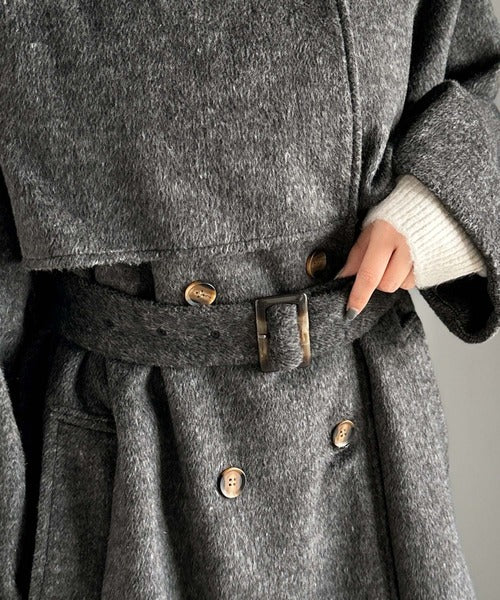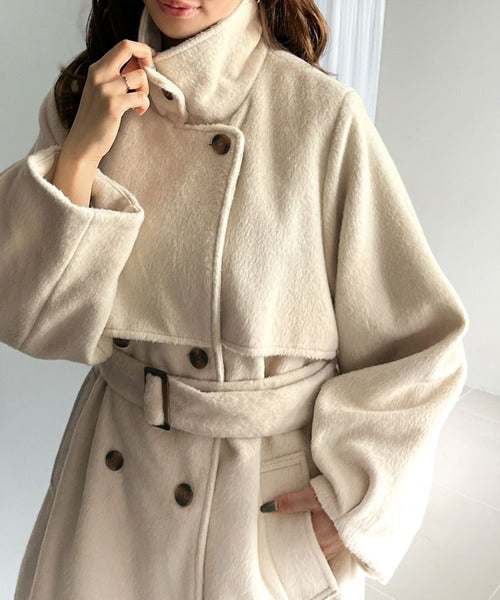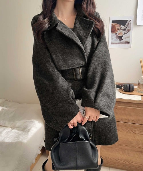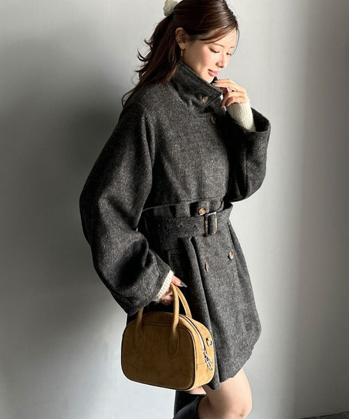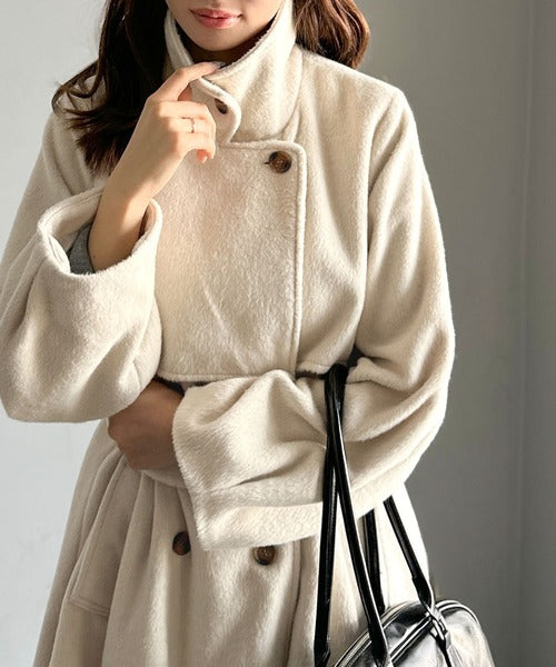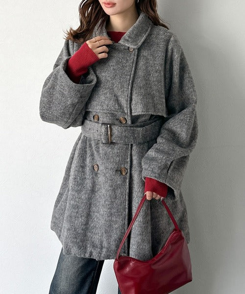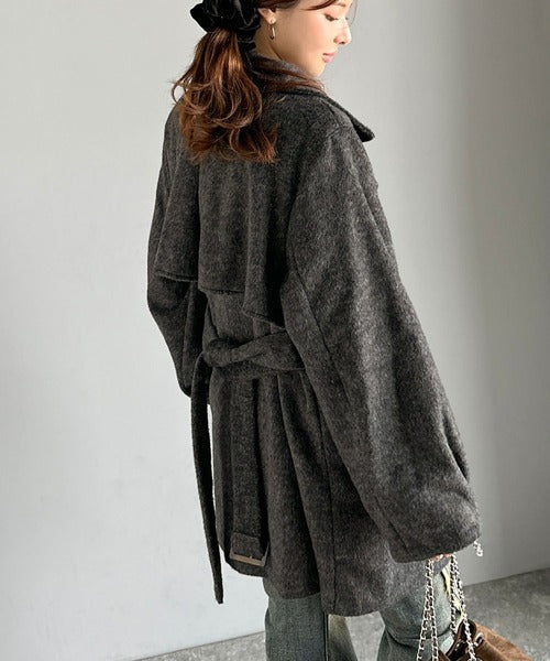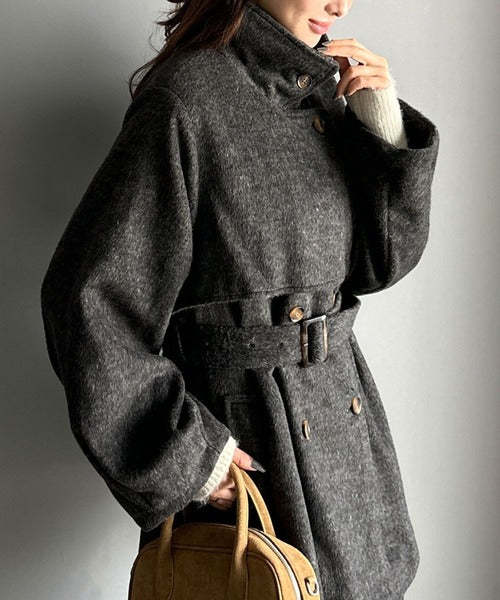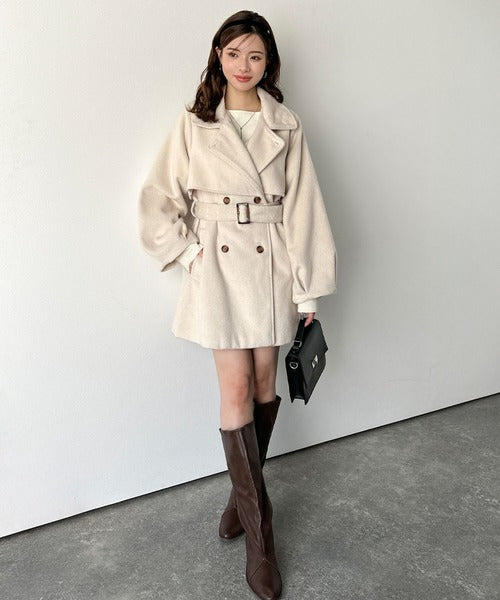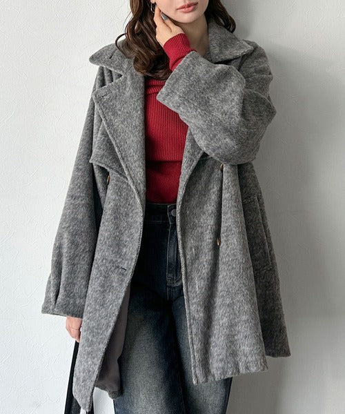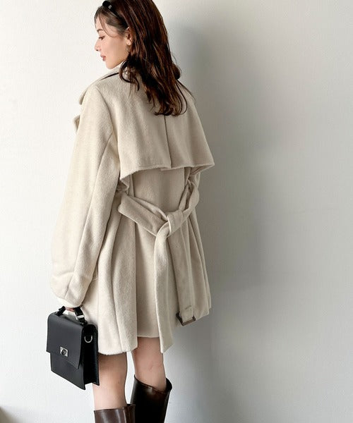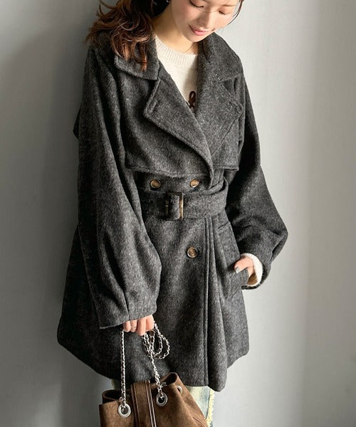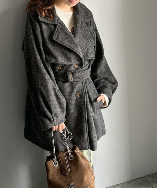 【mily bilet】どの角度から見てもかわいく冬のスタイルを格上げ。フェザーショートシャギーバックル使いコート(ミドル丈) mi1019096