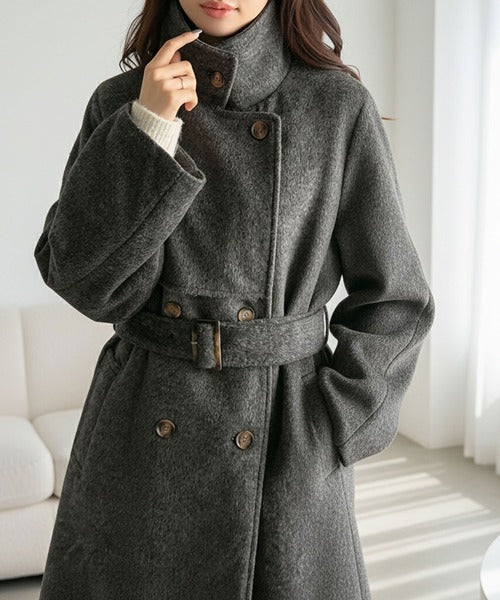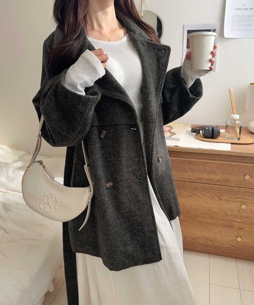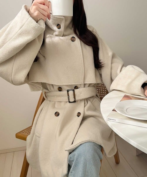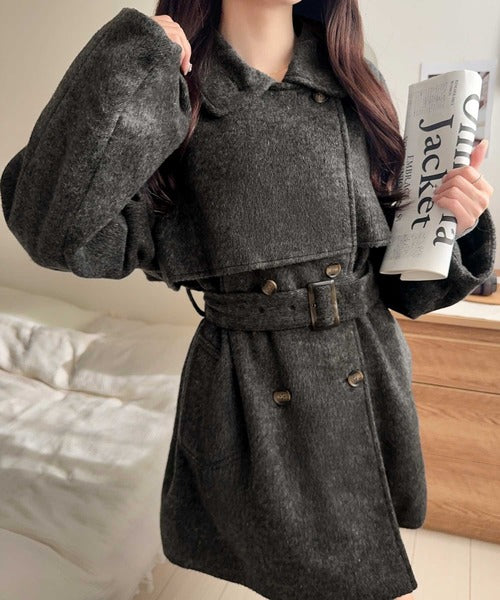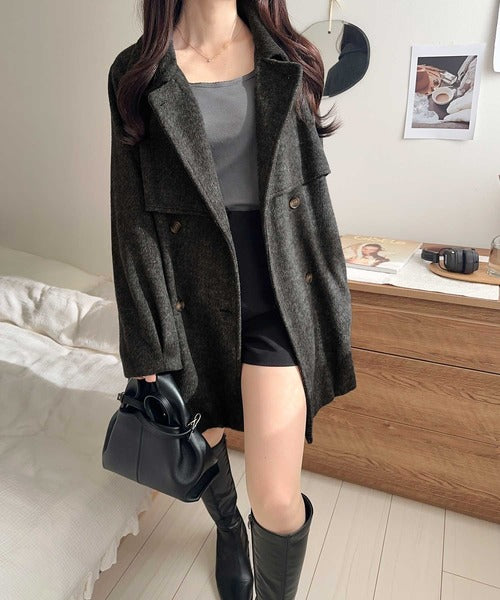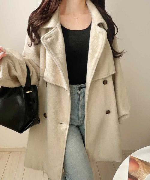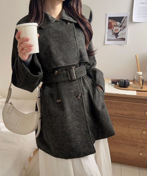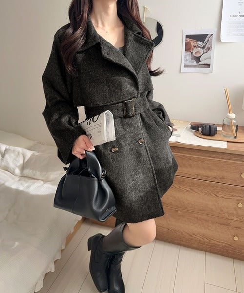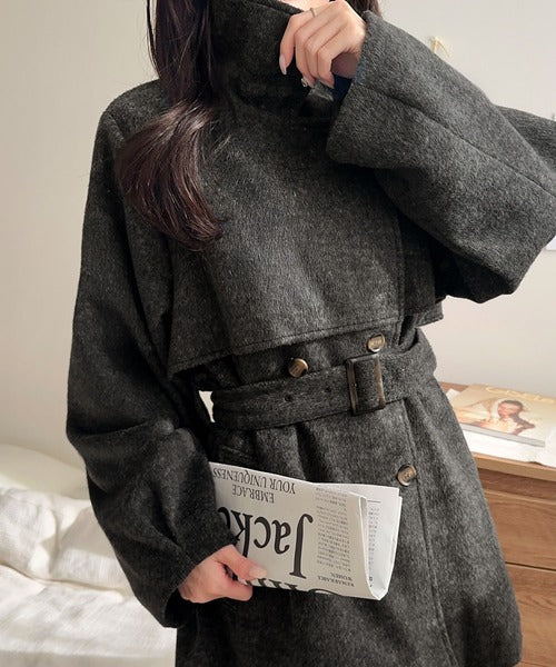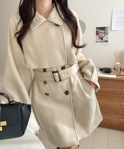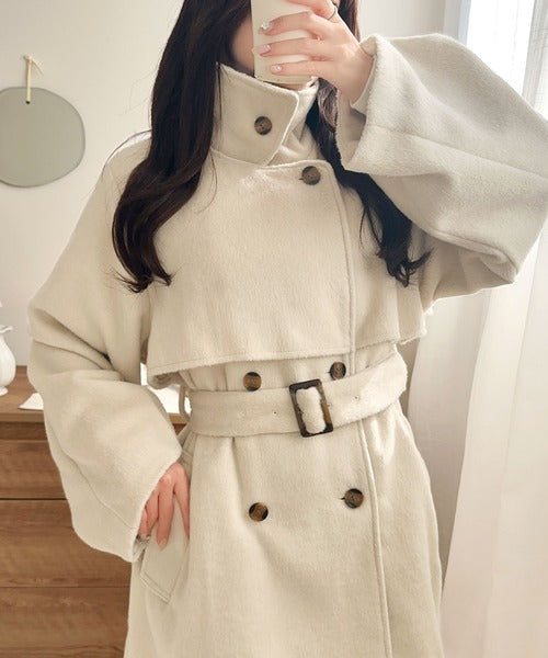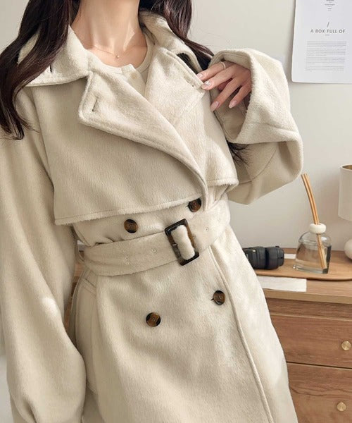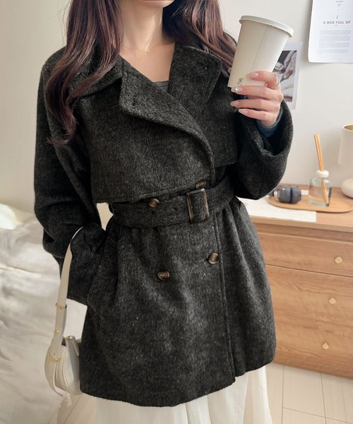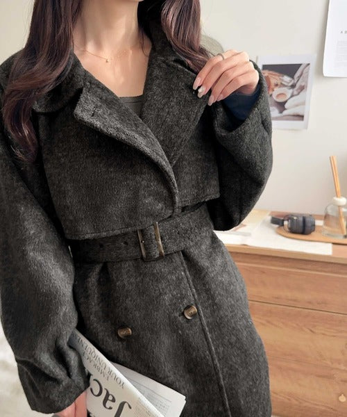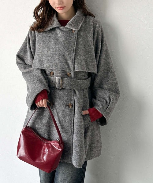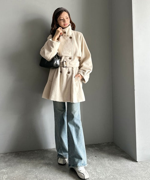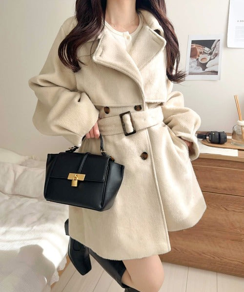 【mily bilet】どの角度から見てもかわいく冬のスタイルを格上げ。フェザーショートシャギーバックル使いコート(ミドル丈) mi1019096